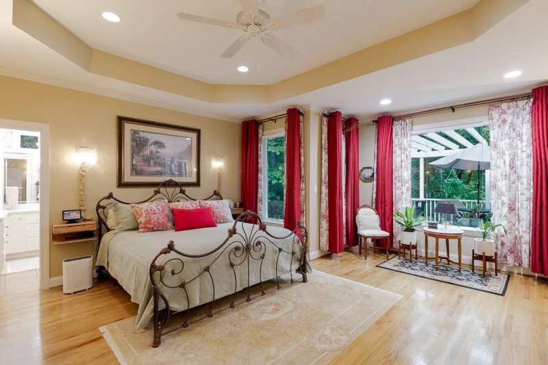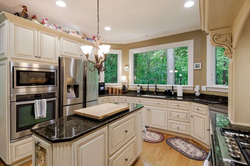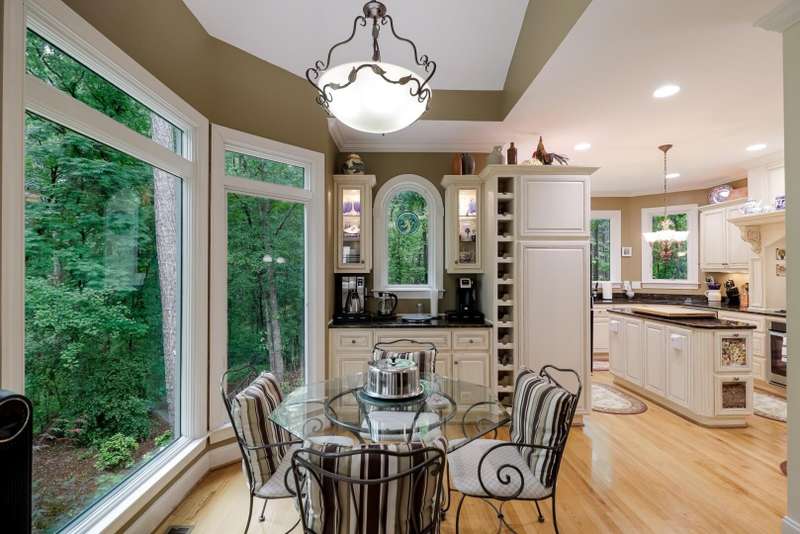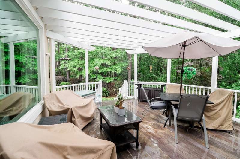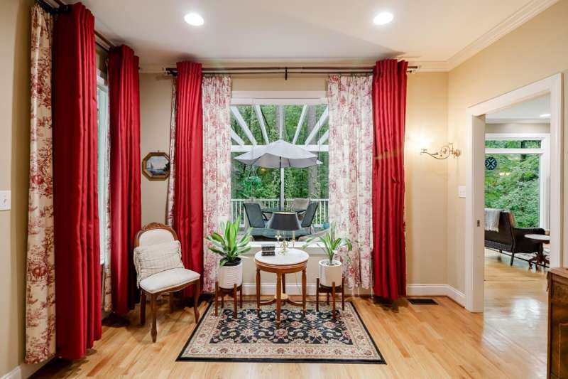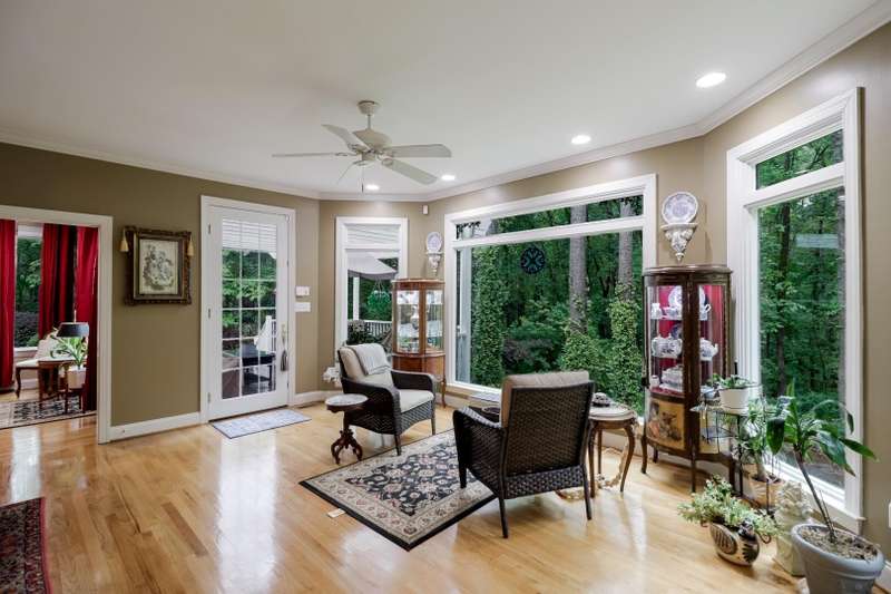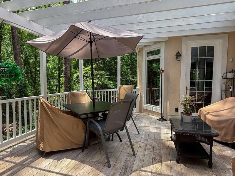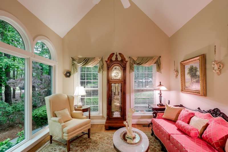 Welcome to this beautifully customized home, blending luxury, comfort. Extra green buffer and protected natural area, this property offers peace, privacy, and stunning views. Step inside to find hardwood floors and porcelain tile throughout the first floor, 2 story high greatroom, with unmatchable view of the wood and green with clear Anderson panoramic windows. The great room with gas fireplace and build in shelves. The gourmet eat kitchen with all granite tops has island, bar top, and coffee station, stainless steel Bosch and Whirlpool appliances, Bosch five-burner gas cooktop, built-in microwave, double ovens, and a spacious pantry with custom storage. The master suite is a true retreat with quartz countertops in the bathroom, leaded glass accents, and an antique crystal chandelier, tray ceilings and sitting area and fireplace. Upstairs includes 2 bedrooms with jack and jill bath with dual sinks, built-in bench and pocket office. a 4th bedroom also with private bath, storage a galore and large closets tankless water heater, water softener and filtration system, and a full-house Generac generator with a 5-year warranty. concrete storage area in the basement. Enjoy the outdoors with a Brazilian hardwood deck under awnings, a sunroom, patio, poured concrete sidewalks with step-downs, and gravel walkways. Extensive landscaping and a low-maintenance yard are supported by a well-fed irrigation system. Accent lighting with timer, a full alarm system, electric dog fence (collars included), and epoxy-coated garage floors. Other highlights include pocket doors including French glass pocket doors for the study/parlor, stone wall in the den, Anderson doors for durability and style. This is a rare opportunity to own a thoughtfully upgraded, energy-efficient home with timeless design and unmatched functionality. Schedule your private showing today!