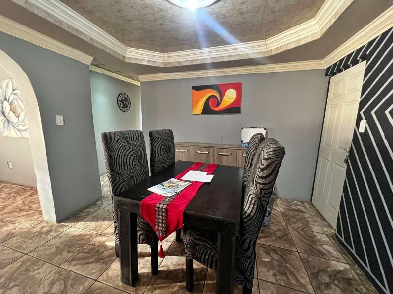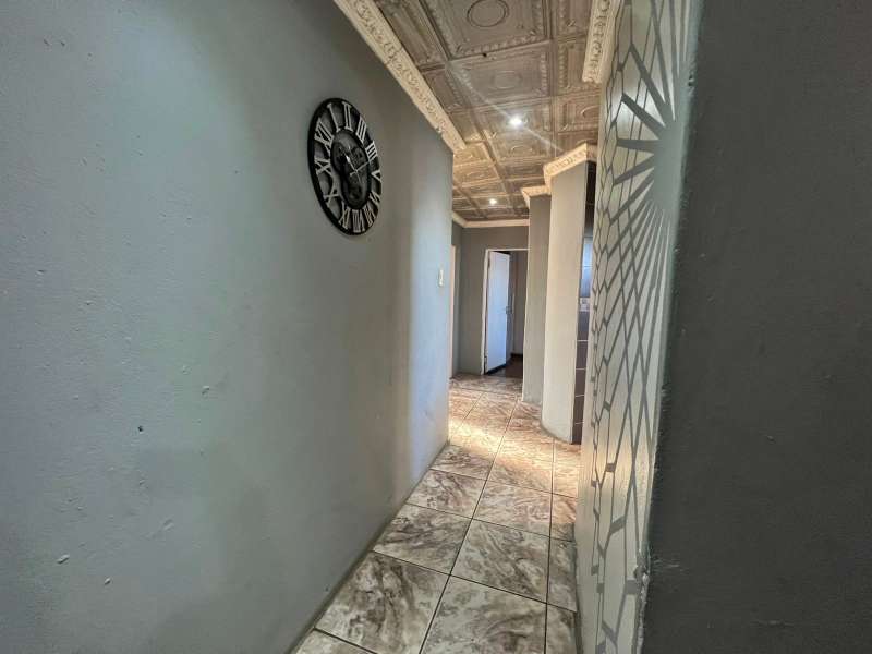 This delightful 3-bedroom house offers a blend of comfort and convenience in a sought-after township. Perfect for a young family or first-time buyers, this home features: • Main Bedroom with En-Suite: Enjoy privacy and comfort with a spacious main bedroom that includes a dedicated en-suite bathroom. • Additional Bathroom: Two other bedrooms share a well-appointed second bathroom, which also includes a convenient machine connection. • Inviting Living Spaces: A cozy lounge and a separate dining area provide ample room for relaxation and entertaining. • Single Garage: Secure parking is available with a single garage. • Secure and Private: The property is completely walled, ensuring safety and privacy. • Beautiful Garden: A well-maintained garden adds charm and a touch of nature to your home. • Prime Location: Situated right behind the MUCCP clinic, and conveniently close to schools and shopping complexes. Don’t miss out on this fantastic opportunity! Call now before someone else snaps it up!