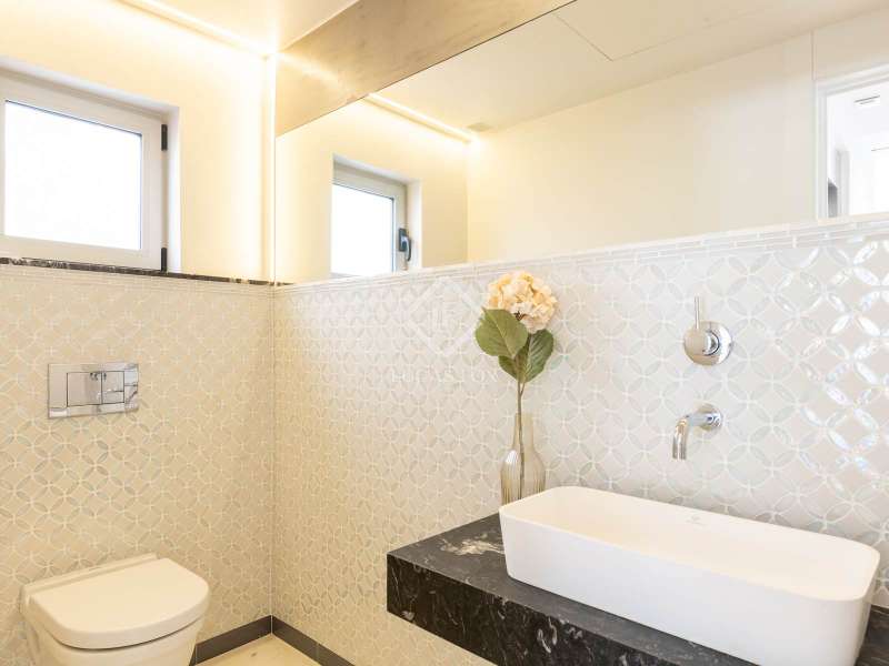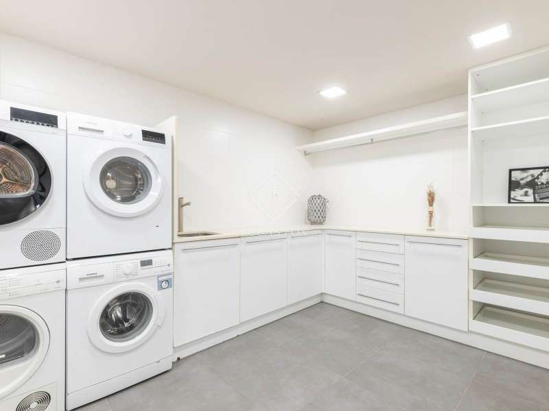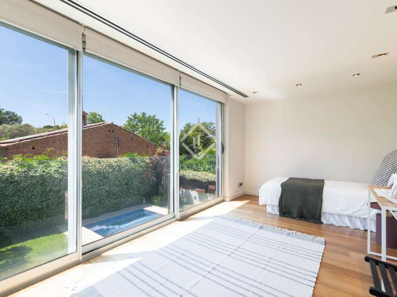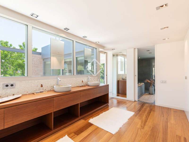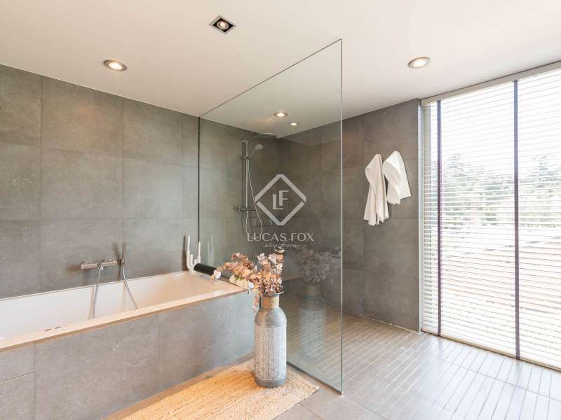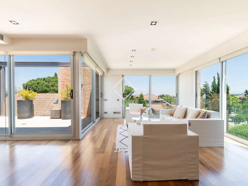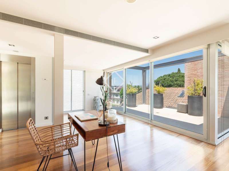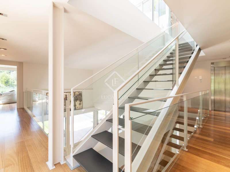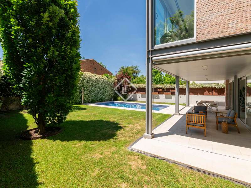 At Lucas Fox International Properties we are pleased to present an impressive 688m² villa located in one of the most exclusive areas of l'Arxiu, in Sant Cugat. Just a few minutes from the train station and the city centre , the property enjoys an unbeatable location, with all the necessary amenities such as shops, sports centres and schools within reach. Upon entering, an elegant entrance hall leads to a living-dining room of more than 50 m², which stands out for its double height ceilings, allowing an open view towards the rooms on the upper floors. The large glazing bathes the space in natural light and offers an uninterrupted view of the garden and the private pool. The large windows lead to an exterior porch, ideal for events and moments of relaxation in the chill-out area. In addition, sliding doors allow the living room to be separated to create a more intimate space, connected to the staircase that gives access to the upper levels and to the elevator that runs throughout the property. Next to the living room, we find a 48 m² designer kitchen equipped with high-end appliances , including a steam oven, Asian kitchen and a central island for breakfast. This functional and modern space has direct access to an exterior barbecue area through large windows. On the first floor, we find three double bedrooms, all with private bathroom and dressing room. One of the bedrooms has a private terrace. In addition, there is a fourth double bedroom . The rooms are arranged around a common space that opens onto the living room, allowing natural light to flood every corner of this floor. The second floor, with a total area of 139 m², is entirely dedicated to the private area. Here is the master suite, which includes a dressing room, a vanity area, a spacious bathroom and a 51 m² living room with multiple areas for rest, work or exercise. Large windows connect to two private terraces, offering panoramic views of La Mola and the surrounding gardens. In the basement there is a cinema room, a laundry room, a ensuite bedroom and several storage areas . This floor also houses the technical room and a garage with capacity for three cars. The garden, which guarantees total privacy, has a saltwater pool and well-kept vegetation. The property has undergone several renovations between 2014 and 2015, including improvements to the façade and the installation of an underfloor heating system and air conditioning powered by solar panels. In the last two years, a new boiler, an osmosis water system and an electrolysis system for the pool have been added. For more information or to arrange a visit, please do not hesitate to contact us.