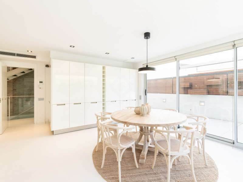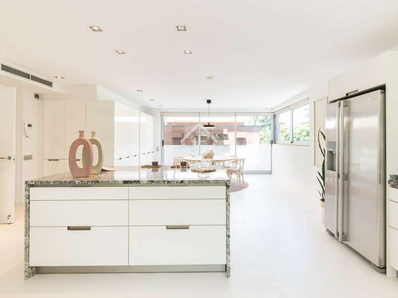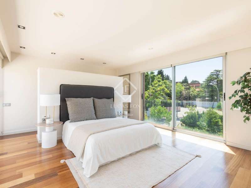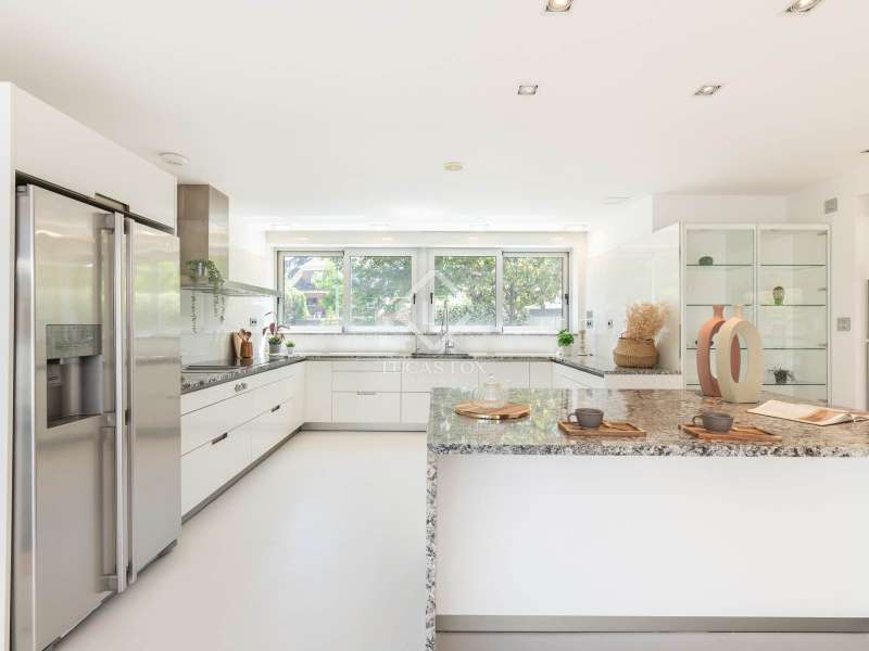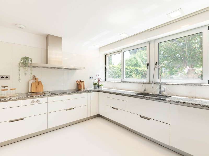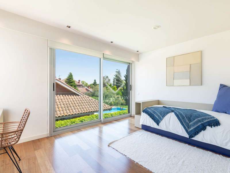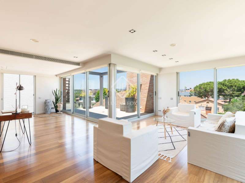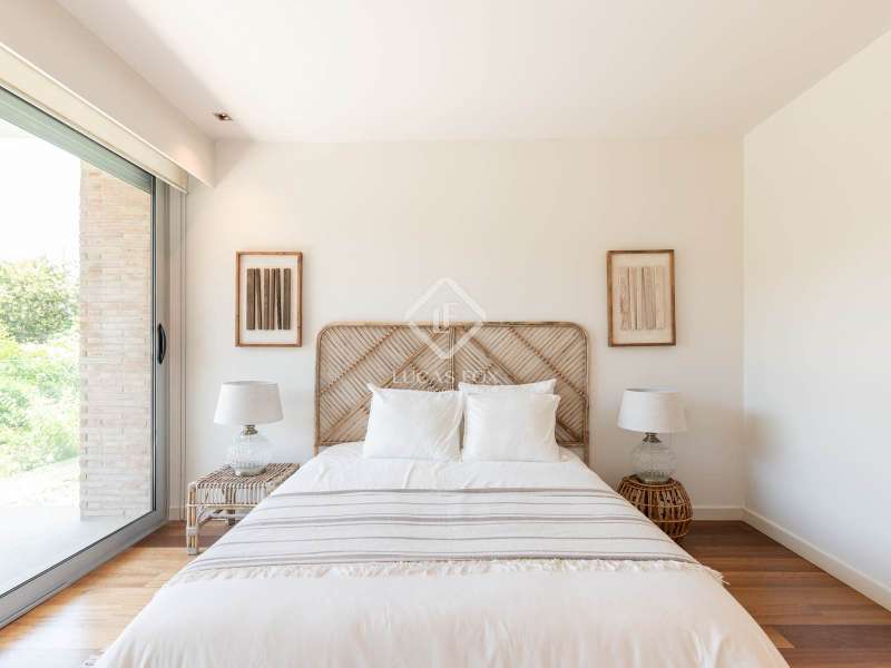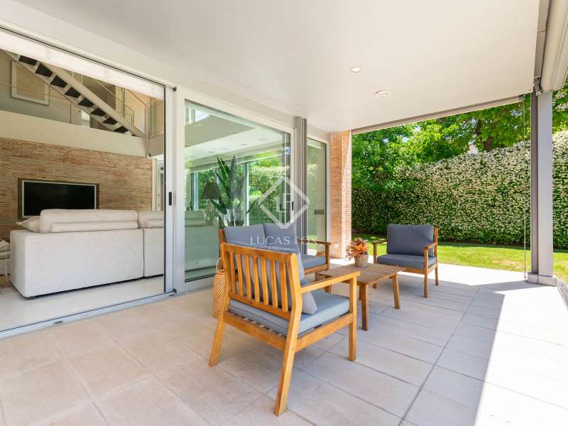 At Lucas Fox International Properties we are pleased to present an impressive 688m² villa located in one of the most exclusive areas of l'Arxiu, in Sant Cugat. Just a few minutes from the train station and the city centre , the property enjoys an unbeatable location, with all the necessary amenities such as shops, sports centres and schools within reach. Upon entering, an elegant entrance hall leads to a living-dining room of more than 50 m², which stands out for its double height ceilings, allowing an open view towards the rooms on the upper floors. The large glazing bathes the space in natural light and offers an uninterrupted view of the garden and the private pool. The large windows lead to an exterior porch, ideal for events and moments of relaxation in the chill-out area. In addition, sliding doors allow the living room to be separated to create a more intimate space, connected to the staircase that gives access to the upper levels and to the elevator that runs throughout the property. Next to the living room, we find a 48 m² designer kitchen equipped with high-end appliances , including a steam oven, Asian kitchen and a central island for breakfast. This functional and modern space has direct access to an exterior barbecue area through large windows. On the first floor, we find three double bedrooms, all with private bathroom and dressing room. One of the bedrooms has a private terrace. In addition, there is a fourth double bedroom . The rooms are arranged around a common space that opens onto the living room, allowing natural light to flood every corner of this floor. The second floor, with a total area of 139 m², is entirely dedicated to the private area. Here is the master suite, which includes a dressing room, a vanity area, a spacious bathroom and a 51 m² living room with multiple areas for rest, work or exercise. Large windows connect to two private terraces, offering panoramic views of La Mola and the surrounding gardens. In the basement there is a cinema room, a laundry room, a ensuite bedroom and several storage areas . This floor also houses the technical room and a garage with capacity for three cars. The garden, which guarantees total privacy, has a saltwater pool and well-kept vegetation. The property has undergone several renovations between 2014 and 2015, including improvements to the façade and the installation of an underfloor heating system and air conditioning powered by solar panels. In the last two years, a new boiler, an osmosis water system and an electrolysis system for the pool have been added. For more information or to arrange a visit, please do not hesitate to contact us.