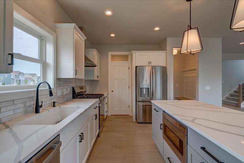 Amazing Value!! 2-story by Trademark Homes in Kettle Creek North! This 4BR, 3.5BA home sits catty-corner from the park with backyard views that will remain open once neighboring homes are complete. Main level offers a sun-filled office, open great room with gas fireplace and transom window, plus a kitchen with quartz counters, island, GE stainless appliances & walk-in pantry. Dining nook leads to composite deck. Upstairs features a loft, laundry with folding counter & primary suite with walk-in shower, double vanity & large closet. Walkout LL includes rec room, 4th BR, full bath & storage. Landscaped exterior plus smart garage, thermostat & zoned heating!