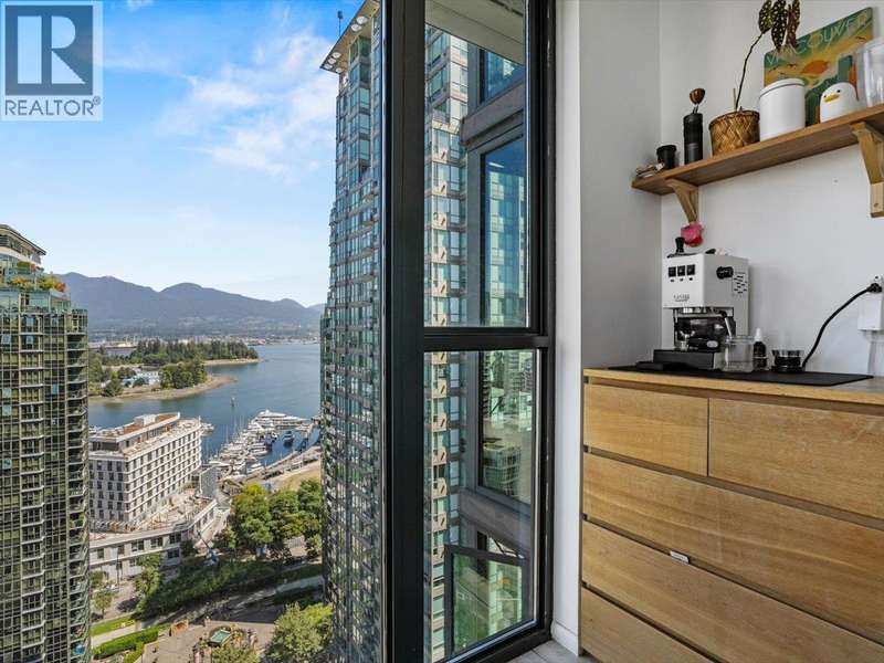 Welcome to The Pointe in the heart of Coal Harbour! This bright & efficient 1-bedr + solarium home offers stunning city, mountain, &partial water views from the 23rd floor. With 610 sqft of well-laid-out living space, the home features floor-to-ceiling windows, an open-concept kitchen, & a versatile solarium perfect for a home office or reading nook. Enjoy the convenience of in-suite laundry, 1 secure parking stall, & access to fantastic building amenities including a 24-hour concierge, gym, meeting room, & business centre. Located just steps from the Seawall, Stanley Park, Robson Street shopping, and world-class dining, this is downtown Vancouver living at its finest - whether you're a first-time buyer or an investor. (id:58403)