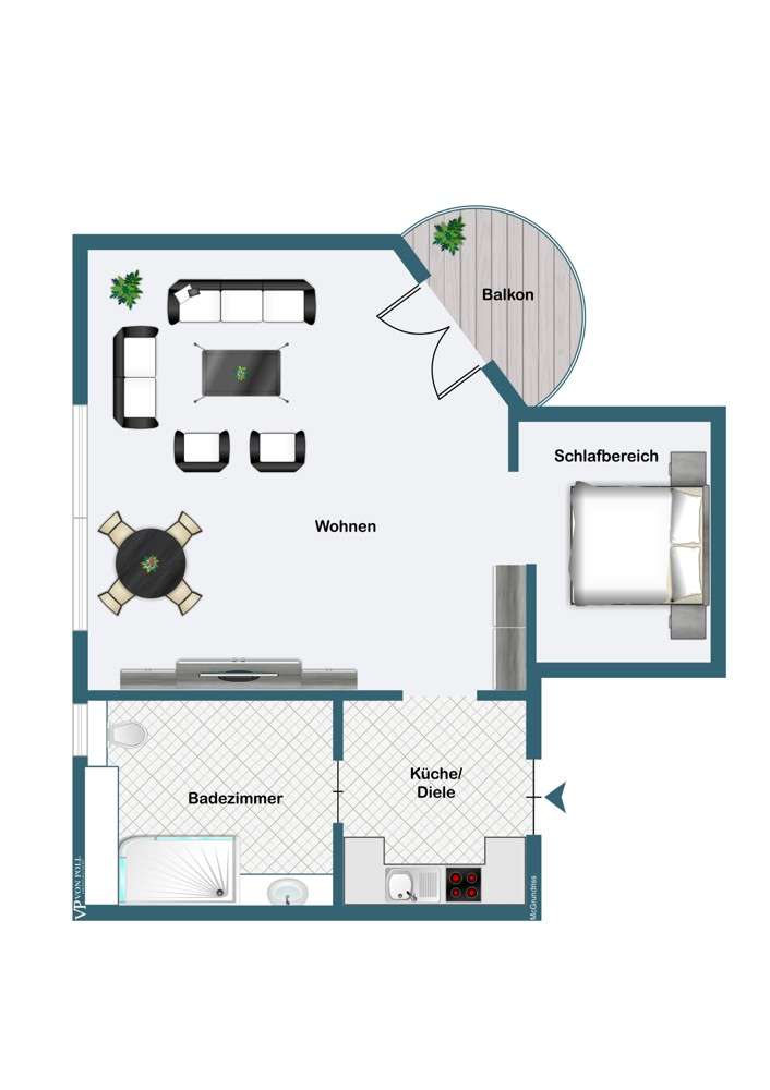 This tasteful condominium has 1.5 rooms with about 28 sqm of living space, has an optimal floor plan and enchants every real estate lover. A highlight of this unique dream apartment is a large open balcony with a beautiful view. Via the well-kept staircase you reach the apartment and first into the inviting hallway area for a small wardrobe and with another space for the new own individually equipped fitted kitchen. From here you enter the other rooms of the condominium. The living area offers enough space for a large living landscape and a small dining area, where you can receive your guests and spend relaxing evenings. The floors are covered with a high-quality vinyl parquet and through the numerous window fronts, the premises are always flooded with light. Through the living room you can also reach the spacious balcony. Furthermore, a practical room layout offers another open room for a separate sleeping area. The brightly tiled daylight bathroom has a pleasant size and is equipped with tasteful fittings and decor. Furthermore, a shower with a new shower tray is available. For the washing machine and the dryer a separate place is reserved in the laundry room. A private TG parking space (12,500 euros) and its own basement compartment to the apartment round off this very good real estate offer. Do not miss this dream investment and let yourself be convinced during a personal tour!
