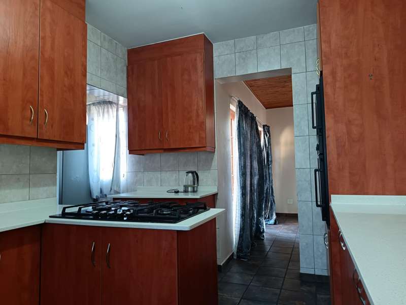 IN THE HEART OF A QUITE AREA IN CASHAN Extremely neat 4 Bedroom house to rent!! This Duplex Family home is situated in Cashan, perfectly located close to shops, fuel station, and other amenities, with easy access to all major roads. This house has a very spacious open plan tv, dining, lounge and open plan kitchen. A gas stove, which is helpful for the loadshedding days. There are four bedrooms and two full bathrooms of which the main is ensuite. The main bedroom also has a door opening up to a patio with a Scenic View overlooking to the garden and swimming pool area. The property has a beautiful spacious garden, borehole with sprinklers making it easy to have a beautiful garden. Lapa with a braai area for that Saturday entainment. There is a double garage and enough parking space for three cars The house also has a room with a bathroom for a domestic worker. Water is included with Pre Paid electricity. Available Immediately To view, please call for an appointment. PROPERTY IS ALSO IN THE MARKET FOR SALE
