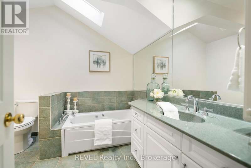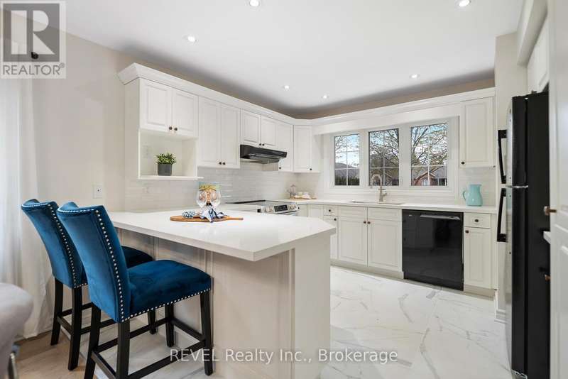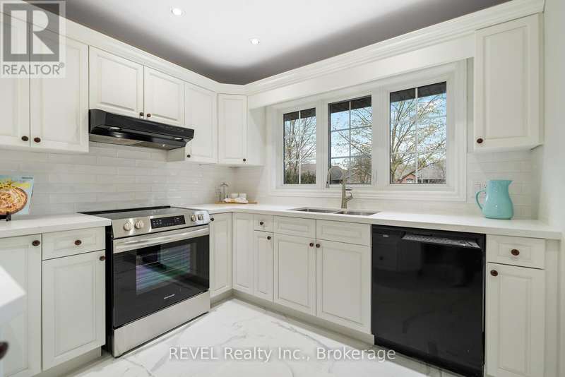 The most value on the market right now: a renovated gem in the heart of Niagara Falls with a MAIN FLOOR IN-LAW SUITE! This beautiful home offers approx 4000 sqft of living space, with 5+2 bdrms & 4 full baths. The main floor w/spacious, newly tiled foyer, gorgeous vaulted ceilings, & light-filled kitchen/Din/Liv Rm w/gas FP. Refinished hardwood, new carpet on stairs & new luxury plank vinyl flooring throughout, extra-wide staircase to the 2nd flr & perfect kitchen w/new quartz countertops, fridge, oven, dishwasher, tile flooring, backsplash, Abundant windows, open-concept living area. The MAIN FLOOR IN-LAW SUITE can be secured from the main house by a dbl-sided high-security deadbolt with a kitchen w/fridge, stove, dishwasher & breakfast bar, living rm, 3pc bath, carpeted bdrm, separate laundry closet, wide doorways, exterior accessible ramp, & access to attached garage. 2nd flr w/4 bdrms & 2 baths, including primary bdrm w/4pc ensuite including sep shower & whirlpool tub. The well-lit spacious lower level w/lrg windows & RecRm w/gas FP, full wet bar, 2 bdrms, full bath, laundry rm w/dryer & new washer, storage rm which can become an additional bedrm. Located in sought-after neighbourhood w/mature trees & landscaping, this unique home offers spacious yard perfect for children to play & room for an in-ground pool. Additional features: high-security Medeco locks, fenced yard, extra-lrg dbl car garage, interlock brick driveway, custom-built shed, & a massive entertainer's deck with a natural gas line. Recent renos include a separate water meter & Eyedro hydro meter (which allows remote electricity usage monitoring) to in-law suite, & new wiring to allow for installation of a separate electrical hot water meter. Home is zoned R1C, permitting single family occupancy & owner-occupied B&B usage. Enjoy peace & privacy of this quiet court, ideally located near schools, shopping, amenities, parks, transit, QEW - close to Lundy's Lane in the heart of the City of Niagara Falls! (id:7434)