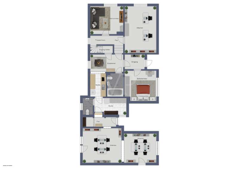 For sale is a large detached house from 1930 with a living space of approx. 150 m² on a plot of approx. 1,479 m². The property boasts a functional room layout with a total of seven rooms, including six bedrooms that can be used individually as children's rooms, living rooms and studies. The house is ideal for families or people who need a lot of space. On the first floor, in addition to the current living room, there are two bedrooms and two small kitchen areas. A special highlight of this area is the kitchen oven ("kitchen witch") installed in 2022. A bathroom with bathtub and a separate guest WC are also located on the first floor. A large living area, formerly a parlor, is currently used as a weaving room and can be used flexibly as a hobby room, studio or for other purposes. There is another bedroom and a study on the top floor, which is perfect for working from home or can be used flexibly for other purposes. An additional study and bedroom on the mezzanine floor offers further potential uses and completes the space on offer. The property is equipped with a new gas condensing heating system, which was installed in 2022 and provides pleasant warmth. A secondary heating system for solid fuels is also available in the basement. The spacious basement with four rooms offers plenty of storage space. There is a garage for vehicles directly adjacent to the house. The outside area of the house is complemented by a spacious garden, which offers a variety of leisure opportunities - whether for gardening, as a play area for children or for social gatherings with family and friends. Due to its simple layout, this house offers plenty of scope for individual design and adaptation to the personal needs of the future owners. Thanks to its quiet location and generous amount of space, it is the perfect home for families or people looking for more space and freedom of design. Contact us to arrange a viewing and see the benefits of this property for yourself. Discover the possibilities offered by this detached house and be inspired by the generous space and scope for design.