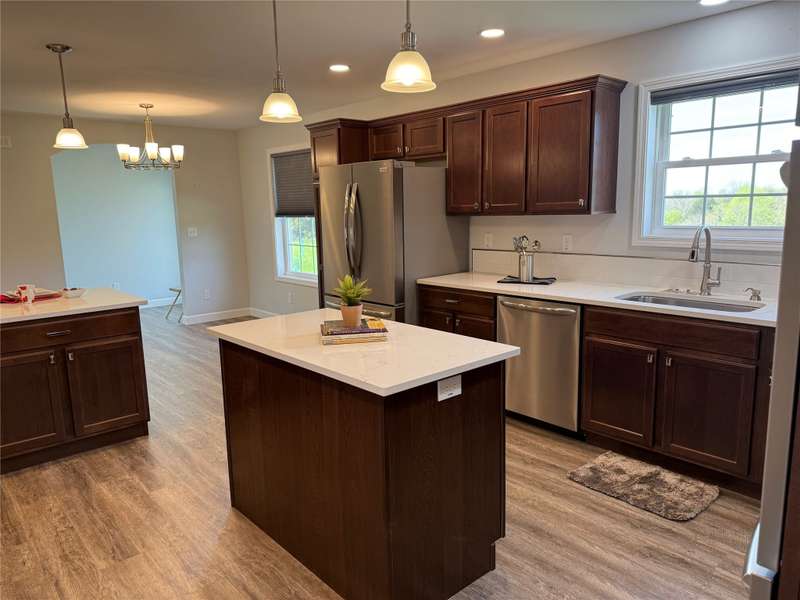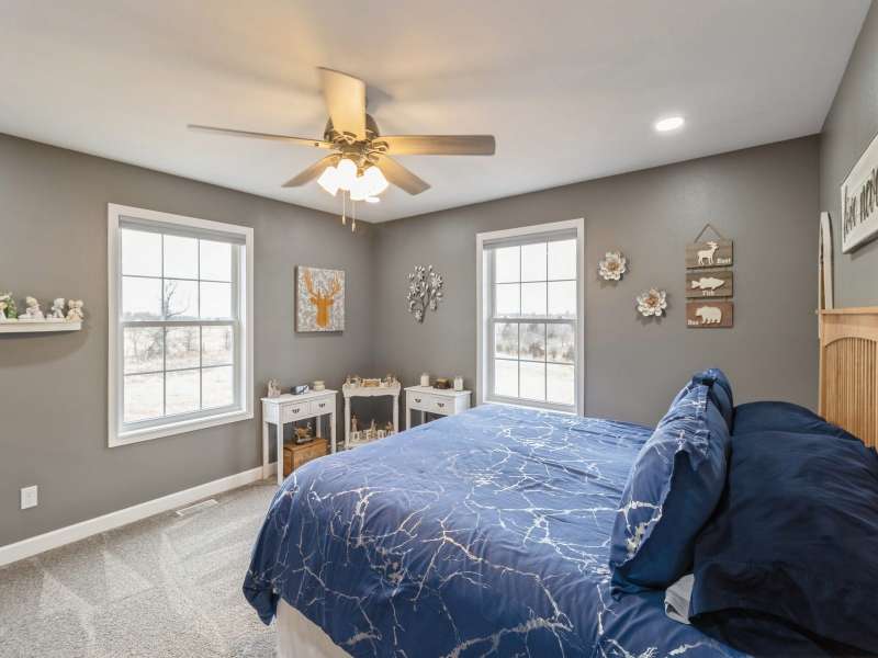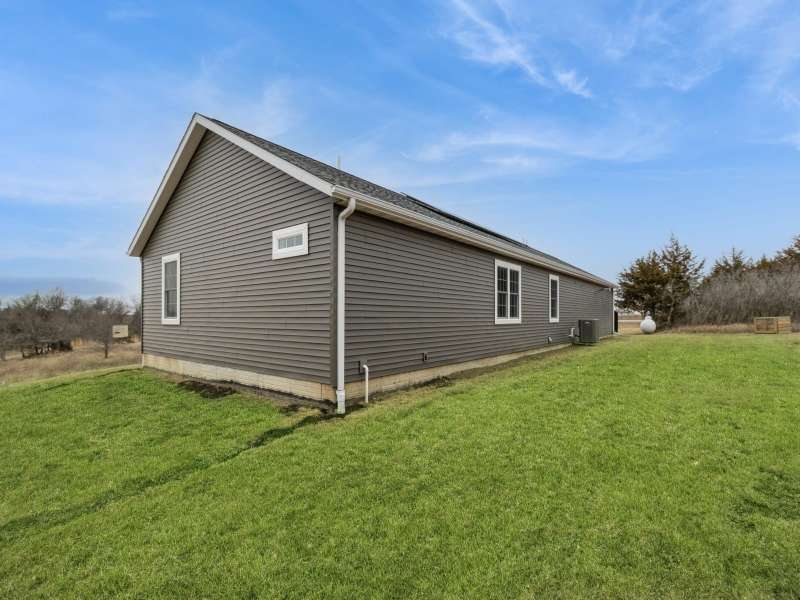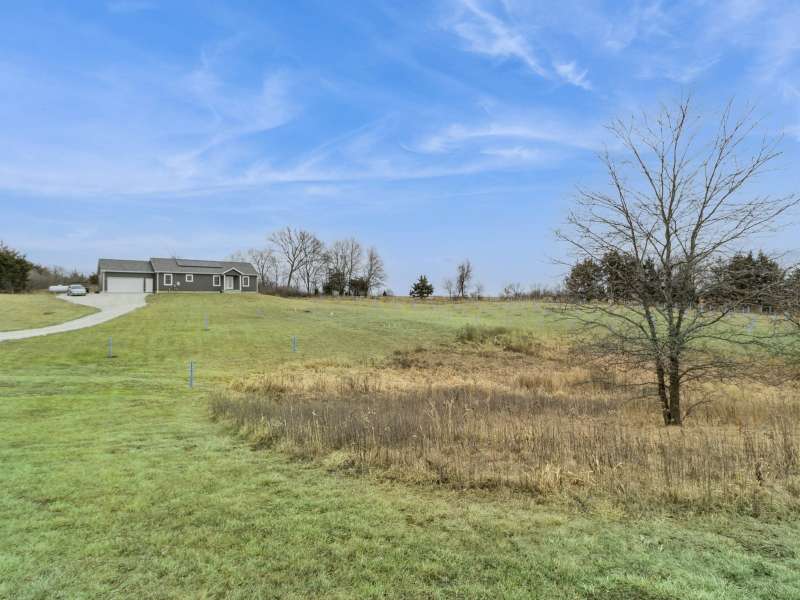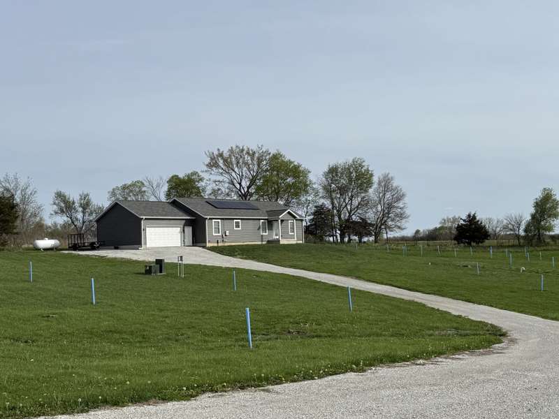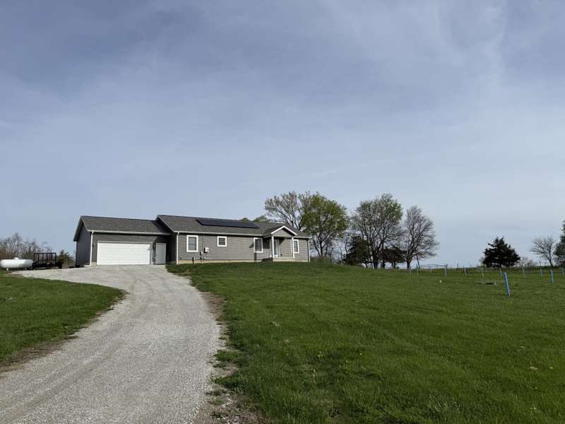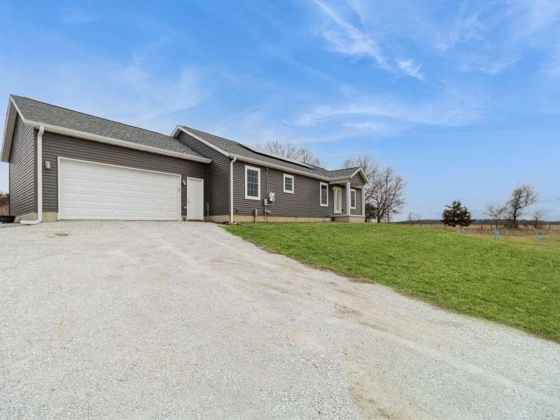 Primary Exterior photo is enhanced to show future landscaping possibilities . Escape to the perfect balance of modern living and country charm with this newly built 2023 ranch home with 2x6 construction, w/ GFA & CA along with a solar energy system on 15 acres of scenic land, located on pavement just 20 minutes South of Indianola or 20 minutes to Chariton. With no covenants, this property is ideal for a hobby farm, outdoor recreation, or simply enjoying the peace of nature. The land features a deer blind overlooking a natural spring and mature timber, along with 100 newly planted Oak & Hickory trees. Inside boasts a spacious kitchen with Quartz countertops, pantry, SS appliances, and LVP flooring. First floor laundry-mud room featuring a broom closet & coat closet. A comfortable primary suite with walk in closets, lg bath with walk in tile shower and double vanity. LL features an additional entertainment space with a family room along with large storage area. Attached 24x24 garage is heated & insulated with attic storage. Whether you're looking for a private retreat or a place to bring your farming dreams to life, this property is ready for you! Schedule your showing today! Property is 1/8th of a mile SOUTH of the WARREN COUNTY line on Hwy. 65 entering into Lucas County.