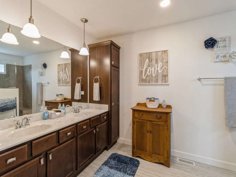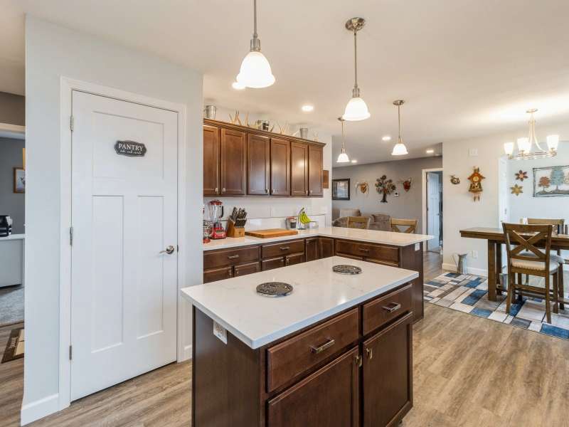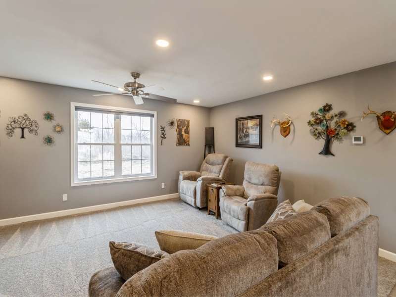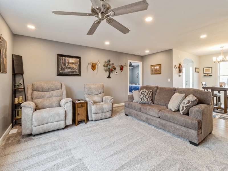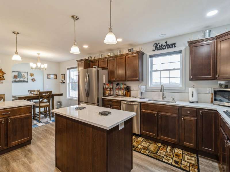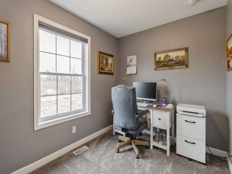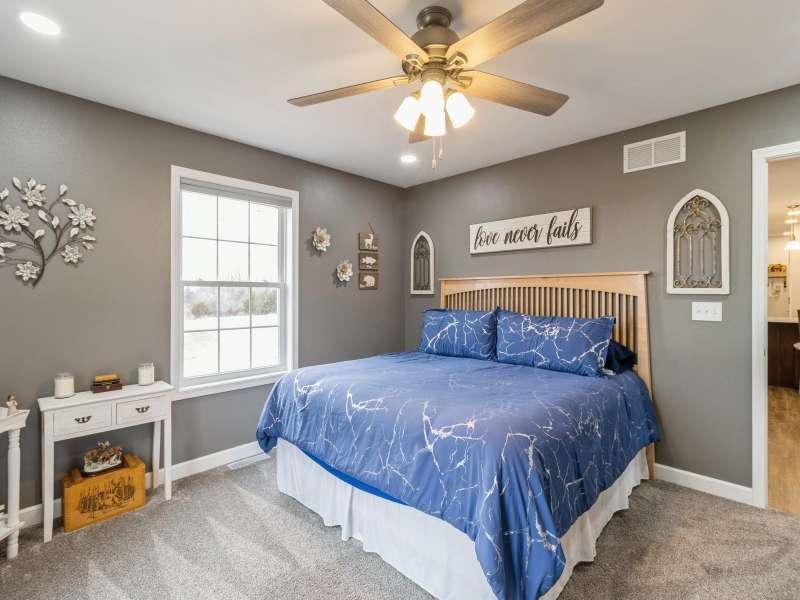 Primary Exterior photo is enhanced to show future landscaping possibilities . Escape to the perfect balance of modern living and country charm with this newly built 2023 ranch home with 2x6 construction, w/ GFA & CA along with a solar energy system on 15 acres of scenic land, located on pavement just 20 minutes South of Indianola or 20 minutes to Chariton. With no covenants, this property is ideal for a hobby farm, outdoor recreation, or simply enjoying the peace of nature. The land features a deer blind overlooking a natural spring and mature timber, along with 100 newly planted Oak & Hickory trees. Inside boasts a spacious kitchen with Quartz countertops, pantry, SS appliances, and LVP flooring. First floor laundry-mud room featuring a broom closet & coat closet. A comfortable primary suite with walk in closets, lg bath with walk in tile shower and double vanity. LL features an additional entertainment space with a family room along with large storage area. Attached 24x24 garage is heated & insulated with attic storage. Whether you're looking for a private retreat or a place to bring your farming dreams to life, this property is ready for you! Schedule your showing today! Property is 1/8th of a mile SOUTH of the WARREN COUNTY line on Hwy. 65 entering into Lucas County.