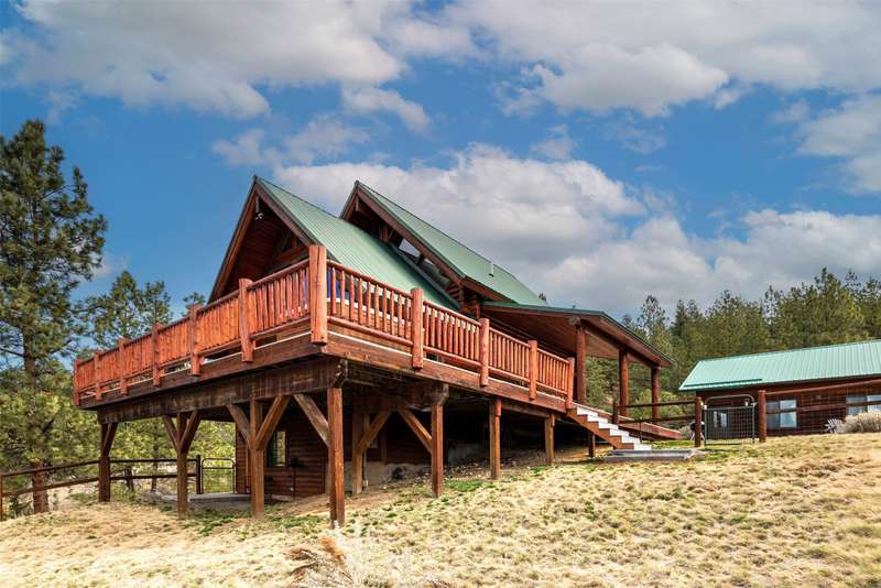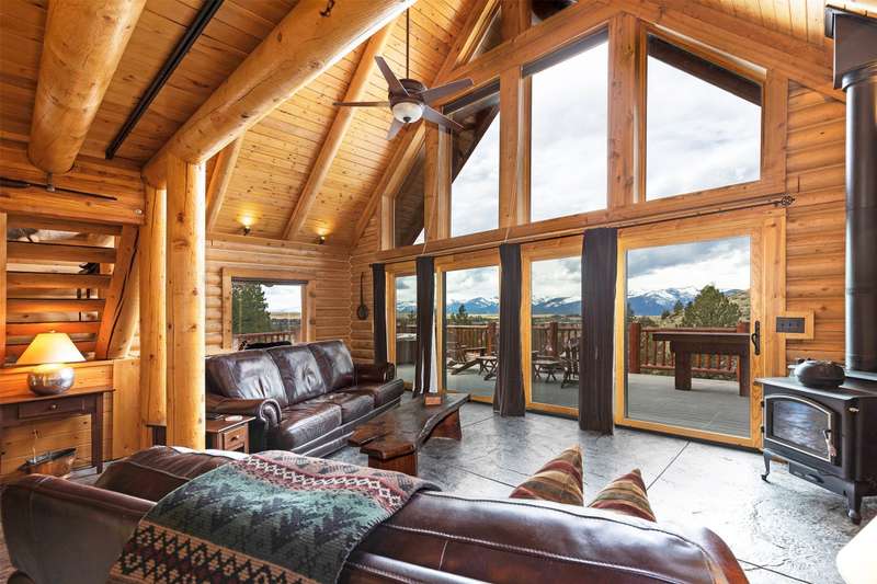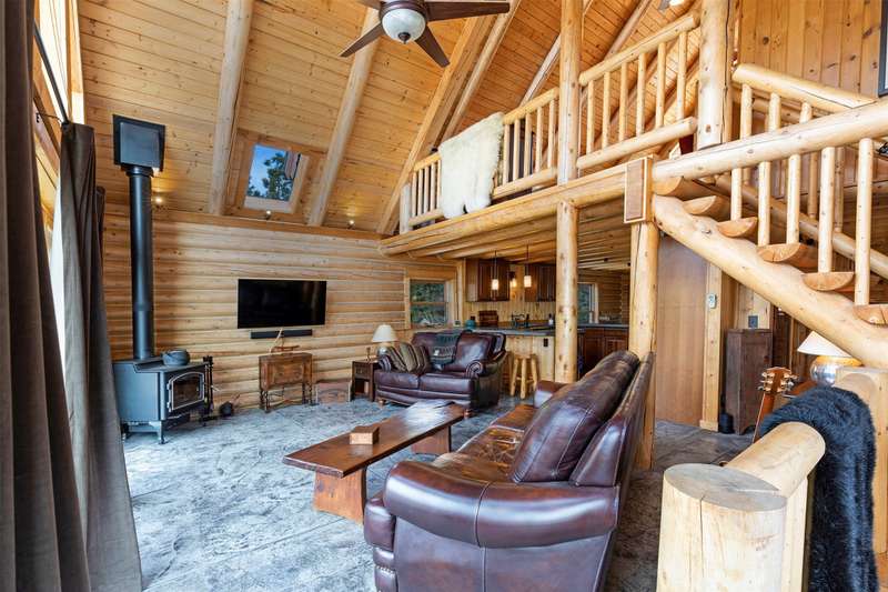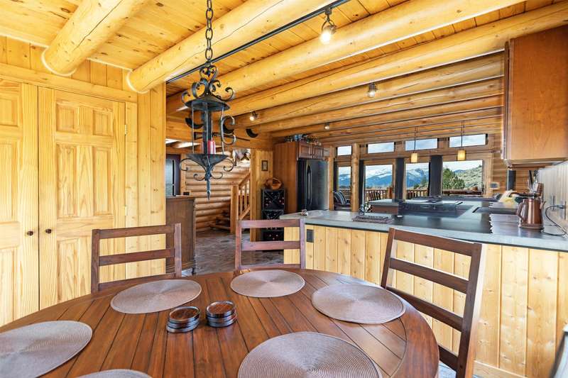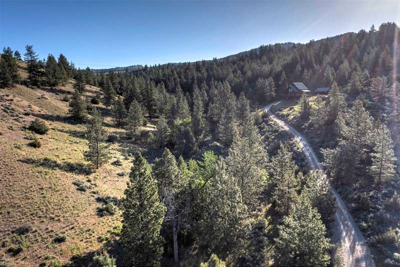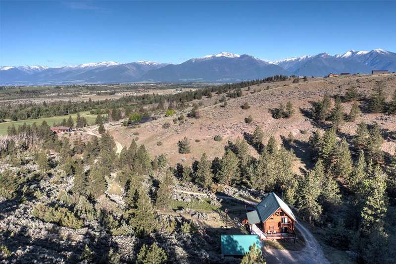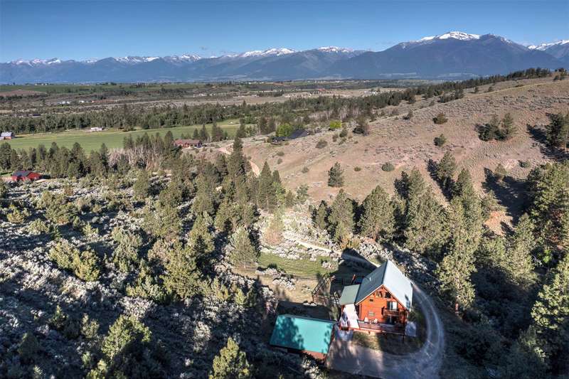 Serene & private 28.9-acre property borders protected lands in conservation easements & ranch land, offering massive 50-mile mountain views for your private sanctuary! This well-maintained, quality log, 3 bedroom, 2.5 bathroom, 2,304 +/- sq ft home is the Montana dream! Beamed, vaulted ceilings & incredible picture windows take in the Bitterroot Mountains and peaceful valley below. Enjoy quiet evenings in front of the fire or enjoy all four seasons from the large decks! The open living, quality kitchen, and dining area is filled with natural light, creating a comfortable, western lodge-like atmosphere. The updated kitchen is sure to please with its ample space and deck access. The primary suite is on the upper (loft) level and includes a double vanity, turn-of-the-century-inspired copper soaking tub, & a tiled shower. The walkout lower level offers 2 additional beds, a bath, living area, & laundry room, perfect for guests to have private space. Year round access & near city services. Watch the joy of Montana unfold before you with elk, deer, turkey, and critters common to the area right from your cozy home! Interested in fishing? The home is just minutes from blue ribbon waters, floating, hiking, horseback riding, ATV fun, and more! The updated kitchen is perfect for quick meals and gourmet dinners, with ample cabinet space, a pantry, newer appliances, concrete countertops, cherry cabinetry, and a private patio. The Main floor has a great woodstove, in-floor heating, and lots of mountain view windows. This immaculate log home has been well cared for. The lovely primary bedroom suite is located in the charming upper loft area with great mountain views. The family room, two bedrooms & a bath are on the lower level with private access. The kitchen, living room, dining room, spacious pantry, and guest powder room are on the main level, leading out to the extra-large 1200+/- square foot deck, perfect for fun gatherings. A must-have outdoor fire pit is set up for parties or starlit evenings. The property sits off the road for quiet privacy. This home can be sold furnished.
