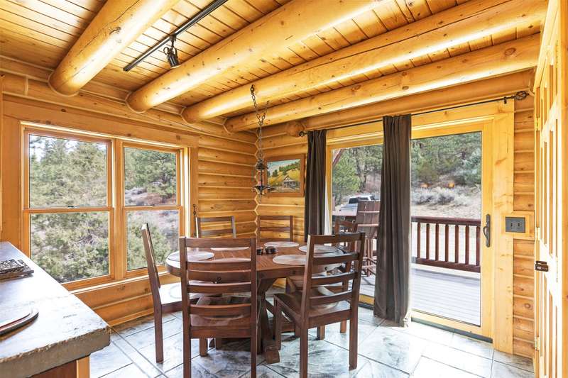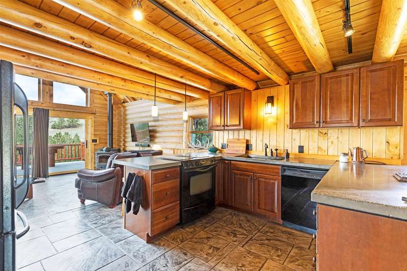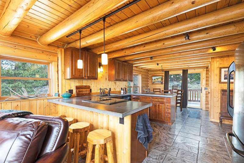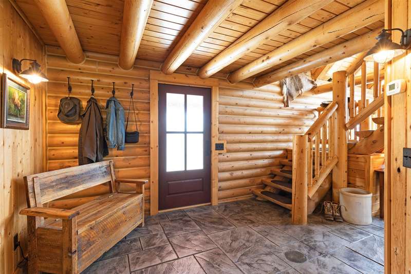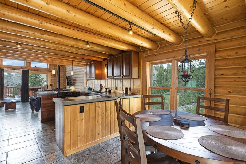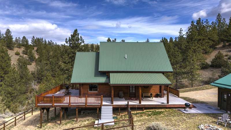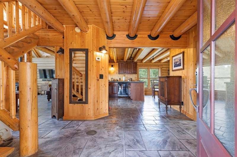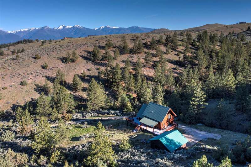 Serene & private 28.9-acre property borders protected lands in conservation easements & ranch land, offering massive 50-mile mountain views for your private sanctuary! This well-maintained, quality log, 3 bedroom, 2.5 bathroom, 2,304 +/- sq ft home is the Montana dream! Beamed, vaulted ceilings & incredible picture windows take in the Bitterroot Mountains and peaceful valley below. Enjoy quiet evenings in front of the fire or enjoy all four seasons from the large decks! The open living, quality kitchen, and dining area is filled with natural light, creating a comfortable, western lodge-like atmosphere. The updated kitchen is sure to please with its ample space and deck access. The primary suite is on the upper (loft) level and includes a double vanity, turn-of-the-century-inspired copper soaking tub, & a tiled shower. The walkout lower level offers 2 additional beds, a bath, living area, & laundry room, perfect for guests to have private space. Year round access & near city services. Watch the joy of Montana unfold before you with elk, deer, turkey, and critters common to the area right from your cozy home! Interested in fishing? The home is just minutes from blue ribbon waters, floating, hiking, horseback riding, ATV fun, and more! The updated kitchen is perfect for quick meals and gourmet dinners, with ample cabinet space, a pantry, newer appliances, concrete countertops, cherry cabinetry, and a private patio. The Main floor has a great woodstove, in-floor heating, and lots of mountain view windows. This immaculate log home has been well cared for. The lovely primary bedroom suite is located in the charming upper loft area with great mountain views. The family room, two bedrooms & a bath are on the lower level with private access. The kitchen, living room, dining room, spacious pantry, and guest powder room are on the main level, leading out to the extra-large 1200+/- square foot deck, perfect for fun gatherings. A must-have outdoor fire pit is set up for parties or starlit evenings. The property sits off the road for quiet privacy. This home can be sold furnished.