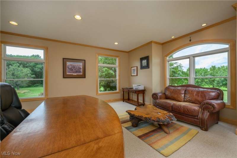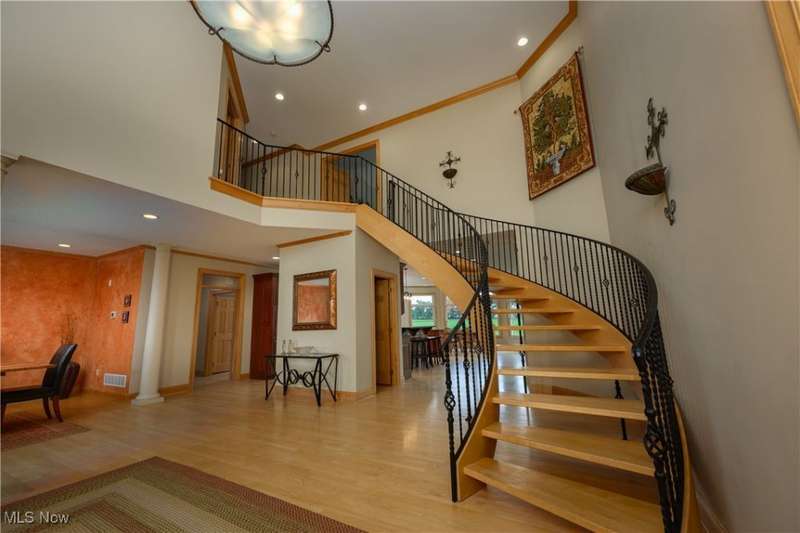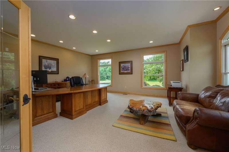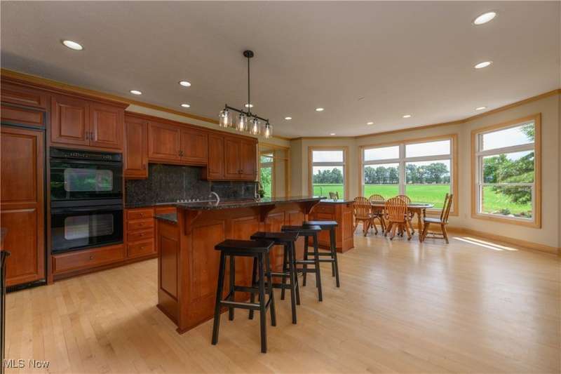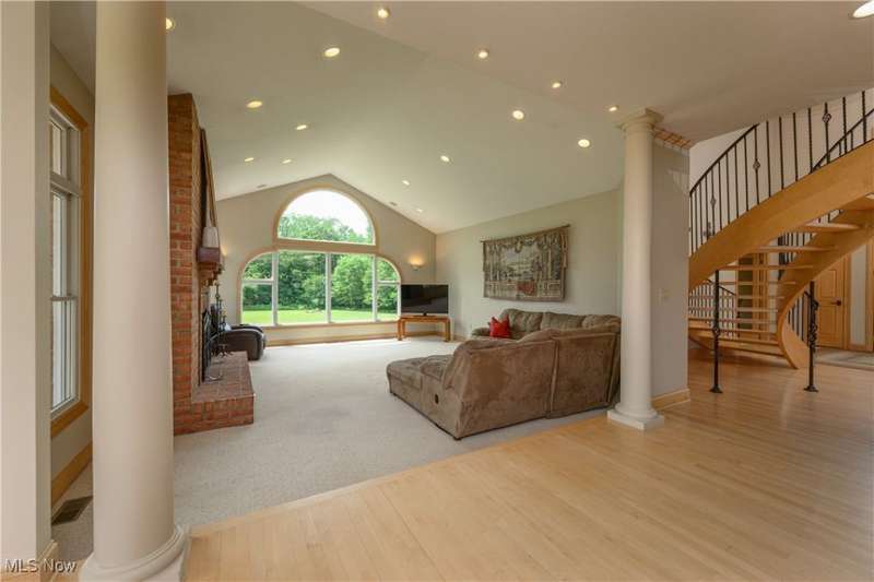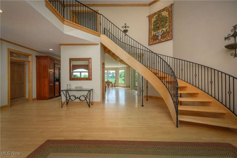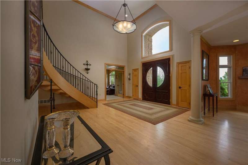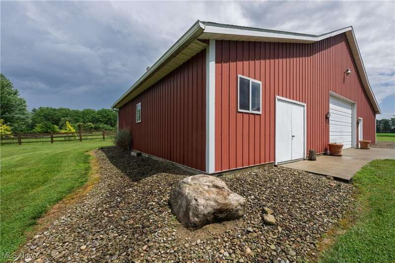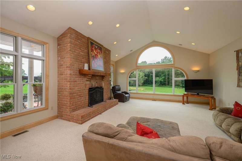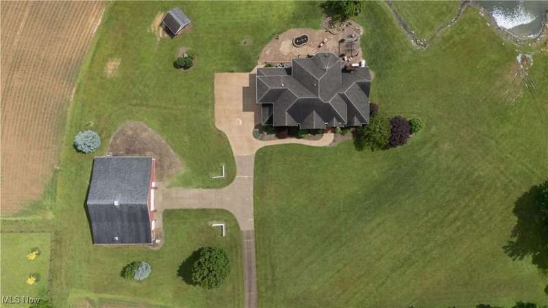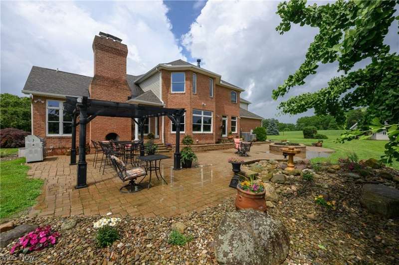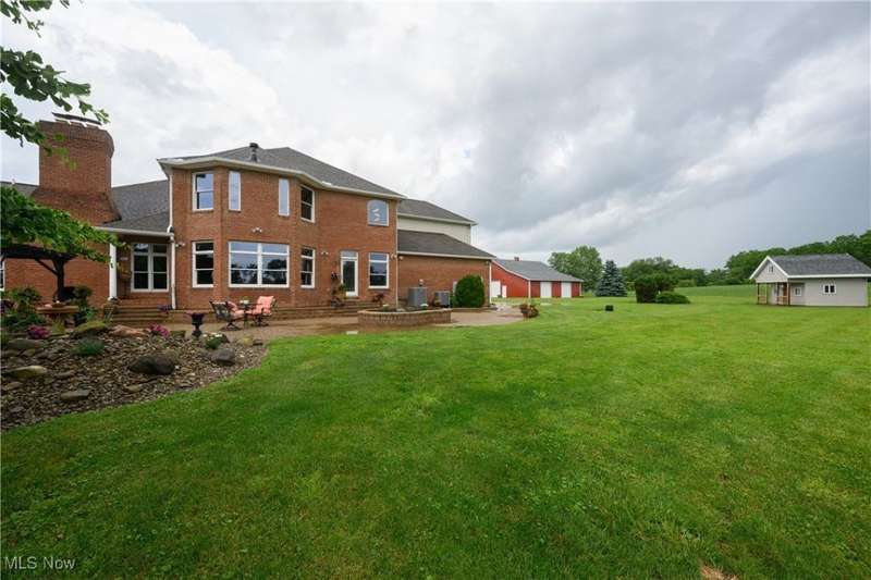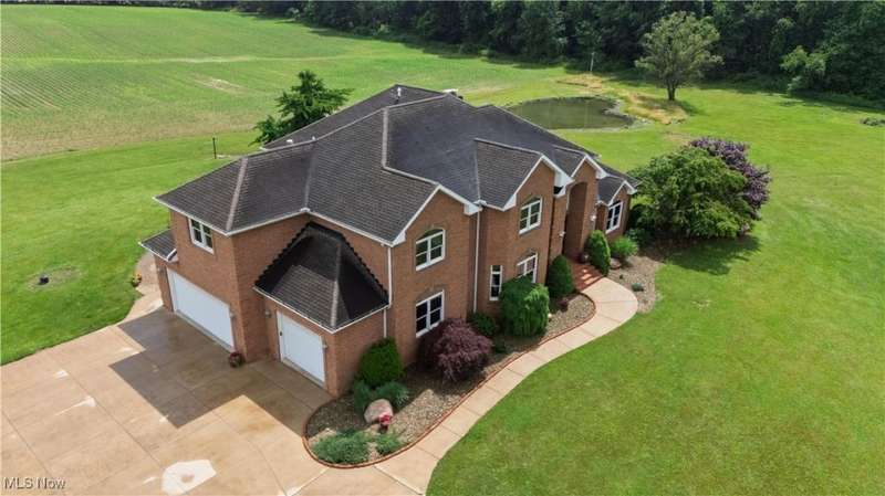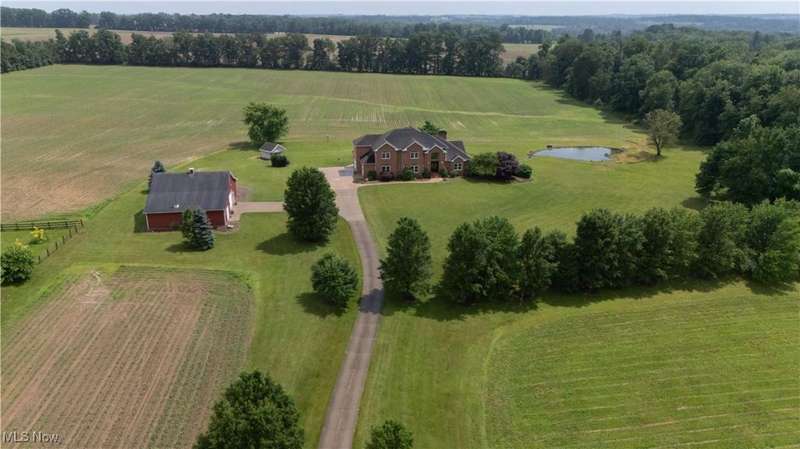 Discover timeless elegance and modern comfort in this breathtaking brick home nestled on over 20 private acres. Boasting more than 6,000 square feet. This single-owner residence features soaring ceilings, an abundance of natural light, and expansive rooms designed for both everyday living and grand entertaining. The dramatic entryway welcomes you with a sweeping staircase, one of two in the home, setting the tone for the classic architecture throughout. The chef's kitchen has a Viking stovetop, Thermador downdraft ventilator, double ovens and wine refrigerator along with the Amish built custom cabinetry, and granite counter tops. Enjoy cozy evenings by one of four fireplaces and retreat to the lower level with a potential fifth bedroom and full bath, ideal for guests or multi-generational living. The lower-level also contains a kitchenette with a small refrigerator and dishwasher for easy clean up when entertaining. The heart of the home flows effortlessly into an outdoor entertaining area complete with a built-in fireplace, large custom paver patio, and serene views. A stocked pond and large barn add to the property's unique offerings, perfect for hobbies, livestock, or storage. Upstairs the master suite, a has his and her closet, a large shower with steam and a cold head with 8 jets, a soaker tub, and a fireplace. Each additional bedroom also has an attached bathroom and walk-in closets. This truly a rare opportunity to own a luxurious estate with the space and serenity of country living?yet still close to city amenities.