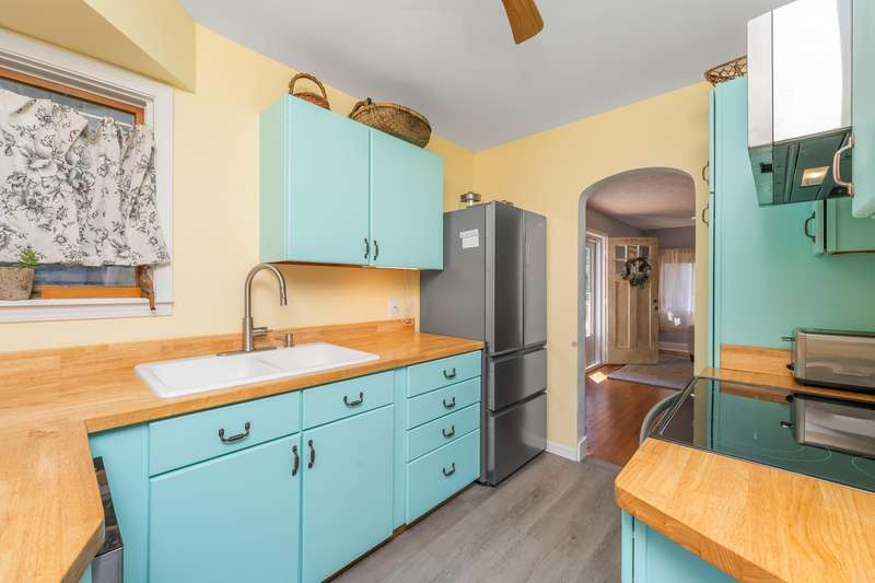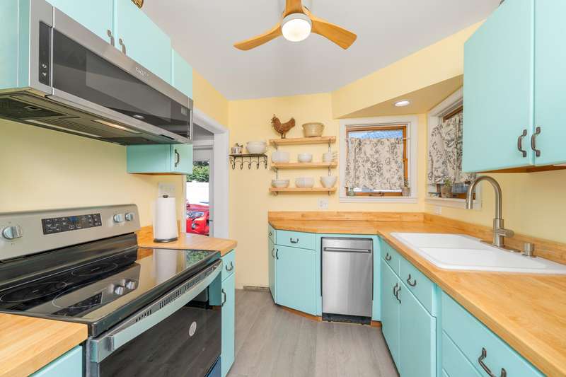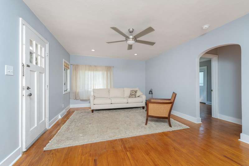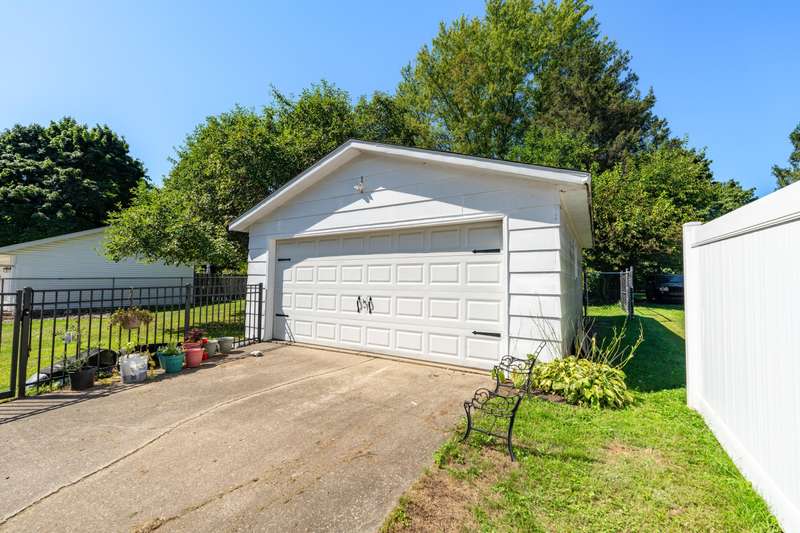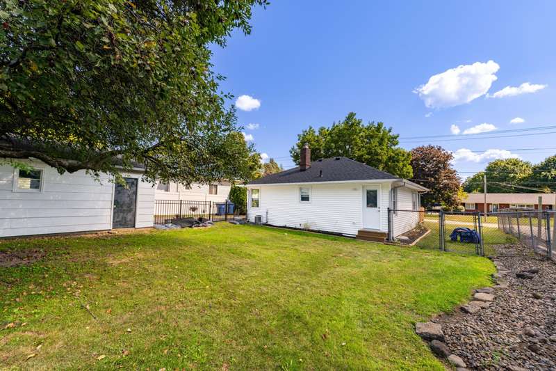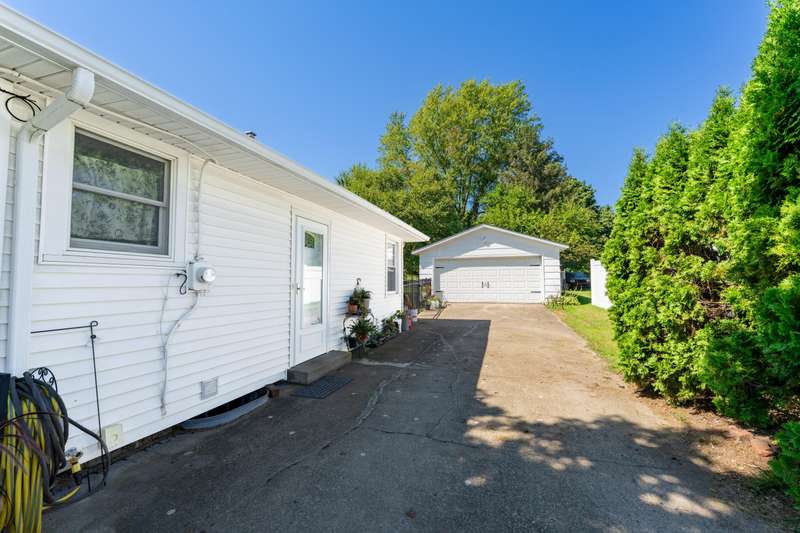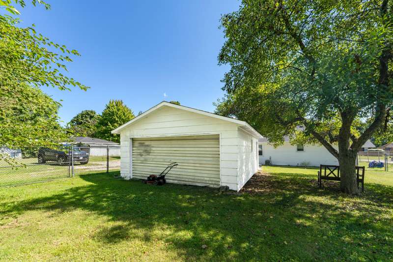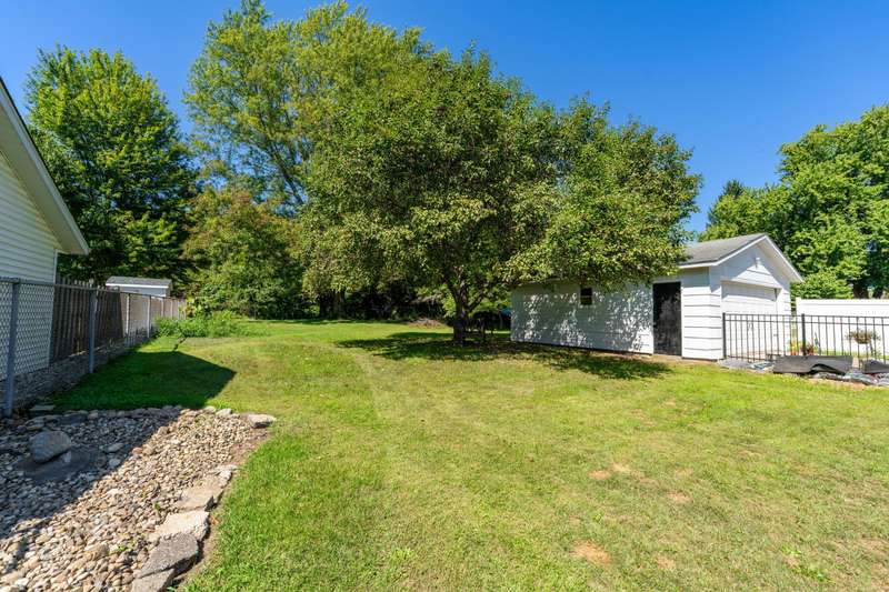 Beautifully redone bungalow on over an acre! This 2 bedroom 1 bath home is the perfect starter home! This house is turn key and needs no updates! Arched doorways and wood floors greet you as you enter the home from the new porch with seating area. You will find charming in-wall shelves and storage areas. The kitchen hosts new stainless steel appliances. The newly finished basement, which has been waterproofed, hosts a utility room with laundry (newer washer and dryer included). The furnace, whole house water filter, hot water heater have all been replaced in the past year. Outside you will see that the roof and landscaping are also new. The driveway has been professionally leveled and leads up to a 2 car garage with pull through making access to the fenced backyard easy! This house is a must see with a motivated seller! All measurements should be verified by buyer.