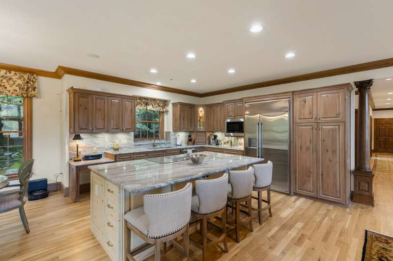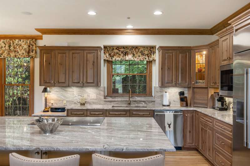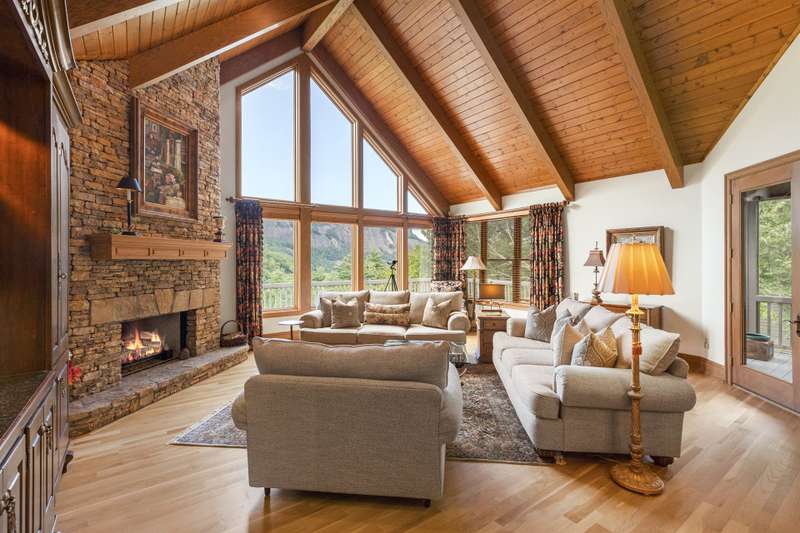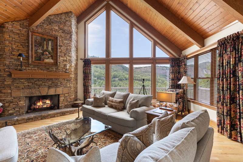 This is the Panoramic BIG VIEW! Prepare to be captivated by sweeping, unobstructed views of iconic Whiteside Mountain from this stunning Highlands Falls Falcon Ridge residence, a home so remarkable it has been featured twice in Architectural Digest. Designed with generous proportions and effortless flow, the home offers main-level living with the primary suite conveniently located on the entry level. Architectural details abound, highlighted by custom wormy chestnut and oak features throughout, including an impressive 3? solid wormy chestnut entry door. The primary suite commands breathtaking mountain views and sunrises and boasts a lavish Italian marble bath with soaking tub, oversized shower, dual lighted mirrors, hidden lighted vanity, Kohler fixtures, custom walk-in closets, and a private wet bar with sink and mini-fridge. The open-concept living, dining, and kitchen spaces flow seamlessly onto a screened porch with a fully outfitted grilling station featuring a Blaze grill?an entertainer's dream with Whiteside Mountain as the backdrop. The main level also conveniently includes a guest bedroom, full bath, office/den with custom glass paned wormy chestnut and oak door, and a full laundry room with sink. The lower level provides for guest privacy with a second living area with fireplace, private deck, two spacious en-suite bedrooms, powder room, bonus/flex room with gym/playroom potential, and a secondary laundry area. Recent upgrades are extensive, including a remodeled kitchen, refinished hardwood floors, 27 new windows, new roof, gutters with guards, encapsulated crawlspace, repaved driveway with focal pavers, updated HVAC systems, new water heaters with recirculation pump, blown-in attic insulation, new gas logs in main level fireplace, and view clearing to fully showcase dramatic views of Whiteside Mountain, Wildcat Ridge, and Cullasaja Club beyond. A drainage system beneath the upper deck ensures protection for the lower-level outdoor living area. Peace of mind comes with a 500-gallon fresh water reserve tank and a whole-house generator. A two-car garage with workshop, along with a welcoming exterior accented by a serene water feature, completes this mountain sanctuary. This Highlands Falls home is more than a residence?it is a retreat of timeless architecture, meticulous updates, and awe-inspiring views. Membership to Highlands Falls CC is not mandatory but the amenities are tremendous and the club is vibrant. See Attached Matterport for tour.