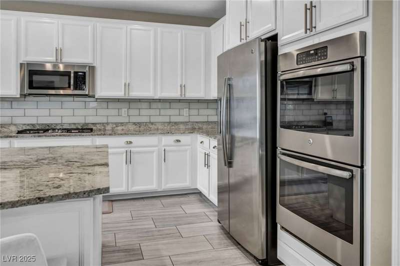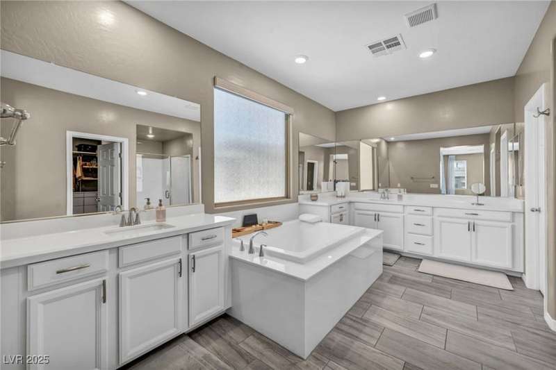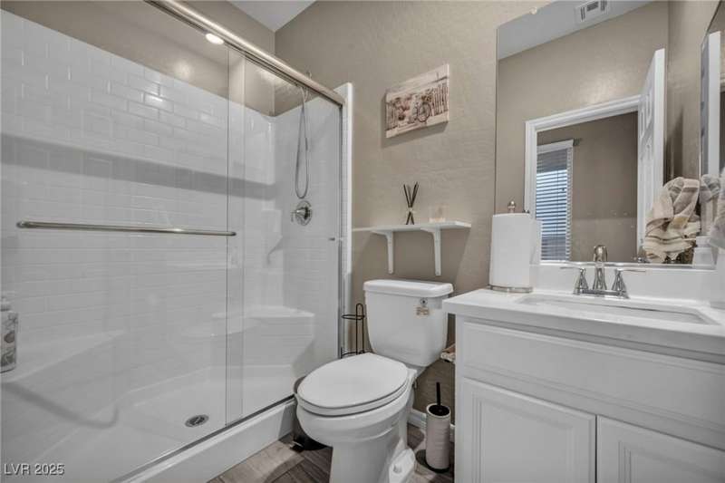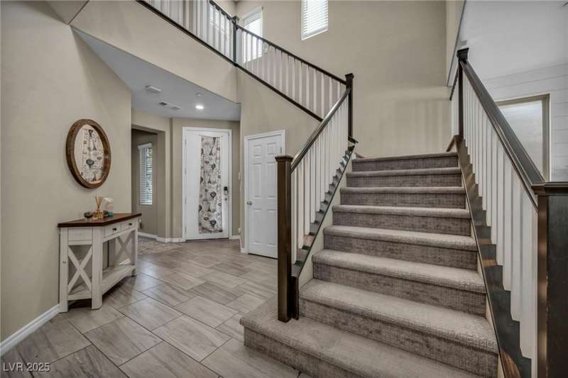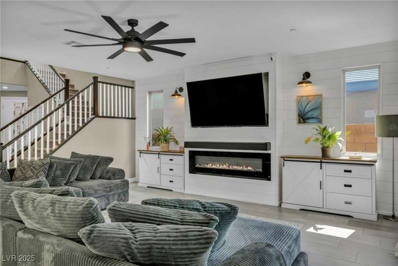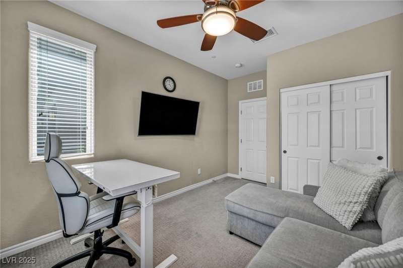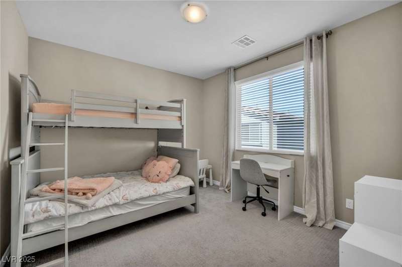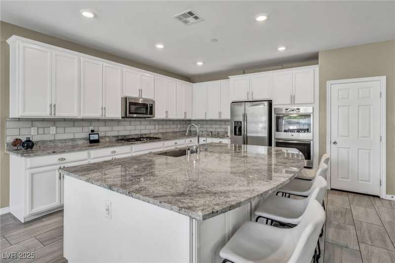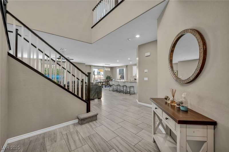 Beautifully maintained and move-in ready, this spacious 5-bedroom, 3-bath home offers the perfect blend of comfort, function, and style in a gated Henderson community. The open-concept floor plan features a bright living area, modern kitchen with island, stainless steel appliances, and walk-in pantry. Upstairs, the primary suite boasts a private balcony with park views and a large custom closet. Step outside to one of the best backyards around?with a sparkling heated pool, covered patio, and professionally landscaped yard ideal for family gatherings and outdoor fun. Additional highlights include solar panels, powered shades, custom storage throughout, Ring cameras, and an oversized garage with built-ins. Appx living area -3,058 sq., garage - 497 sq.ft. Best value per sq.ft. Immaculate condition and pride of ownership throughout?this is the home your family has been waiting for!