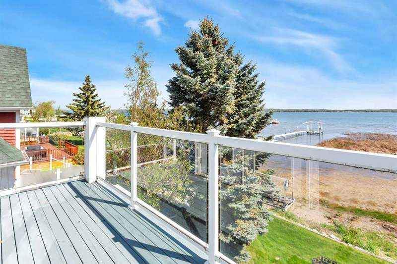 Welcome to 180 Marina Bay Court—a rare opportunity to own a lakefront home for under $800K! Nestled in the prestigious Marina Bay community of Sylvan Lake, this property offers a serene waterfront lifestyle just minutes from downtown shops, restaurants, and year-round attractions. Whether you're heading into town or enjoying the lake, everything is within reach. This 3-bedroom, 2-bathroom home is perfectly situated on the shoreline with breathtaking lake views from both the main and upper levels. The layout is spacious, sun-filled, and designed forcomfort—with vaulted ceilings, large windows, and seamless flow between indoor and outdoor spaces. Lovingly maintained and ready to enjoy, thehome also provides a great opportunity to incorporate your own modern touches over time. Triple-pane windows help keep the home cool in the summer and cozy in the winter, while a newer on-demand hot water tank ensures reliable, energy-efficient hot water for years to come. Step outside to your private backyard oasis where you’ll find green space, mature trees, and a tranquil setting perfect for morning coffee or evening fires by the lake. Located on a quiet cul-de-sac, Marina Bay is a close-knit community known for its private marina, seasonal events, and relaxed, coastal vibe. Whether you're seeking a year-round home or the ultimate lakefront getaway, this is waterfront living at an exceptional value.