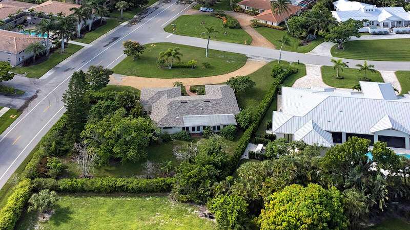 Featuring an array of tropical foliage, this oversized corner lot encompassing nearly 20,000 sq. ft offers Buyers an expansive building envelope to construct a new residence of sizeable proportions, all the while less than one mile from the exclusive Moorings Beach Park. Such an excellent location puts discerning Buyers not only a mere minute from the beach, but also provides a strategic location that is nestled right in between the fabulous Fifth Avenue shopping / dining to the south and Waterside Shoppes to the north. Currently presiding on the parcel is a charming home that is being sold in As-Is condition. Often referred to as Naples' most desirable community, Moorings residents benefit in having a voluntary membership to the private Moorings Beach Park which totes a sugar sand coastline, restrooms, and picnic area. This incredible opportunity additionally benefits from being in the "X" flood zone and did not receive any water intrusion from Hurricane Ian.
