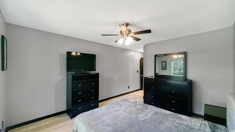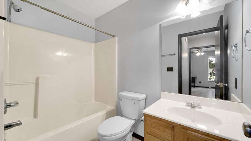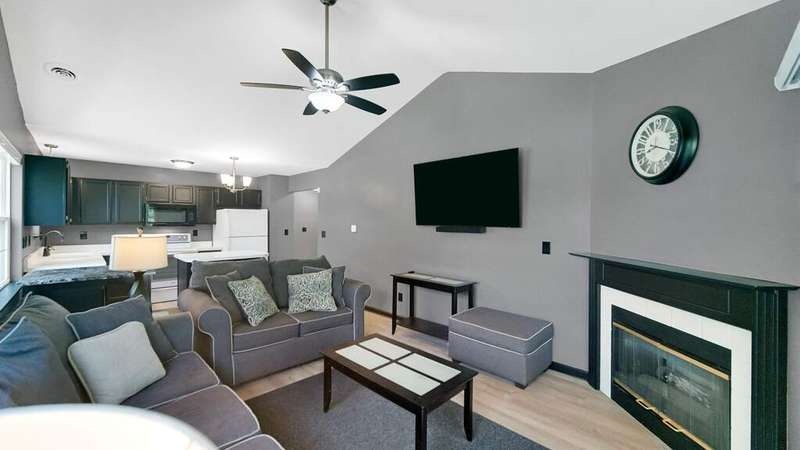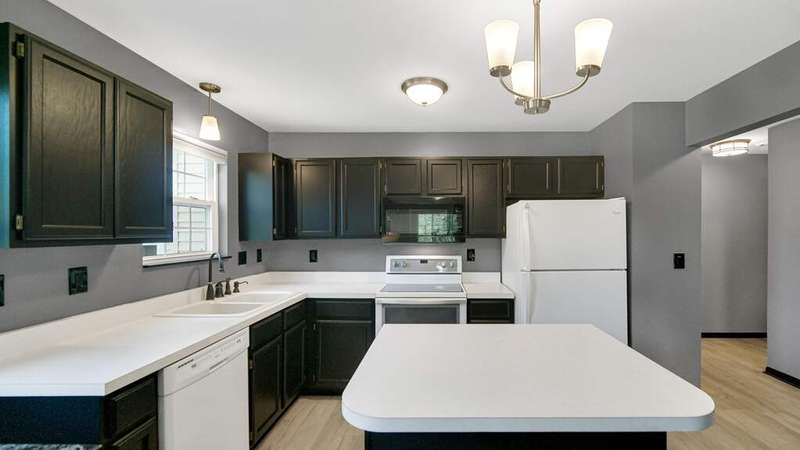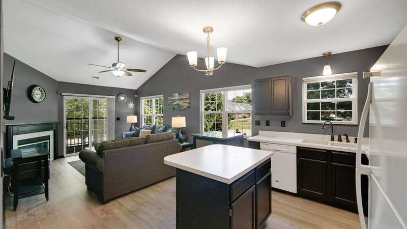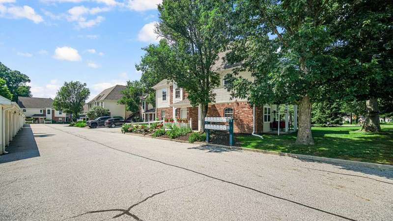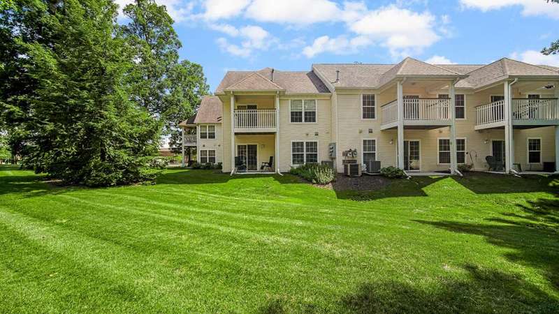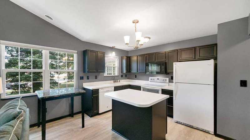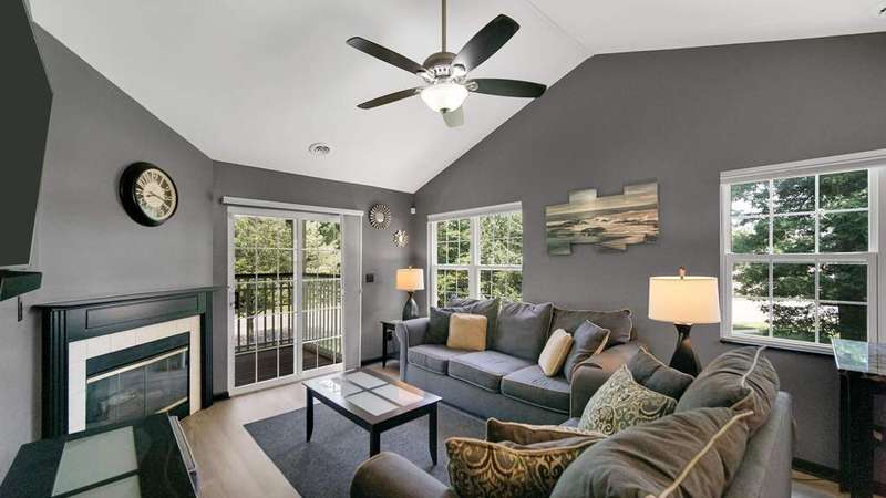 MOVE-IN READY, 2Bdrm/2Bth, Upper-Level Condo boasts MODERN UPDATES and NEWER MAJOR COMPONENTS in CONVENIENT, SOUGHT-AFTER LOCATION! Wide Plank, Grey-toned Flooring WELCOMES YOU into Unit and flows throughout Living Space including OPEN CONCEPT Kitchen and VAULTED Living Rm w/ Gas FIREPLACE. Kitchen features SLEEK BLACK CABINETRY, Eat-in ISLAND, & comes equipped w/ Appliances. Glass Slider from Living Rm leads out to PRIVATE, Covered Deck. Black Trim/Doors throughout compliment Grey Paint Palette and UPDATED LIGHT FIXTURES. Primary Bdrm features C-Fan, W-I Closet, & PRIVATE ENSUITE w/ W-I Shower. 2nd Bedroom also has C-Fan and W-I Closet w/ Access to Full Bath off Hallway. IN-UNIT LAUNDRY ROOM comes w/ WASHER & DRYER INCLUDED. 1 Car Garage has Automatic Opener, Pull-down Storage, & Cabinets for Storage. Newer Furnace (2021), A/C Unit (2021), & Hot Water Heater (2023) for PEACE of MIND. Association takes care of Snow Removal, Lawn Care, & Exterior Maintenance for CARE-FREE LIVING!
