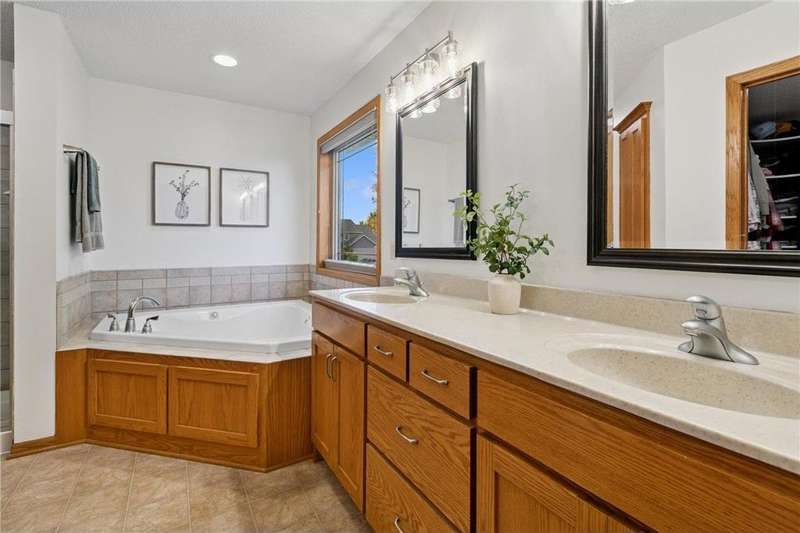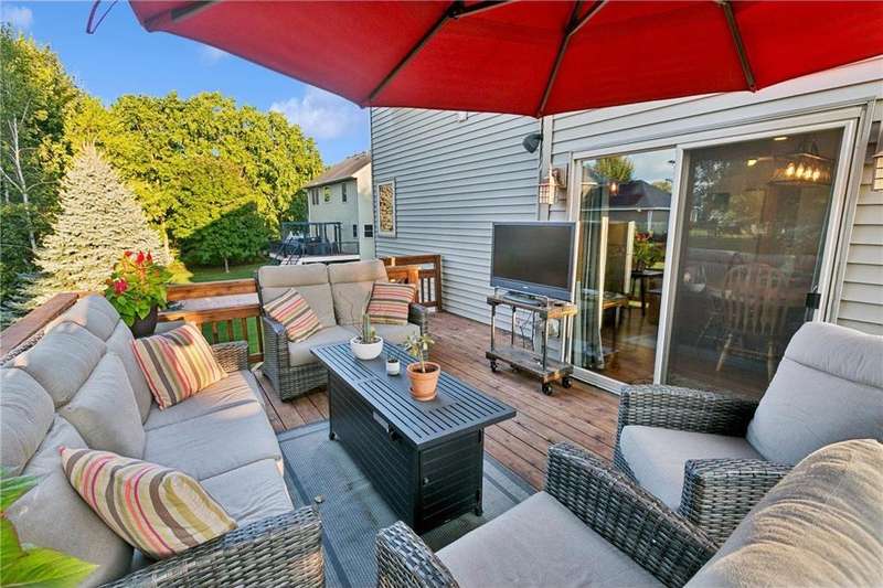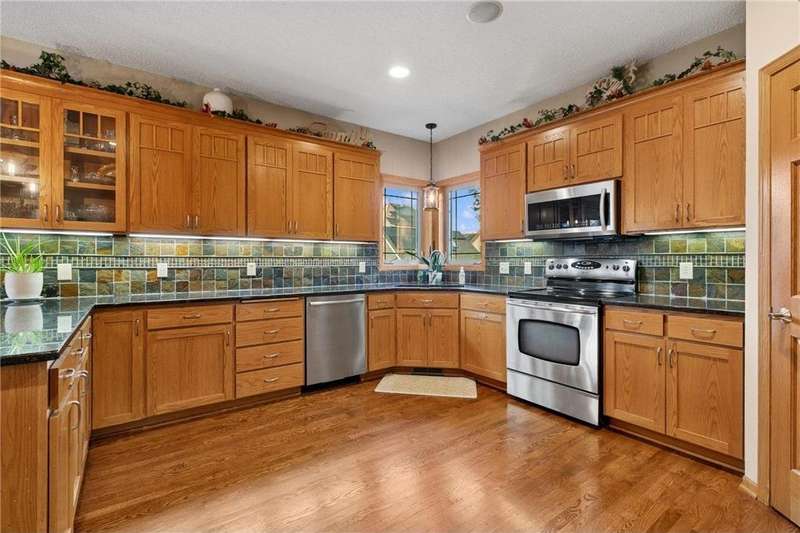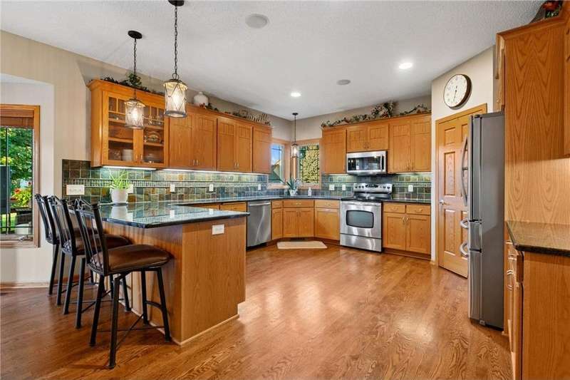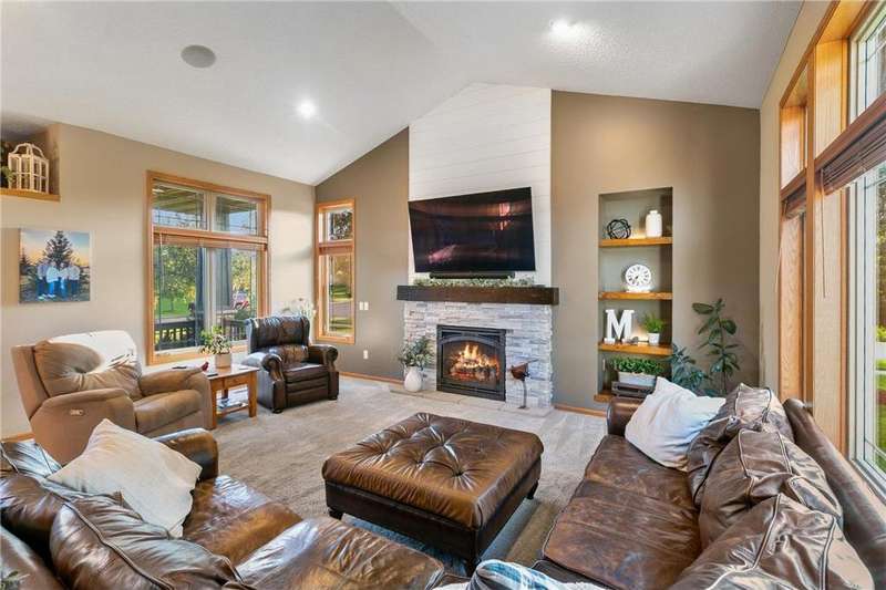 Fabulous two story on spacious corner lot offering inviting curb appeal. This impeccably maintained home features 4 bedrooms up including primary suite + bonus room above garage. Updated baths with tiled showers throughout...double sinks in primary + hall bath in upper level. HUGE chef's kitchen with granite counters, slate tile backsplash with under-cabinet lighting, walk-in pantry, snack bar, & much more! Decorative ship lap + stone detail in Living & Dining rooms. Cozy stone fireplace in Great room with dramatic vaulted ceiling and windows galore. 6 panel doors throughout. Surround sound. Newer roof. Fantastic deck. Sprinklers. Nothing to do here except move in & enjoy!