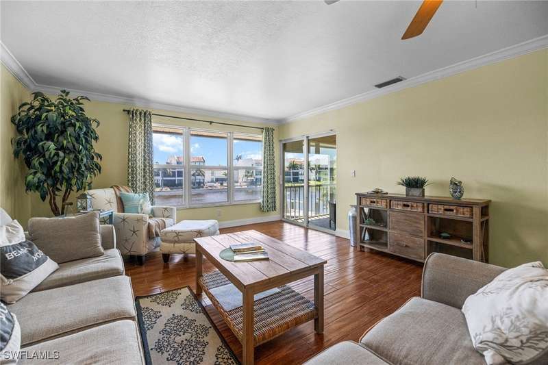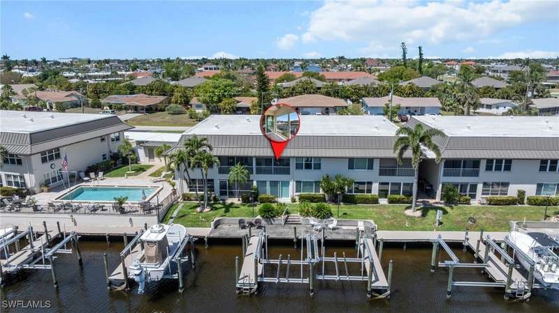 Turnkey Waterfront Condo with Gulf Access and Private Boat Slip: Welcome to this beautifully updated and spacious 2-bedroom waterfront condo, offered fully turnkey and move-in ready-ideal as a full-time residence, seasonal getaway, or income-producing investment. Step inside to find recent, high-quality upgrades designed for comfort and peace of mind. In 2022, the HVAC system was replaced with an energy-efficient Rheem air handler and condenser, along with a complete ductwork replacement by Air Necessity Heating & Cooling. All windows and lanai sliders were updated with Low-E, impact-resistant glass, complemented by a new impact-resistant front door with side transom, ensuring durability and storm protection. The screened lanai overlooks the wide Navaho Canal and your assigned boat slip, just steps away-offering direct access to the Caloosahatchee River, the Gulf of America, and some of SWFL's most popular beaches, fishing estuaries, and 50+ waterfront dining destinations. Commodore I Condominium Association is located just off Beach Pkwy and adjacent to Jaycee Park which is currently undergoing major renovations and improvements. This condo also benefits from a metal roof installed in 2018, freshly paved walkways and pool deck, updated dock slips, and new carport coverings-all part of recent community improvements. Nestled just off Beach Parkway East and Del Prado Blvd S, you're minutes from Downtown Cape Coral, shopping, dining, and all the best of Southwest Florida living.