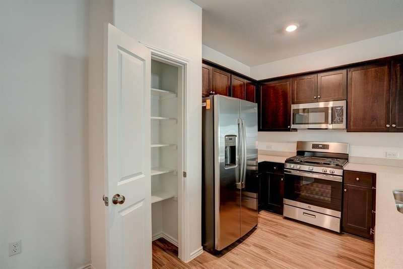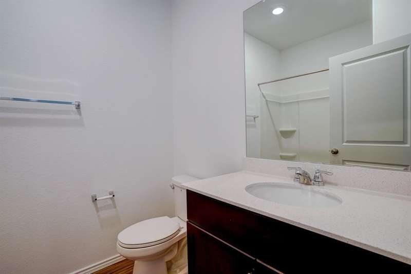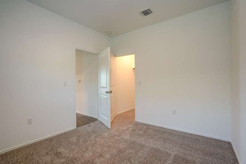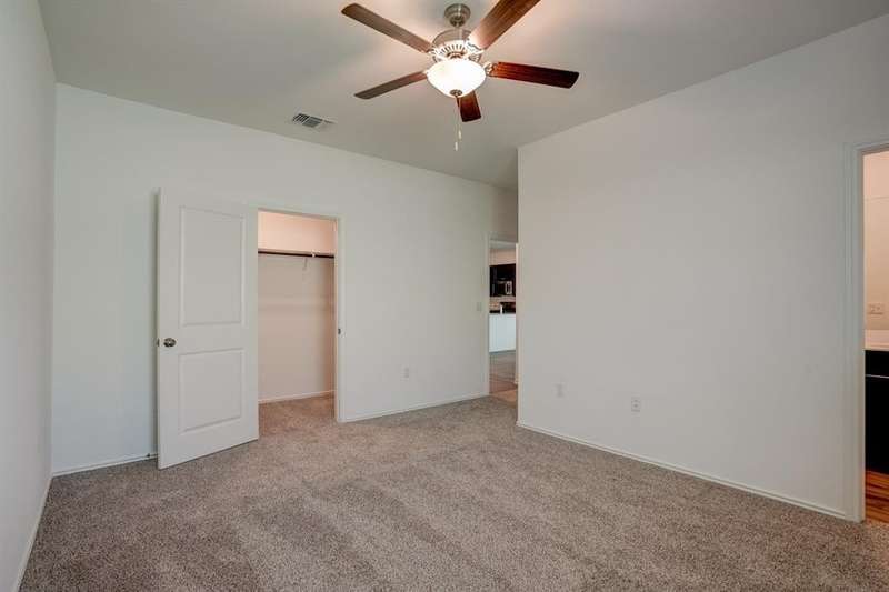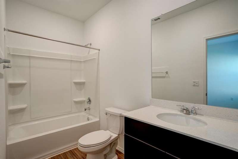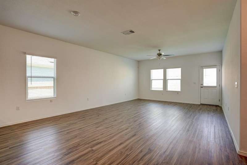 This 3-bedroom, 2-bathroom single-story home is located less than 30 minutes east of downtown Austin, features carpeted bedrooms with ceiling fans, including the primary suite, and wood-look vinyl flooring throughout the main living areas. The kitchen is equipped with stainless steel appliances, quartz countertops, dark wood cabinetry, and a pantry. Bathrooms also have quartz surfaces and the primary bathroom includes a single vanity and a large tub. Additional highlights include a bright, open floor plan with abundant natural light and a private fenced backyard. This property offers a modern, comfortable living space in a convenient location.