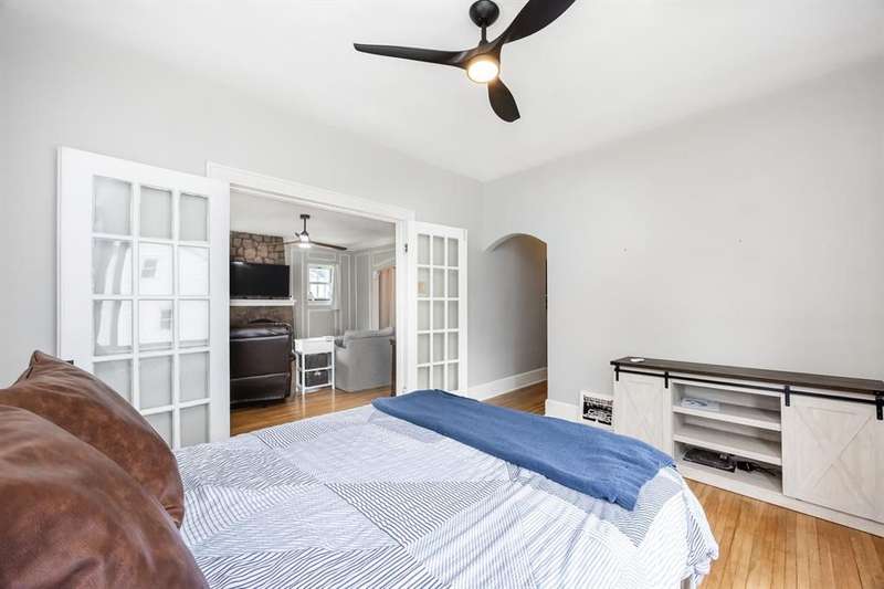 Nestled in a desirable East End neighborhood, this charming bungalow-style home blends classic appeal with modern updates. A welcoming covered front porch invites you inside, where gleaming hardwood floors, French doors, and arched doorways add warmth and character throughout. The cozy living room features a gas fireplace and built-in mantle, perfect for displaying your favorite books or keepsakes.The updated kitchen boasts stainless steel appliances, ample cabinet space, and flows seamlessly into a bright, inviting dining room-ideal for entertaining. Two comfortable bedrooms and a full bath offer just the right amount of space, while a one-car garage provides added convenience. Outside, enjoy the fenced backyard and covered patio, perfect for morning coffee or evening gatherings. Located just minutes from Scott Air Force Base and major highways, this home offers the perfect blend of charm, comfort, and convenience.Video recording on premises.