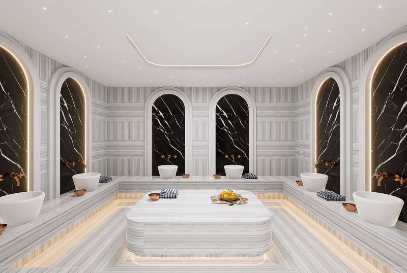 The properties with breathtaking sea views in this project feature an indoor and outdoor swimming pool, children’s playgrounds, a child playroom, a sauna, a steam room, a Turkish bath, a lobby, indoor and outdoor parking, a communal garden, and a tennis court.
