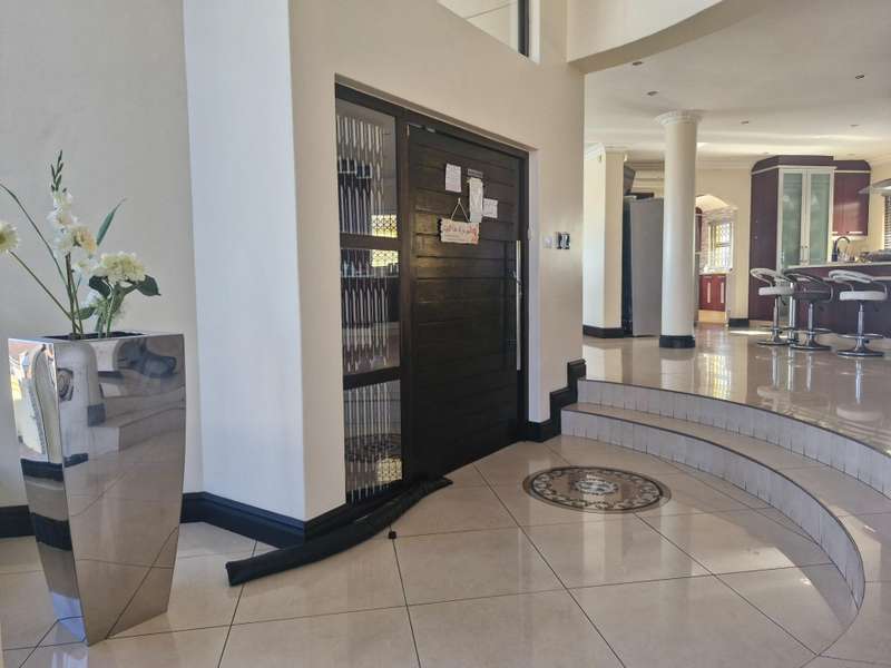 Sole and Exclusive Mandate Step into a world of refined elegance in this spectacular six-bedroom, seven-bathroom home nestled in the prestigious Stanger Manor ?Çô where luxury, comfort, and opportunity unite. From the moment you arrive, a serene Koi Pond at the entrance welcomes you, setting the tone for the elegance that lies within. A majestic, single-sided grand staircase framed by sparkling crystal chandeliers creates a breathtaking entrance that leaves a lasting impression. At the heart of the home lies a master chef-style kitchen, fully equipped with high-end finishes, ample counter space, and a massive scullery ?Çô ideal for entertaining or catering purposes. The home offers expansive living spaces including a formal sunken lounge perfect for hosting guests, and a separate TV room for relaxed family time. Step outdoors to a resort-style entertainment area featuring a sparkling swimming pool and an expansive yard ?Çô perfect for family gatherings, events, or simply soaking up the sun in privacy. The main bedroom is a luxurious retreat featuring a walk-in closet, a private dress-up room, and a spa-inspired en-suite bathroom that defines indulgence. Each of the five additional bedrooms is generously sized, with its own en-suite bathroom and private balcony ?Çô ensuring comfort, privacy, and style throughout. Bonus: B&B Potential With its en-suite bedrooms, multiple lounges, reception room, and ample parking space, this home offers incredible potential to operate as a boutique Bed & Breakfast. Its layout, location, and luxurious amenities make it an ideal investment for those looking to generate income while enjoying premium living. Additional features include: Dedicated study/home office Fully equipped laundry room Ample storage throughout JoJo tanks for water sustainability Secure and peaceful neighbourhood Close proximity to schools, shopping, and transport routes This home is truly a rare find ?Çô perfect for a large family, those who love to entertain, or visionary buyers looking to tap into the hospitality market with a ready-to-go B&B setup. Welcome to Stanger Manor - Where your dream home awaits. Contact us today to arrange a viewing!