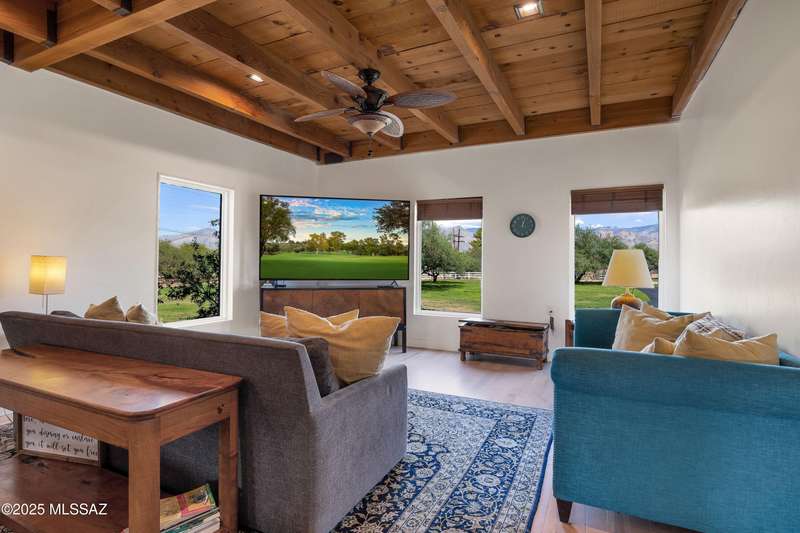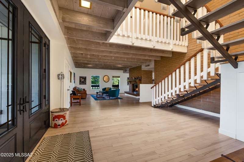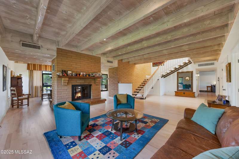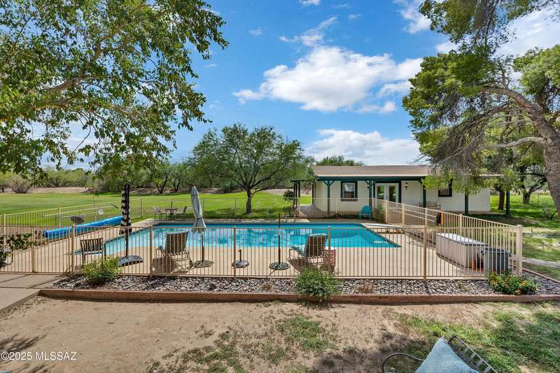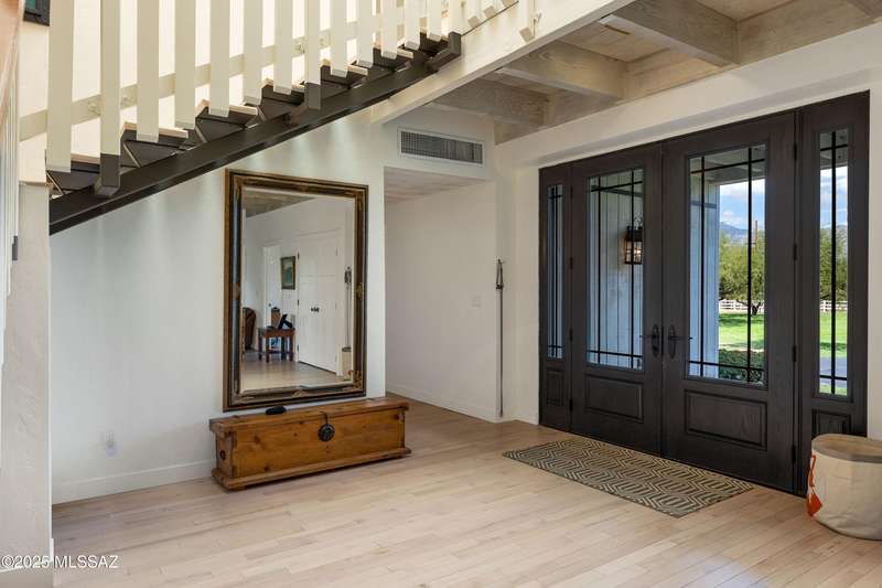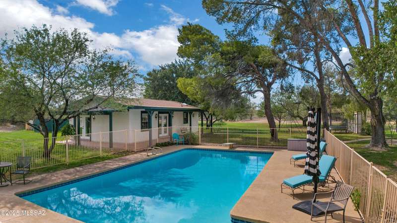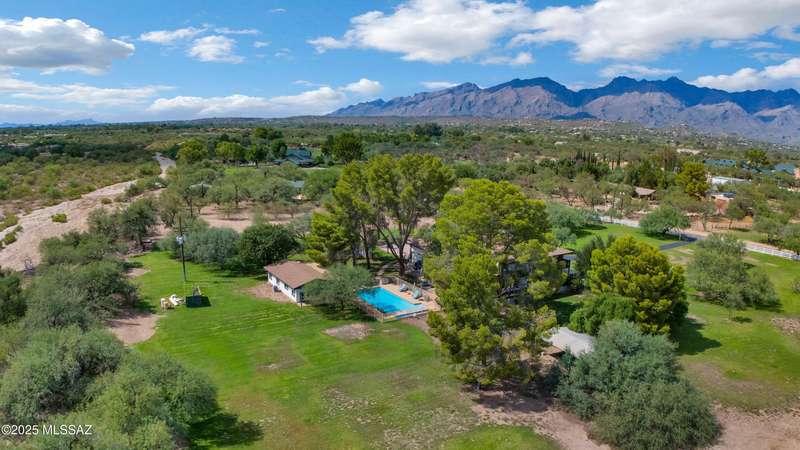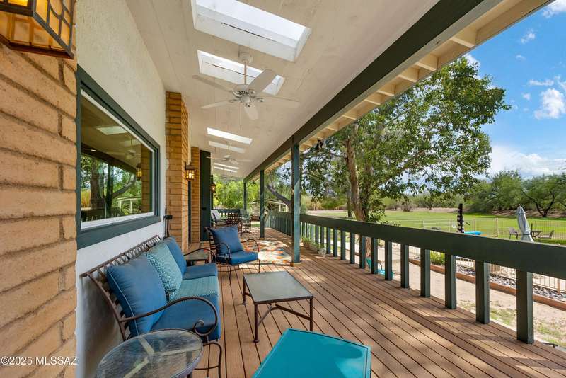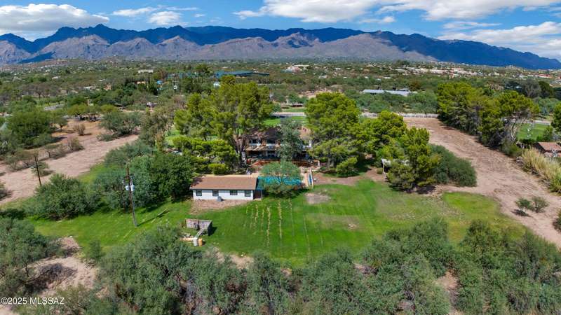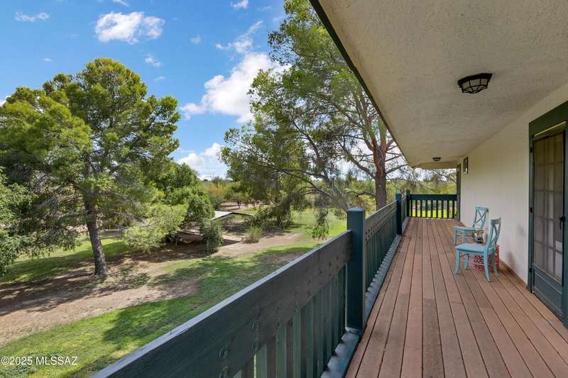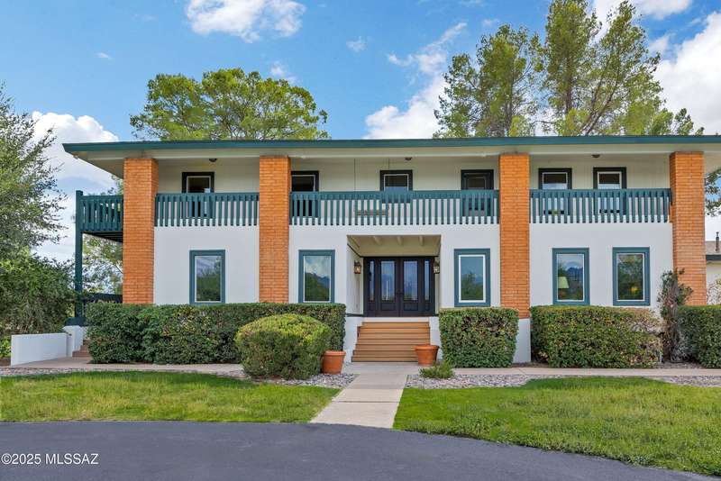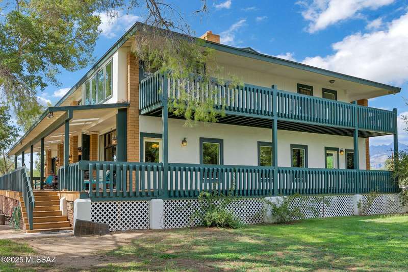 Amazing opportunity to own a truly unique/remodeled home w/guest house & pool in coveted Tanque Verde Country Estates. Arrive via a tree-lined Woodland Rd, down a long/circular driveway, to this warm but stately two story wrapped in porches with sweeping mountain views. The property spans 7.7 horse friendly acres w/private well, grandfathered irrigation rights, direct access to Tanque Verde wash, room for livestock, RV/ rec toys- all with no HOA. Main home offers 5954 sq ft w/a flowing floor plan, six bedrooms (one downstairs) & five bathrooms, high ceilings, maple wood floors, wood beamed ceilings, two double sided sump block fireplaces, immense cabinetry & storage, three car garage. Kitchen features granite countertops, a porcelain stone floor, butcher block island, stainless appliances