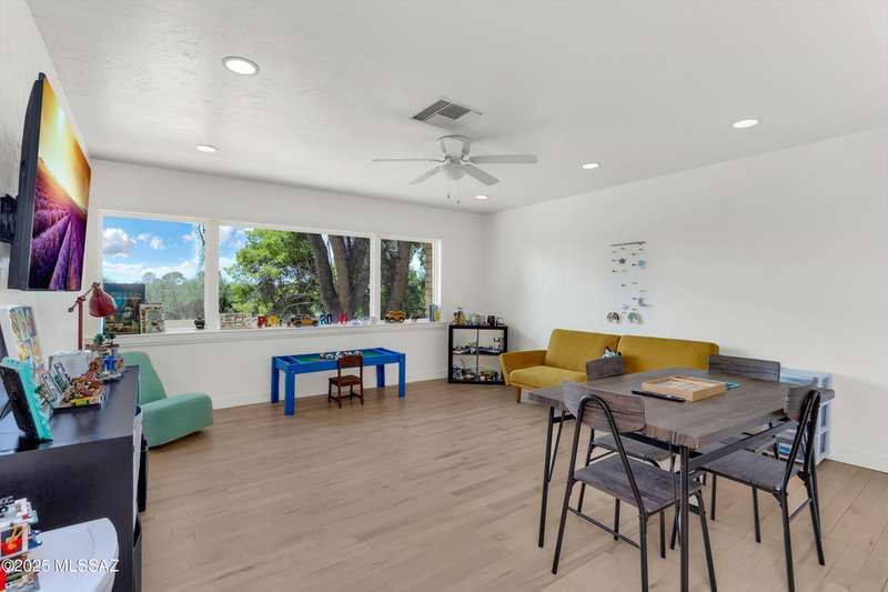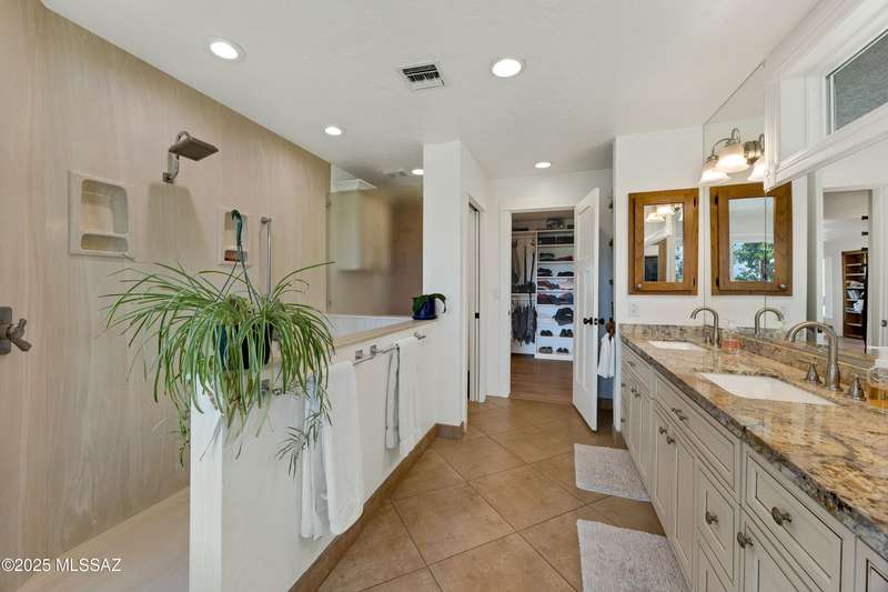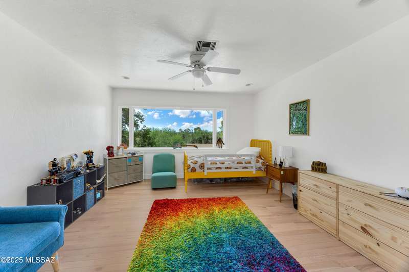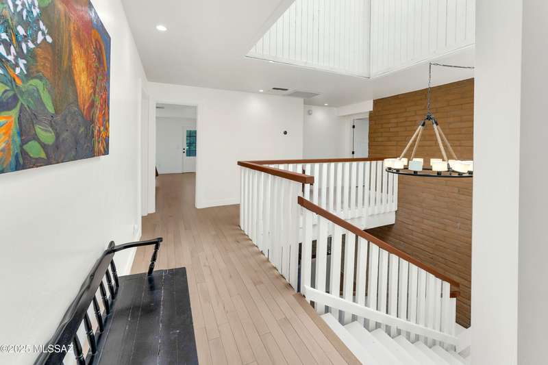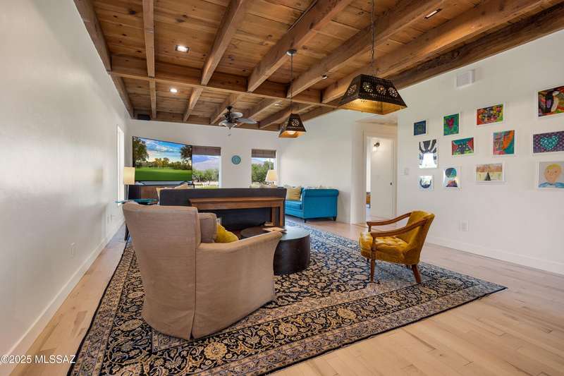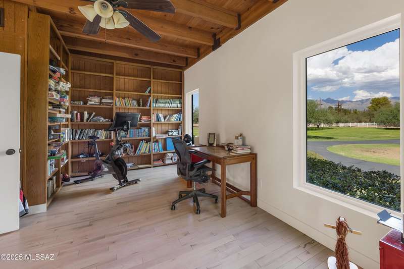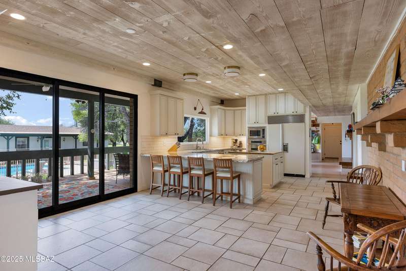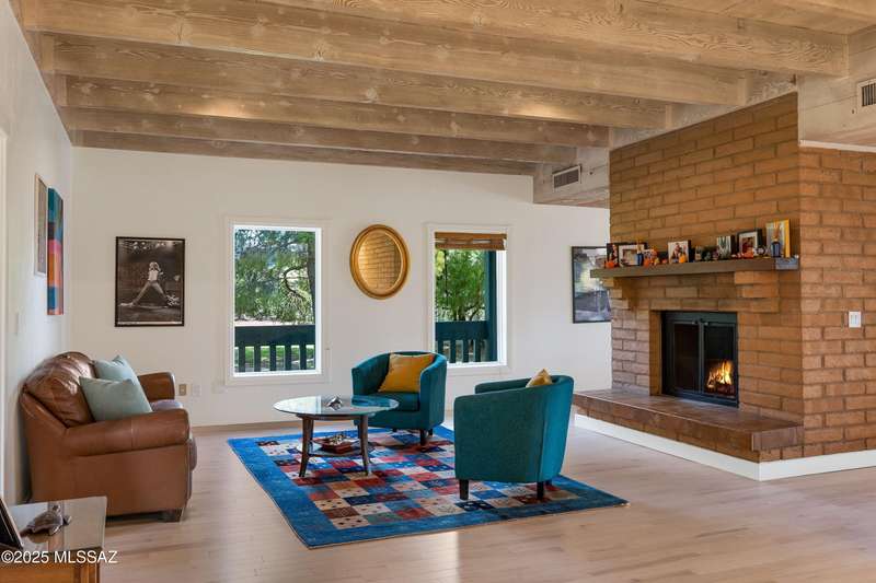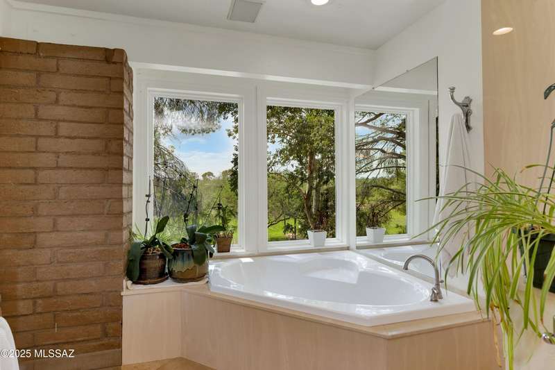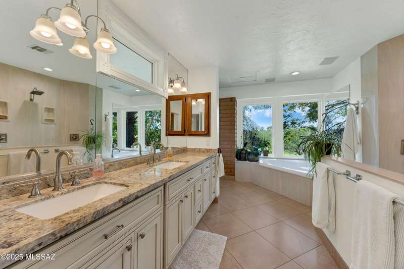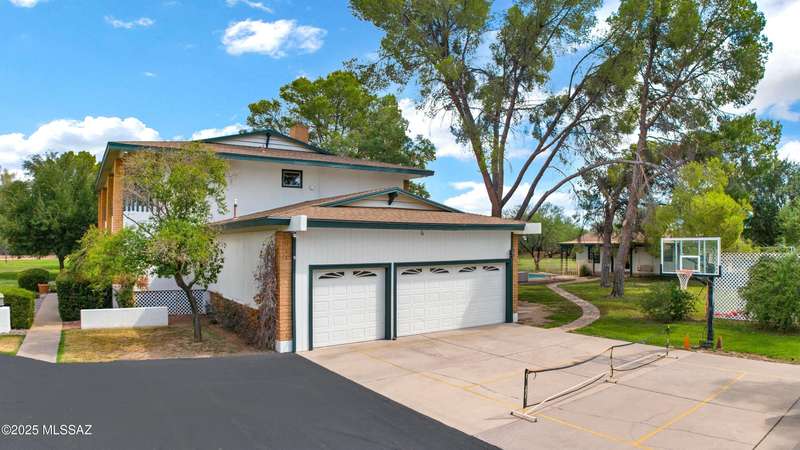 Amazing opportunity to own a truly unique/remodeled home w/guest house & pool in coveted Tanque Verde Country Estates. Arrive via a tree-lined Woodland Rd, down a long/circular driveway, to this warm but stately two story wrapped in porches with sweeping mountain views. The property spans 7.7 horse friendly acres w/private well, grandfathered irrigation rights, direct access to Tanque Verde wash, room for livestock, RV/ rec toys- all with no HOA. Main home offers 5954 sq ft w/a flowing floor plan, six bedrooms (one downstairs) & five bathrooms, high ceilings, maple wood floors, wood beamed ceilings, two double sided sump block fireplaces, immense cabinetry & storage, three car garage. Kitchen features granite countertops, a porcelain stone floor, butcher block island, stainless appliances