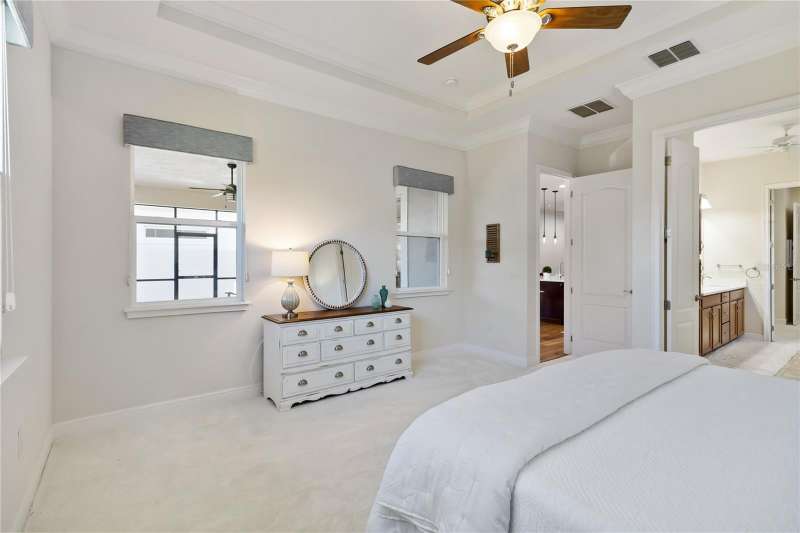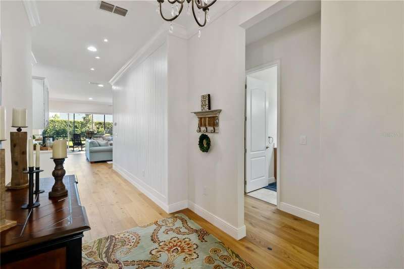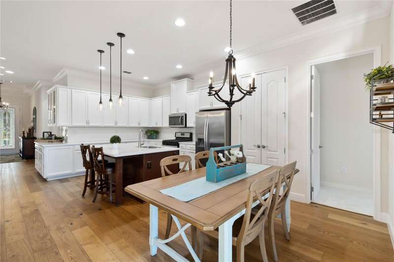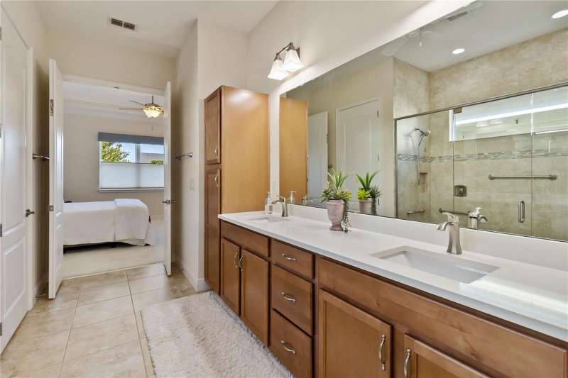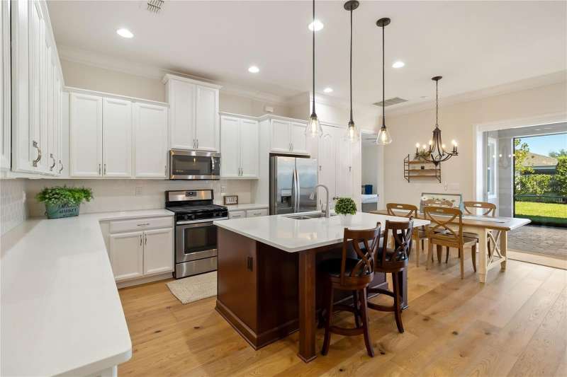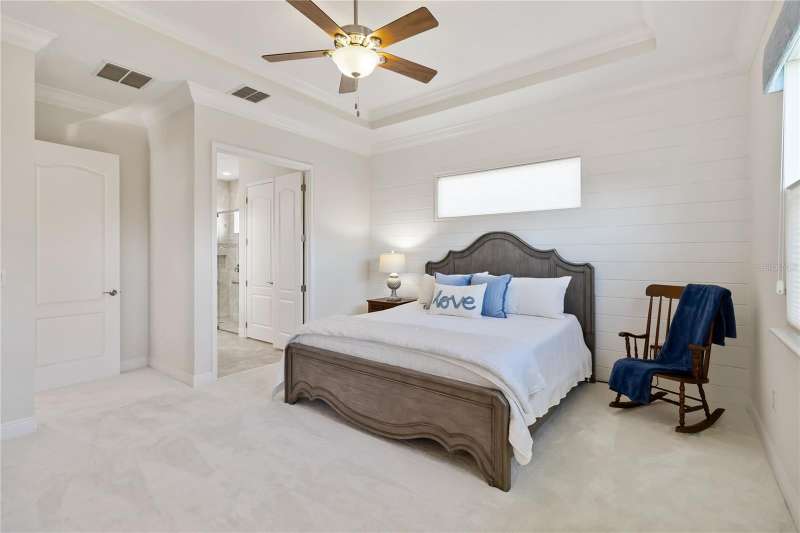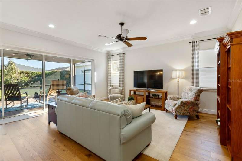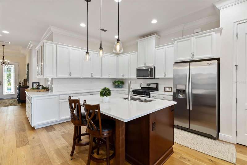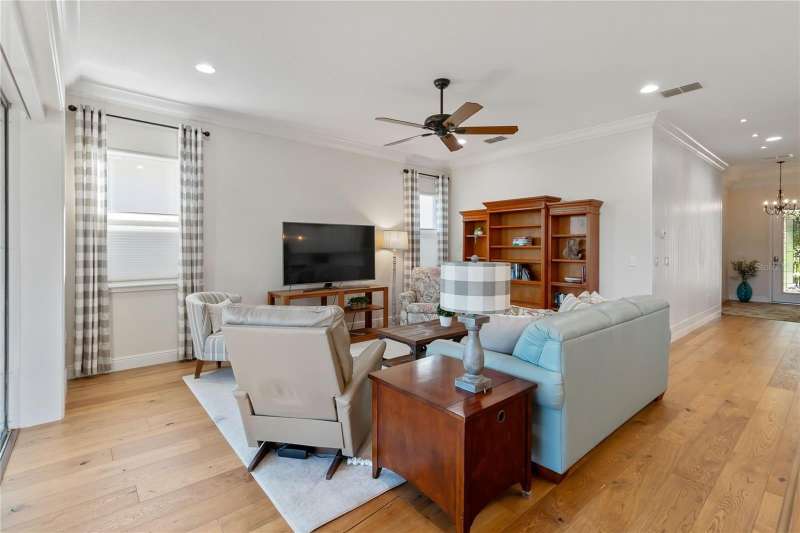 Immaculate and move-in ready, this stunning **3-bedroom, 2-bath Captiva floor plan** is located in the highly sought-after **Del Webb Twin Lakes 55+ active adult community**, just a short walk from the resort-style amenities. The inviting **foyer** features a custom glass door insert, elegant tray ceiling, and designer Immaculate like new 3 Bedroom 2 Bathrooms Captiva floor plan located in the well sought-after active Del Webb Twin Lakes 55+ community walking distance to the amenities. Foyer features custom glass door insert at front door, Custom tray ceiling and light. Whole house is professionally painted, beautiful hardwood flooring, Crown molding, Plantation Shutters & has great décor. Open and spacious Kitchen features upgraded light cabinets with crown molding, custom quartz countertops, pendant Lights, custom backsplash, some custom glassed in cabinet doors, large pantry. Living room ceiling fan and light, sliding glass doors with custom electric blinds lead to scenic screened Lanai, relax and enjoy the breeze with your professionally landscaped backyard. Master bedroom features plantation shutters, custom painted tray ceiling, Crown molding and French doors leading to Master bedroom bath and boasts a large walk-in tile shower with frameless glass doors, double shower heads, custom with built-in tile bench, quartz vanity and dual sinks. The 3rd bedroom features built-in cabinets and a desk that can convey the property. All closets have custom shelving to keep all your belongings nice and organized. Drop zone area with custom backsplash. Amenities include a Resort style pool and Lap Pool and 3rd pool on the carriage house side, 20,000 square foot Gorgeous Clubhouse, State of the art Fitness Center, Flex room, Tennis Courts, Putting Green, Walking Trails, Pickle Ball Court, Fishing, and Pontoon Boats and Jon boat to use on Live Oak Lake! The community has many active and socializing activities to keep you VERY busy!! All of this in a GREAT gated community located in Central Florida close to Lake Nona Medical City, Orlando, Orlando International Airport, Theme Parks, and Brevard Beaches! Do not delay making your appointment to view this home today.