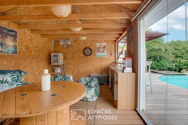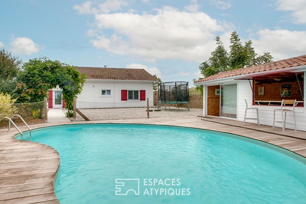 Outside, the house invites you to fully enjoy its setting: a 60 sqm terrace with summer kitchen, a pool house adjoining the swimming pool, as well as a bungalow and a storage box complete the services. A carport, a wood shed and an independent 50 sqm workshop also open up great development prospects.