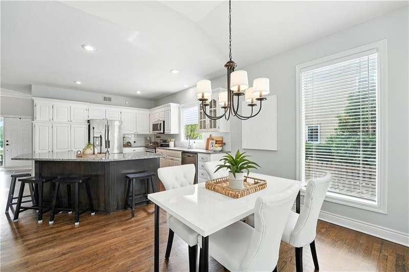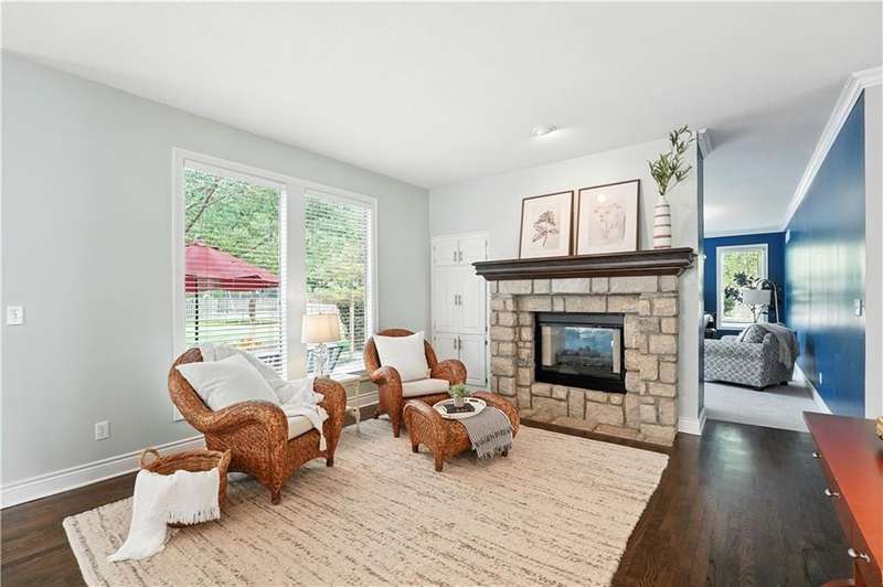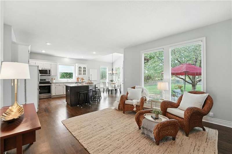 Welcome to this beautifully updated 2-Story home in the coveted Nottingham by the Green community! A sunlit, open entry welcomes you in, highlighting newly refinished hardwood floors, fresh carpet, and a seamless floor plan perfect for everyday living and entertaining alike. The main level features a formal dining room, chefs kitchen, inviting hearth room, and a spacious family room. The eat-in kitchen opens to a stunning paver patioideal for casual dinners, summer barbecues, or lively gatherings.Upstairs, retreat to the expansive primary suite, complemented by three additional bedrooms and two full baths. The finished lower level adds even more versatility with a rec room, built-in entertainment center, and ample storage.Nottingham by the Green offers an unmatched lifestyle with resort-style amenities including a pool with water slide and diving board, tennis and pickleball courts, and a scenic golf club setting. All this plus easy access to shopping, dining, and award-winning Olathe schools!