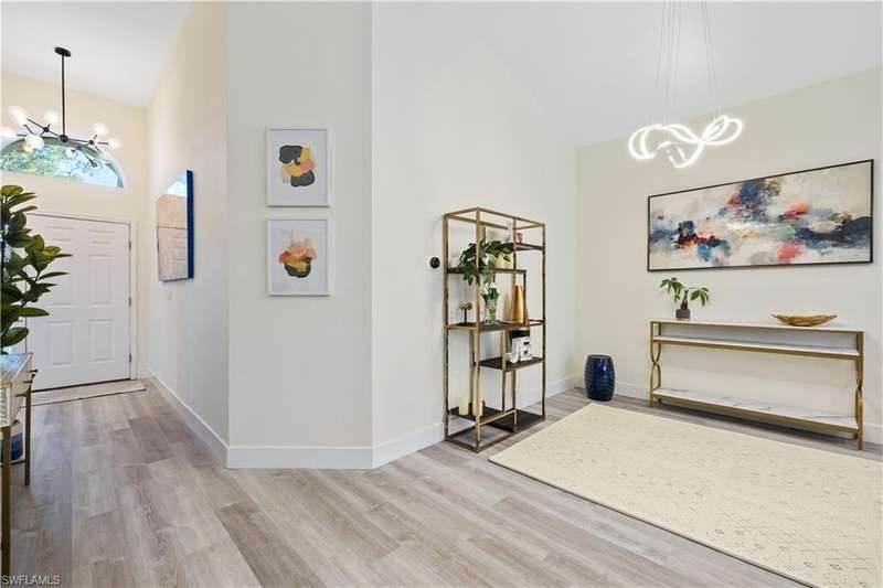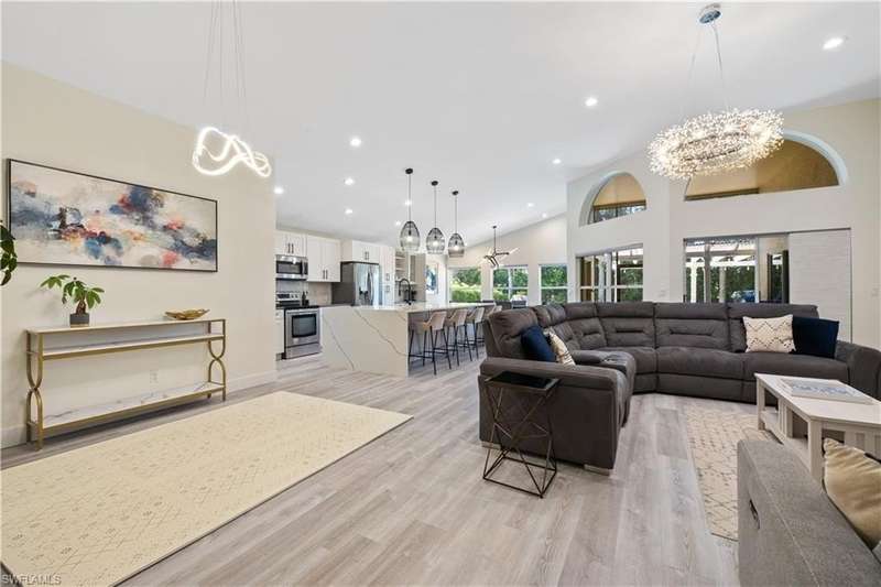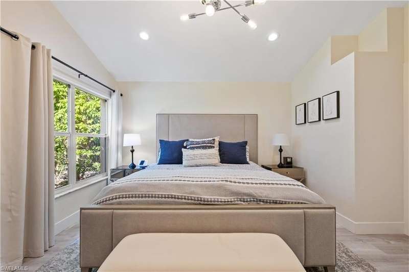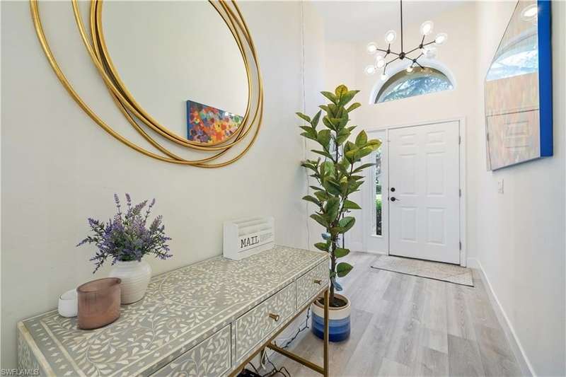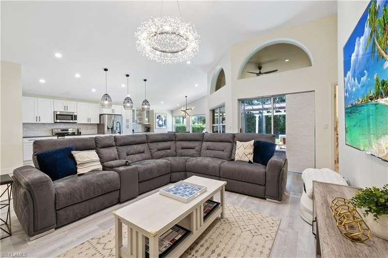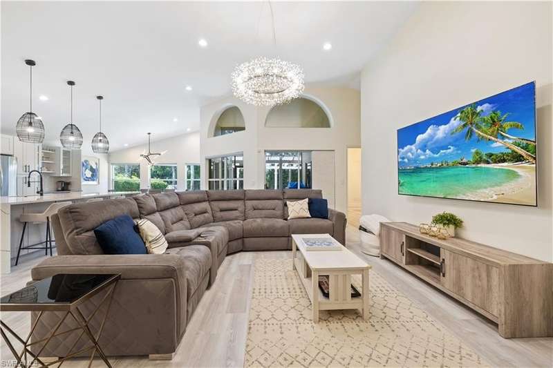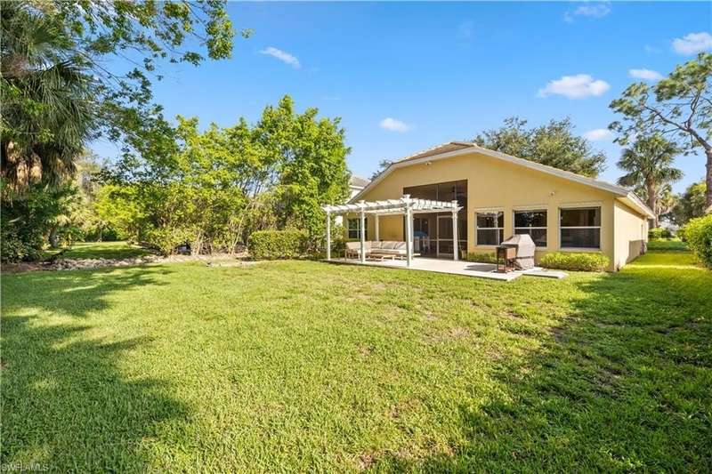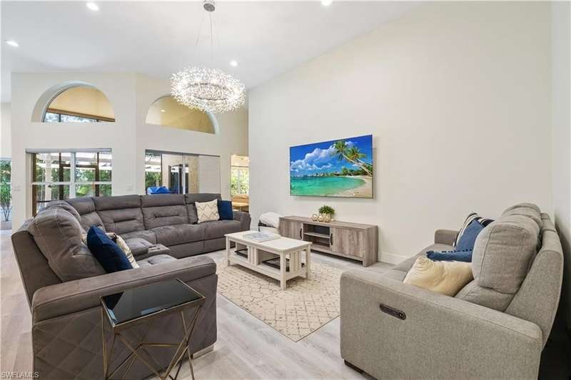 Located in the highly desirable are of Autumn woods and nestled on a tranquil street, this meticulously remodeled 4-bedroom, 2-bathroom house is designed to cater to your every need. Available furnished, unfurnished or partially furnished, this home offers a perfect blend of comfort and style. The main focus is the open concept living spacious with volume ceilings, completely renovated kitchen, with spacious island, fabulous dining area, and comfortable living area. The primary bedroom with ensuite bathroom features a walk-in shower and soaking tub, walk-in closet with custom built-ins. New lighting throughout home, laundry room, and guest suites with walk-in closets. Guest bathroom features a shower/tub combo. Step outside to your screened lanai and outdoor patio, perfect for entertaining guests or enjoying quiet evenings under the stars. The private yard offers a peaceful escape, ideal for gardening or family playtime. Living in Autumn Woods means enjoying an exceptional lifestyle. This well-maintained community features a welcoming clubhouse complete with a fitness center, community pool and spa, lighted tennis and basketball courts, a playground, and miles of scenic walking paths surrounded by over 25 acres of nature preserves and sparkling lakes. With two gated entrances and 24-hour security, residents enjoy both comfort and peace of mind. Everyone will appreciate the proximity to Mercato, Waterside Shops, and downtown Naples. It can be rented fully furnished for $6,000 a month and less for unfurnished.