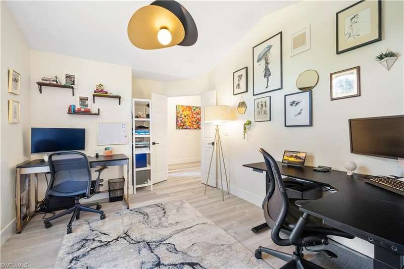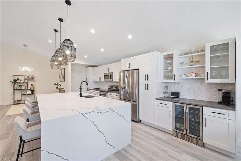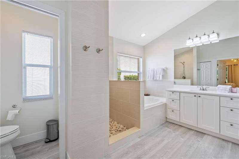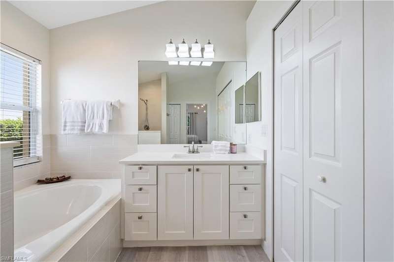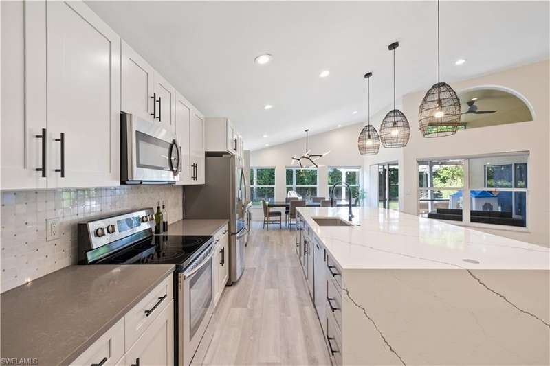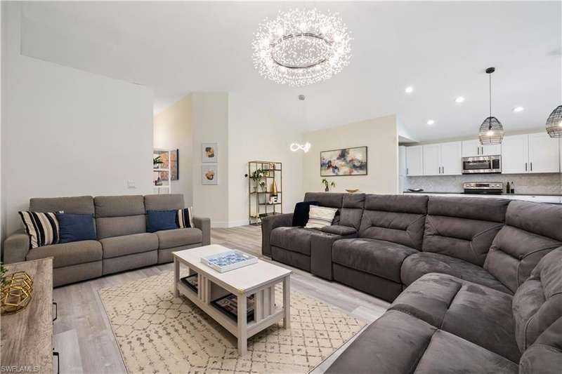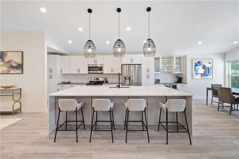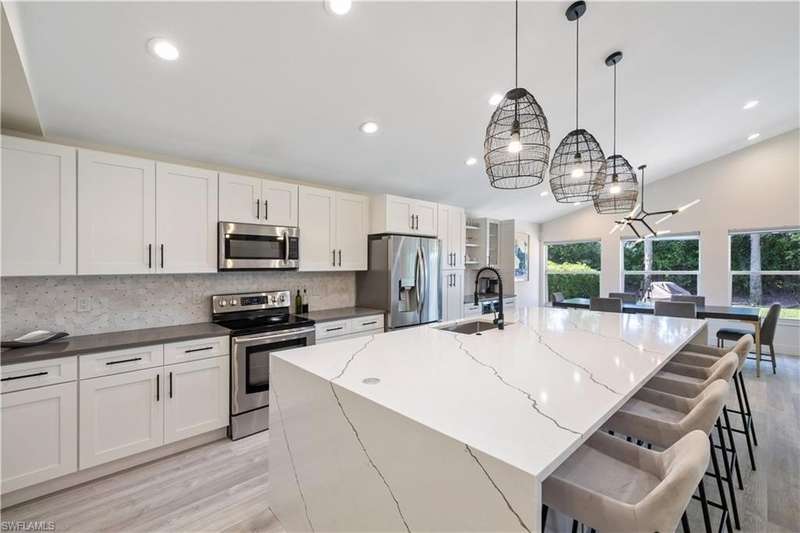 Located in the highly desirable are of Autumn woods and nestled on a tranquil street, this meticulously remodeled 4-bedroom, 2-bathroom house is designed to cater to your every need. Available furnished, unfurnished or partially furnished, this home offers a perfect blend of comfort and style. The main focus is the open concept living spacious with volume ceilings, completely renovated kitchen, with spacious island, fabulous dining area, and comfortable living area. The primary bedroom with ensuite bathroom features a walk-in shower and soaking tub, walk-in closet with custom built-ins. New lighting throughout home, laundry room, and guest suites with walk-in closets. Guest bathroom features a shower/tub combo. Step outside to your screened lanai and outdoor patio, perfect for entertaining guests or enjoying quiet evenings under the stars. The private yard offers a peaceful escape, ideal for gardening or family playtime. Living in Autumn Woods means enjoying an exceptional lifestyle. This well-maintained community features a welcoming clubhouse complete with a fitness center, community pool and spa, lighted tennis and basketball courts, a playground, and miles of scenic walking paths surrounded by over 25 acres of nature preserves and sparkling lakes. With two gated entrances and 24-hour security, residents enjoy both comfort and peace of mind. Everyone will appreciate the proximity to Mercato, Waterside Shops, and downtown Naples. It can be rented fully furnished for $6,000 a month and less for unfurnished.