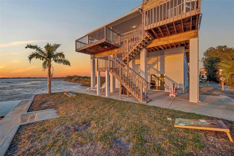 Some places bring you peace the moment you arrive... this one surrounds you with it. Welcome to 2417 Sunset Vista, a hidden waterfront retreat where every day feels like you're living on vacation. Lovingly known as the "Optimystical Vista" here you will find yourself tucked away on a quiet peninsula, immersed in 270-degree sweeping ocean views, with direct access to Florida's coastal lifestyle. Ocean breezes flow across the deck; the fresh salt air like medicine for the soul. Playful dolphins, grazing manatees and abundant wildlife put on shows daily. Once you're here, you'll never want to leave. This property is being offered fully furnished and turn key - the perfect short-term rental. Tastefully decorated, packed with thoughtful amenities, there’s truly nothing to do except step into this income-producing potential. Current nightly rent averages $475/night on VRBO with many repeat renters and 100% 5-Star Reviews. Every room is light and airy, each with it's own unique water view. The owner’s suite is a retreat of privacy, functionality and comfort. Perched at the top of the tri-level home, the penthouse bedroom/bathroom suite offers 360° panoramic views. Step out the sliding doors to your private balcony, perfect for sipping your morning coffee or winding down with a glass of evening wine. Mid-level offers two additional bedrooms and bathrooms, a fully stocked kitchen and comfortable living space. A solid wooden deck wraps around the house. The interior elevator is quiet and convenient, offering ease of access across all three stories. The ground level offers versatile entertainment space, ideal for unwinding after a long day’s work. The bar area features a custom pass-through with a lift window that opens and closes at the touch of a button. Additional space behind for parking cars, storing kayaks and fishing poles, and overhead attic space means you’ll never have trouble finding a place to store your toys! As the day transitions to night, and the sun sets on the horizon, the sky erupts into a vibrant display of colors; a breathtaking display of hues. With not a single other building in sight, surrounded by nothing but nature itself, as if you are on your own private island, it feels as a gift the world is giving to you alone. Historic Aripeka, first settled in 1859, is known for it’s incredible views, fabulous fishing and friendly neighbors. People who live here have often been here for decades, with properties being handed down from generation to generation. Electronic storm shutters adorn every window and the roof was reinforced in 2017, offering extensive security against weather concerns. Even recent severe storms only had nominal impact on the property, not affecting the living areas whatsoever. A new HVAC system was installed in 2017 and is maintained regularly. A new water heater added in 2023 and new electrical panel in 2024. Opportunity abounds - whether you are seeking to add to your investment portfolio, looking for a peaceful place to retire or simply want to live where ocean meets sky - this property is for you! Ask us about a chance for a FREE 2-Night STAY when you view the home during the month May 2025!