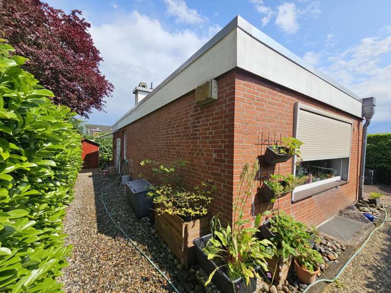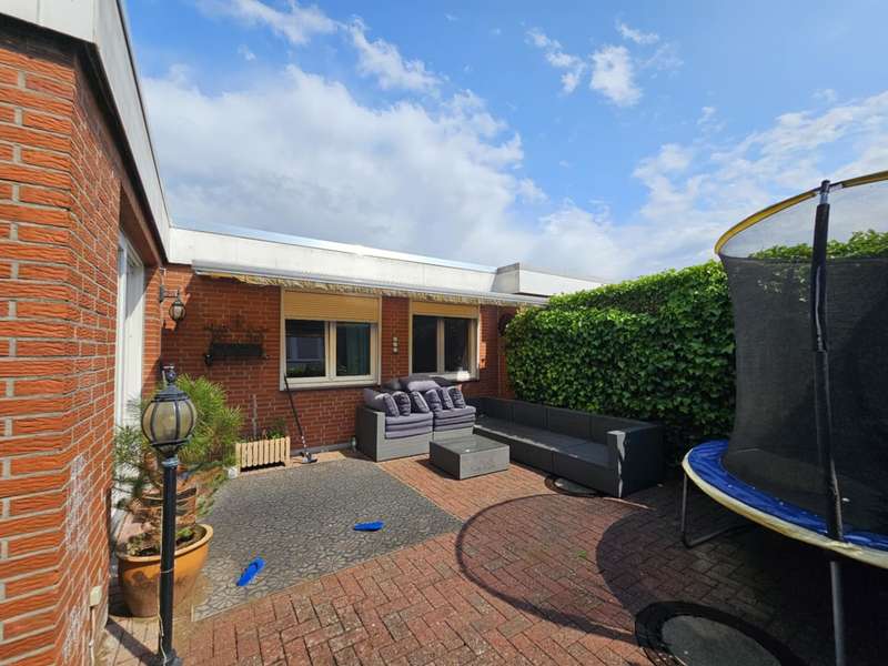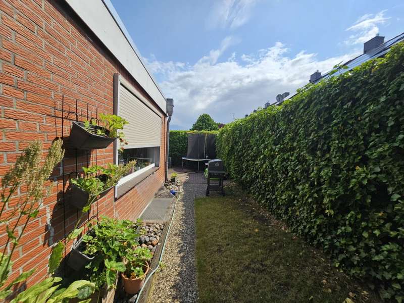 This well-kept semi-detached house, built in 1980, offers a comfortable room layout with a total of four rooms on approx. 103.5 m² of living space. The house stands on a half co-ownership share of a plot of land measuring approx. 689 m², which corresponds to an own plot share of approx. 344.5 m². This property has been continuously maintained and modernized. As you enter the house, you find yourself in the entrance area on the first floor, with the kitchen to the right and the guest WC with shower to the left. Next you enter the spacious and light-flooded living room. A strip parquet floor ensures a pleasant feeling of living here, while a functional fireplace creates additional well-being and coziness. The adjoining terrace is equipped with an awning and invites you to spend relaxing hours outdoors. A hallway adjoining the living room leads to all bedrooms - so far there are 2 children's bedrooms and 1 master bedroom, as well as the bathroom with bathtub and a storage room at the end of the hallway. A solid staircase leads from the hallway to the basement. Here you have approx. 56 m² of usable space for your hobbies, guests and storage. A laundry room and the boiler room complete the offer. The as-new Viessmann gas heating system, installed in July 2023, as well as the extensive roof renovation in April 2023, are part of the latest modernizations that make the house energy-efficient and weatherproof. All windows were replaced in 2021, with the exception of the living room window, and are fitted with external roller shutters. The front door was also renewed in 2021 and offers additional security. A duplex garage offers space for your car and rounds off the space on offer. Together with its direct neighbor, the property is part of a condominium that was built as such at the time. There is a declaration of division that regulates the special and common property. There are no provisions for the payment of house fees, owners' meetings or similar. Only the garage courtyard in front of the house is managed by an administrator. A small monthly fee is charged for the management of the garage courtyard (for electricity and insurance as well as maintenance reserves). The property has been let since September 2020 and generates a monthly basic rent of € 1,200. The tenancy has not yet been terminated, which also makes this semi-detached house attractive as a potential investment property. This semi-detached house is ideal for families looking for a well-kept and well-equipped property in a quiet environment. The combination of well-kept architecture, practical room solutions and the quiet location offers you and your family a comfortable home. However, the bungalow style - "living on one level" - also makes this property attractive for older couples, especially the low-maintenance garden area with only a small lawn. Contact us for more information or to arrange a viewing - we look forward to meeting you in person!