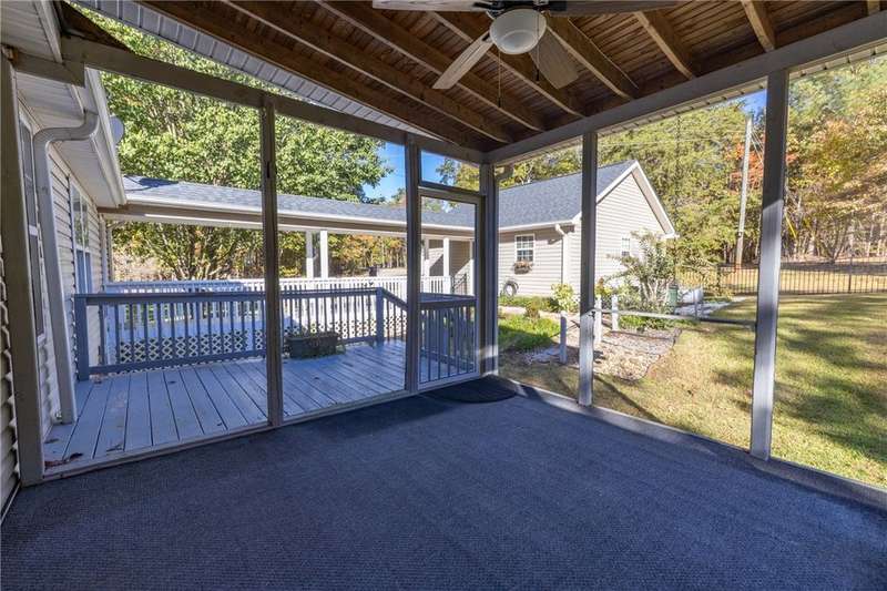 This is the home you have been waiting for in Chickasaw Point. One level, on a corner lot with over half an acre and yes, the backyard is fenced so bring your pet or plan your garden! Home is freshly painted with new appliances and gorgeous hardwood floors throughout. You will enjoy the gas fireplace for the cool fall evenings and the open floor plan for entertaining your family and friends. Perfect kitchen with center island and cabinet pantry gives you ample storage space. Granite countertops, and decorator lighting. Walk into the bonus room where you can decide if this will be your media room, formal dining or office, perfect no matter which you choose. Primary bedroom has walk in shower, double vanity and nice walk-in closet. Two additional bedrooms with nice guest bathroom for your family or friends to enjoy. Laundry closet with shelves in hallway. Check out the sweet screened in porch with a separate grilling deck which overlooks the gorgeous outdoor space behind the home. There is plenty of wildlife for you to enjoy. Very peaceful and you will love the time you spend here. Notice the covered walkway to the detached two car garage. Everything you need is here. All of this plus Chickasaw Point offers loads of activities. How about a challenging 18-hole golf course? If golf is not your thing grab your cart and go to lake area with private beach, pavilion, boat ramp and courtesy boat dock. Bingo nights, card clubs, or how about pickleball or tennis, walking trails, Olympic sized pool, marina and of course the Overlook where you can have an amazing meal and beverage. Lake Hartwell gated community close to the I85 freeway between Atlanta and Greenville, makes this perfect. Don't wait come and see this home today.