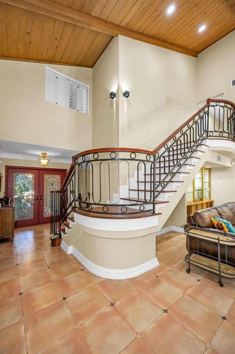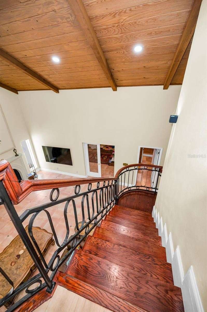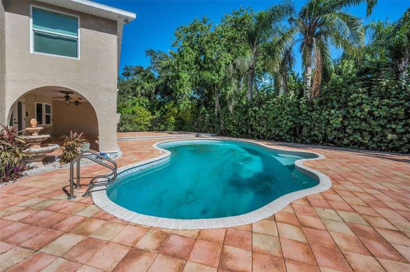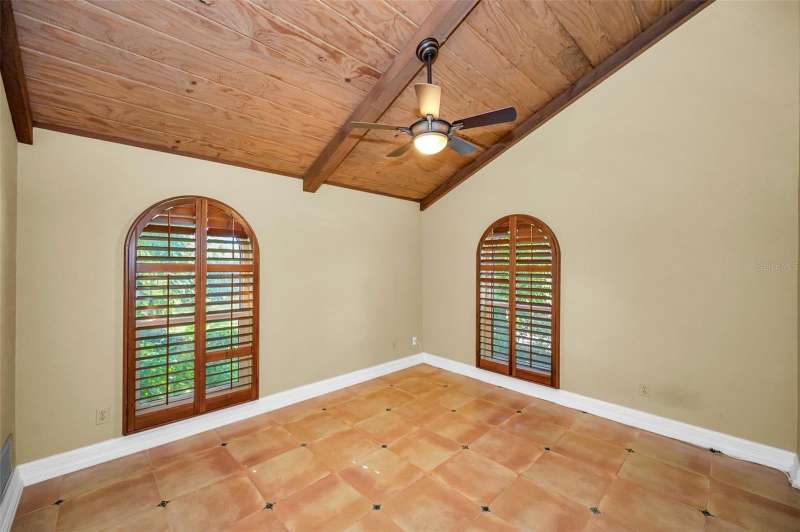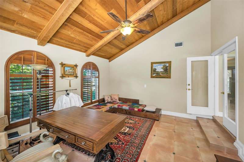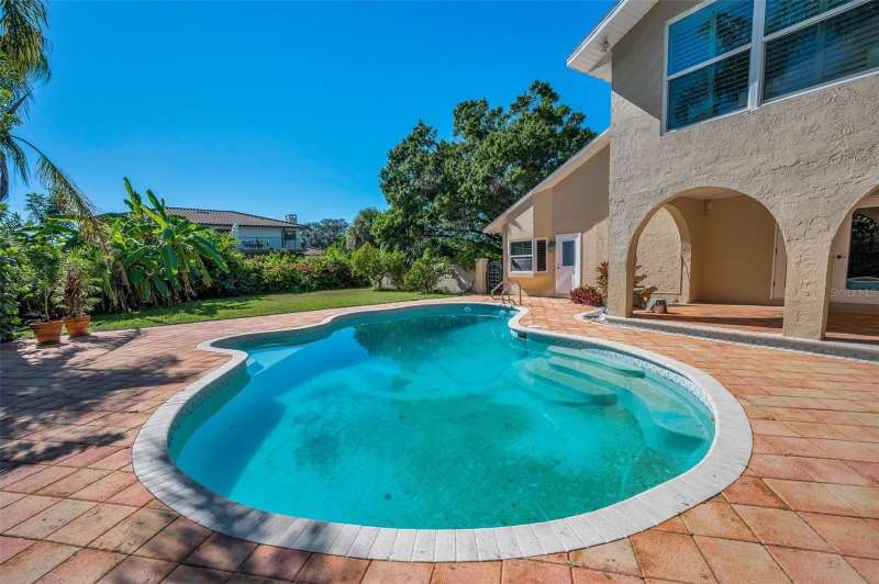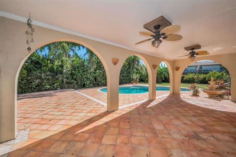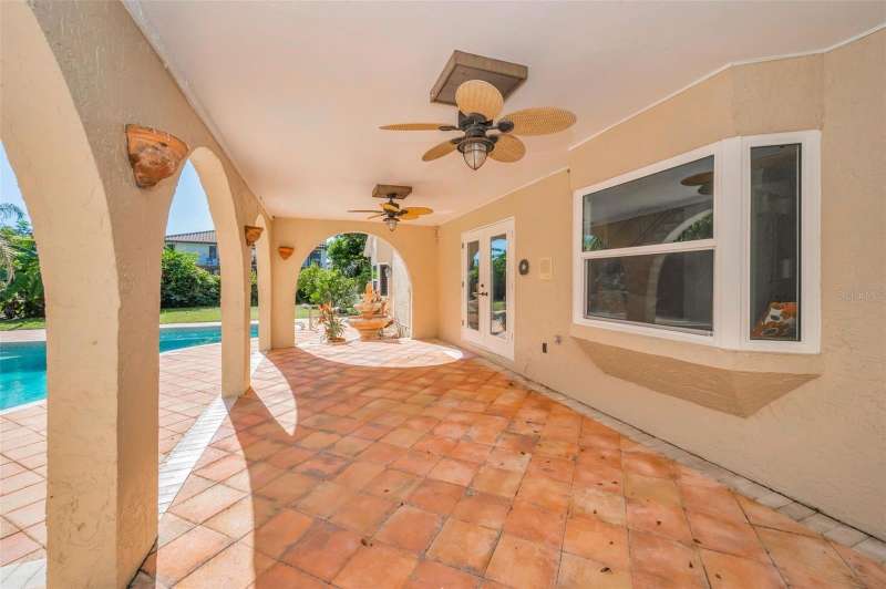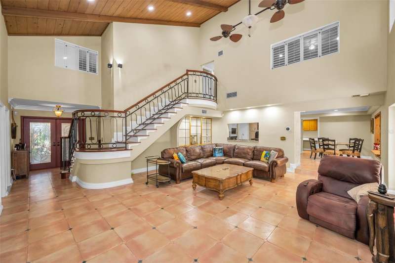 Timeless Mediterranean Revival Estate with Resort-Style Pool Oasis on Over Half an Acre in Prestigious Carlton Estates. Step into a world of enduring elegance with this captivating two-story Mediterranean style pool home, where architectural splendor meets elevated leisure and family-friendly luxury. Nestled on more than half an acre in one of Pinellas County’s most sought-after enclaves, this exceptional residence offers over 3,800 square feet of exquisitely designed living space. Inside, authentic character abounds, from rich Saltillo tile floors and arched doorways to bay windows, wrought iron railings, and soaring beamed ceilings that crown the interiors with timeless charm. A brand-new roof and updated windows and doors throughout ensure peace of mind and modern comfort. From the moment you enter, bold Tuscan-style tile flooring sets a tone of European permanence. The main level unfolds with expansive, interconnected living spaces, including a formal living and dining room that exudes warmth and sophistication—perfect for elegant entertaining or intimate evenings. At the heart of the home lies a grand, light-filled family room, where two-story vaulted ceilings and exposed wood beams evoke the rustic romance of a Spanish mission. Anchoring the space is a striking wood-burning fireplace, casting a cozy glow across gatherings large or small. The adjacent chef’s kitchen is a seamless extension of the living space, featuring a central island and open sightlines that keep the cook connected to the conversation. A sunlit breakfast nook with a bay window offers the ideal setting for casual meals and morning coffee with a view. Thoughtfully designed for flexibility, the main floor also includes a secluded office retreat with a beamed ceiling and a generously sized bedroom with an adjacent full bath—perfect for guests, multigenerational living, or a private sanctuary. A sweeping staircase of wood and wrought iron leads to the upper level, where three generously sized bedrooms and a sunlit, multi-purpose bonus room span the second floor. The expansive primary suite is a true retreat, complete with a dramatic stone fireplace and a private veranda for quiet moments under the stars. Outdoors, the Mediterranean lifestyle comes to life. A sprawling covered lanai with paver flooring and elegant arched breezeways opens to a park-like backyard, where mature landscaping surrounds a large, sparkling inground pool. Whether hosting alfresco soirées or enjoying tranquil afternoons in the sun, this outdoor oasis is designed for seamless indoor-outdoor living. This is more than a home, it’s a statement of style, serenity, and sophistication. With four bedrooms, 4 baths, a resort-style backyard & pool, and over half an acre in one of Pinellas County’s finest neighborhoods, this home checks every box. Don’t miss your chance to experience the elegance and ease of Carlton Estates living! Experience the European charm and refined design for yourself.