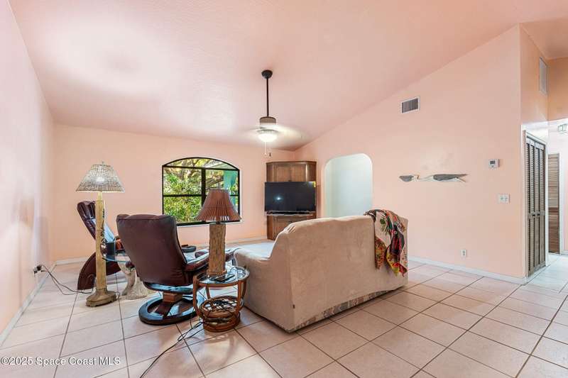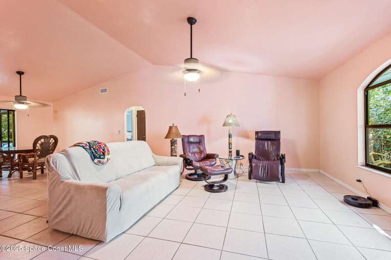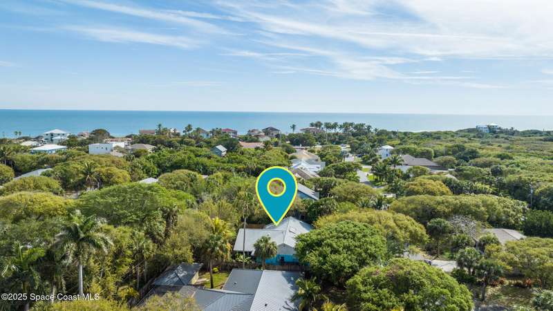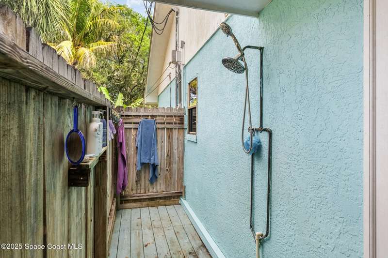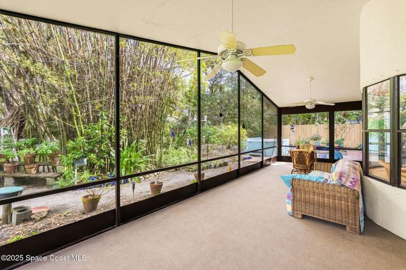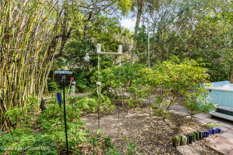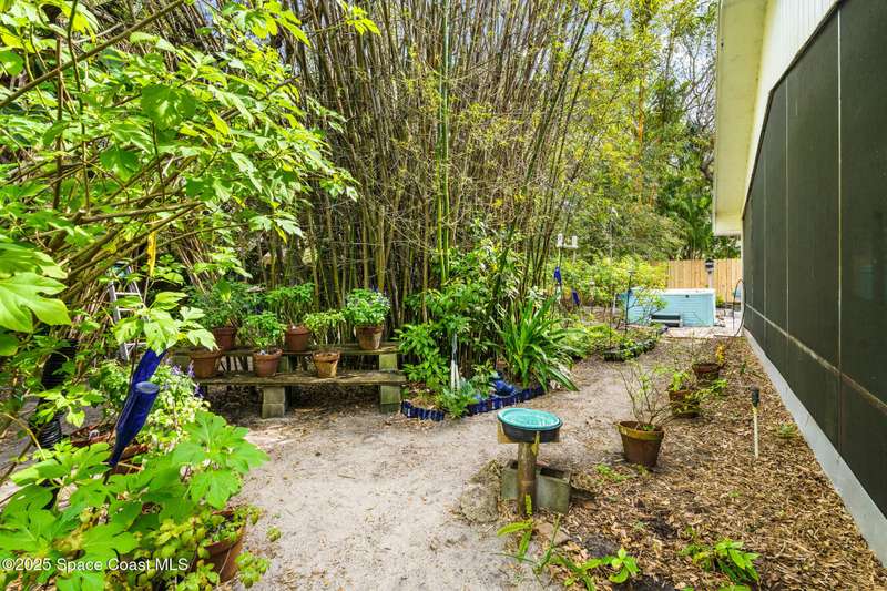 Wildlife lover's dream! Wake up to the sounds of nature and watch the wildlife flutter by from your oversized screened porch-it's like having the Audubon Society in your backyard. Native plants, butterfly gardens, and fruit trees like mango, coconut, Barbados cherry, and banana create a private oasis buzzing with birds, bees, & butterflies. Sustainable living is effortless with a new 80-gallon solar water heater, roof (11/23), AC (10/23), and a whole-home water filtration and softener system. Enjoy gas cooking, an indoor laundry closet, and energy-efficient features that keep your bills low. The privacy-fenced yard includes a spacious outdoor shower, hot tub, and compost systemperfect for off-grid vibes with modern comfort.Just a short walk to your deeded beach and river access, where sunrises light up the ocean and sunsets glow over the Indian River. The community offers a boat launch, fishing pier, playground, and picnic tables for all your outdoor adventure
