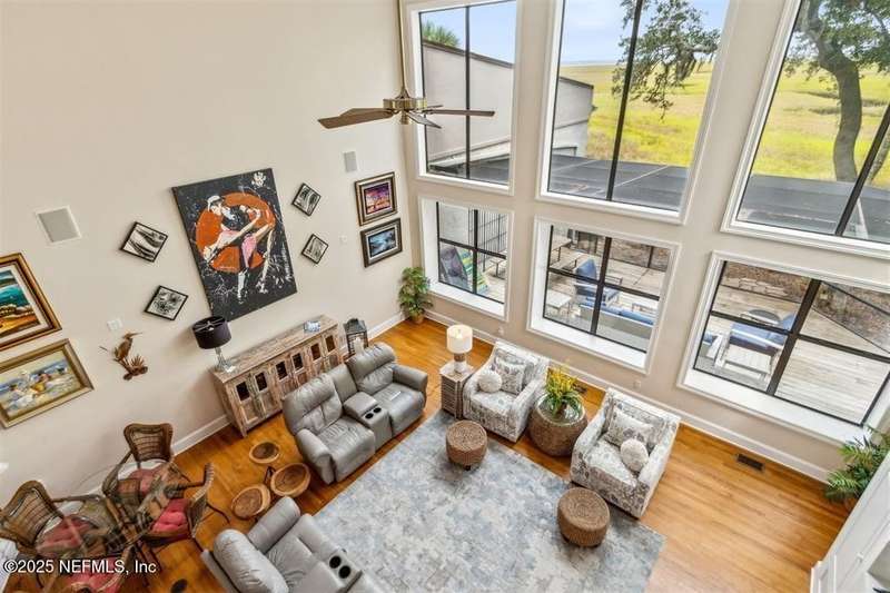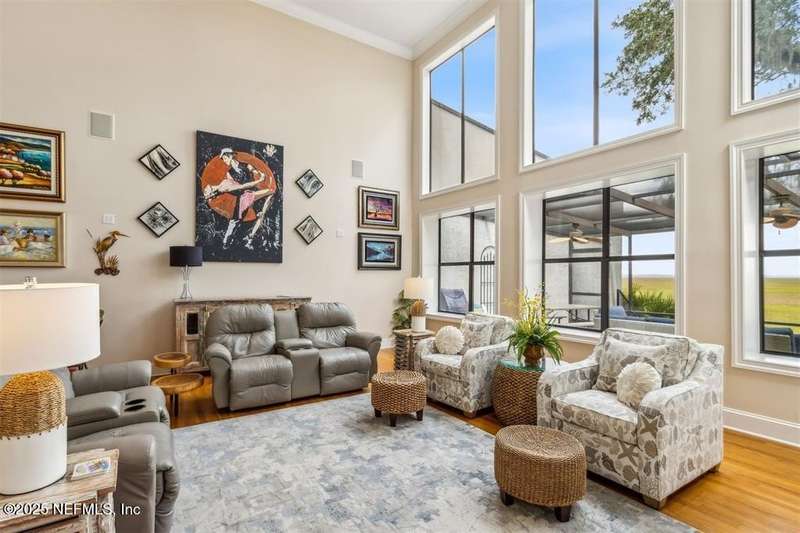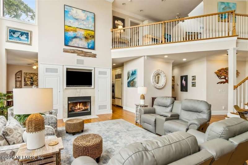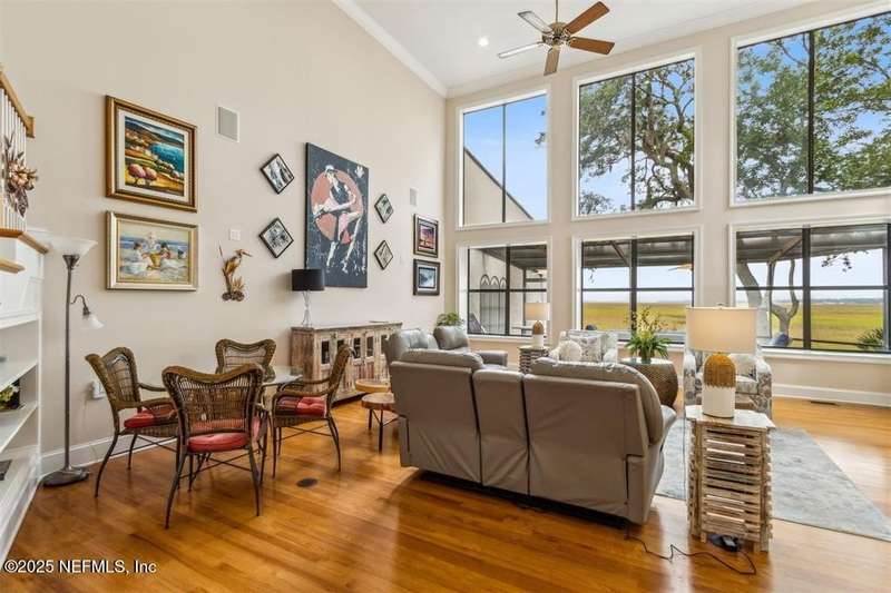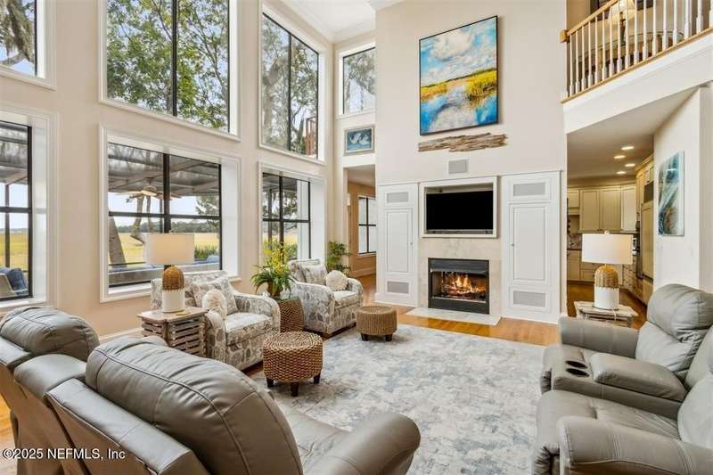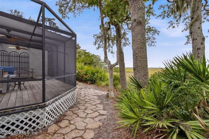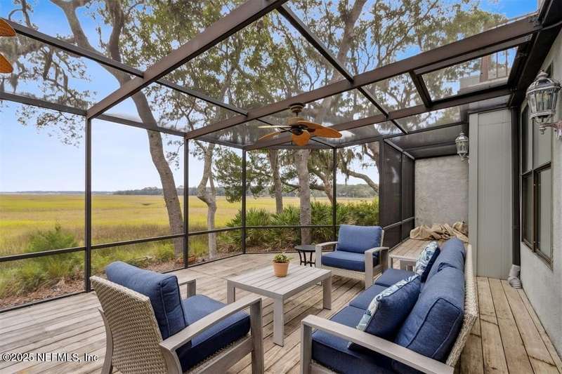 MARSH FRONT MAGIC! Amelia Island Plantation, marsh front villa welcomes you with a tranquil, oak-lined path that leads to your front door. Step inside to show-stopping panoramic marsh views with dramatic floor-to-ceiling, two-story windows that flood the home with natural light. The open staircase and vaulted ceilings add to the airy feel, while wood and tile flooring flow seamlessly throughout. The kitchen is positioned to take full advantage of the views for the chef of the house and features granite countertops, an island filled with storage, and a gas cooktop. Two guest rooms are downstairs for easy entertaining while upstairs, a loft with custom built-ins makes the ideal office and second living room. The large primary suite shines with marsh views, a private balcony, two walk-in closets, a bathroom with double vanities, soaking tub, walk-in shower, and linen closet. The expansive screened outdoor living space offers the ideal setting to relax and enjoy the beauty of the marsh.