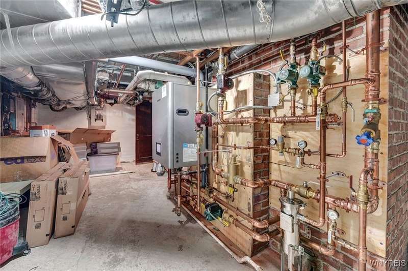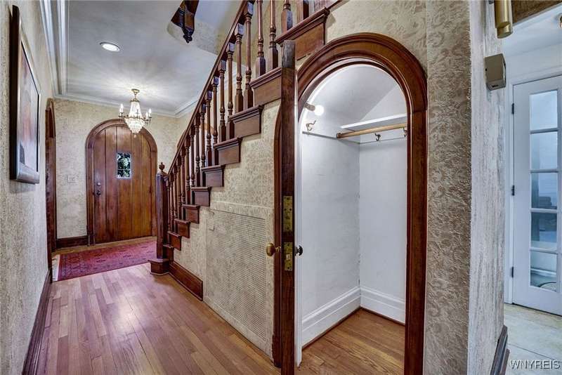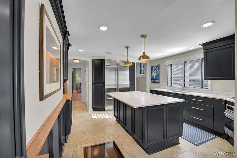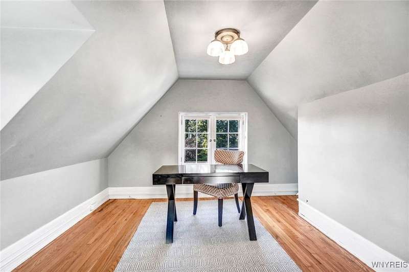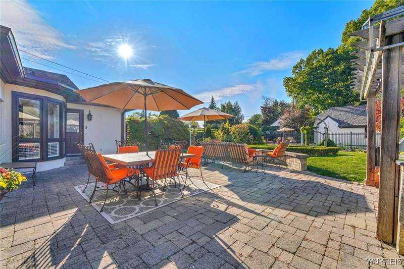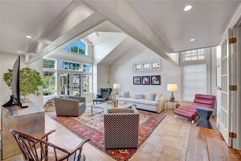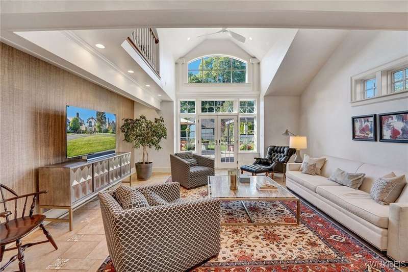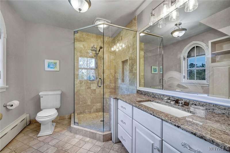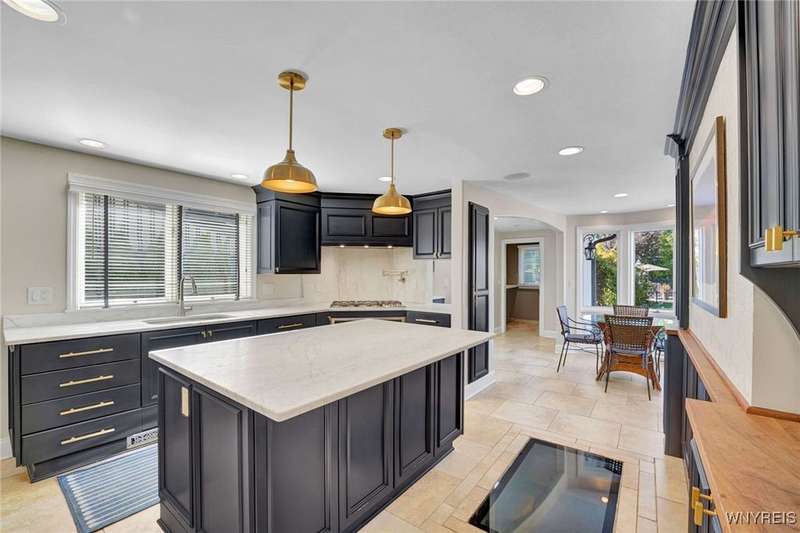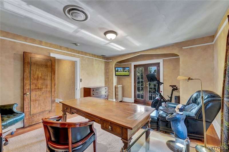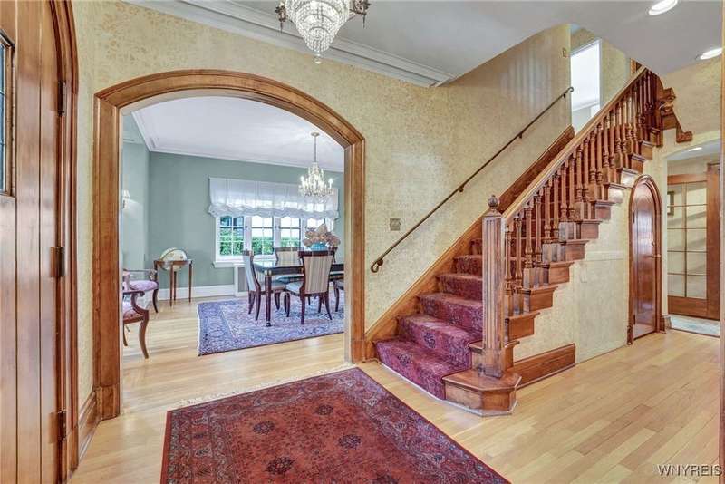 Timeless Elegance Meets Modern Luxury Across from Delaware Park at 81 Nottingham Terrace.Discover refined living in this stunning 4 bedroom, 3.5 bath Tudor estate, perfectly positioned across from Olmsted's historic Delaware Park. A seamless blend of classic architecture and contemporary upgrades, this home offers exceptional comfort and elegant style.The fully remodeled chef's kitchen is a showpiece, featuring premium appliances including a Sub-Zero refrigerator, Wolf range, Cove dishwasher, and a built-in coffee bar. Elegant Carrara marble countertops and a spacious island make it ideal for both cooking and entertaining. The kitchen opens to a bright breakfast room and offers a unique view into the climate-controlled wine cellar, which holds up to 1,000 bottles of wine.The formal dining room, adorned with its original chandelier, flows into a grand foyer. A spacious living room centers around a striking woodburning limestone fireplace, while the large modern family room features radiant heated floors and a loft above. French doors lead to a private courtyard patio, perfect for relaxing or hosting guests. The distinguished library/study offers warmth and character with a wood-burning fireplace and custom built-in bookshelves. Original hardwood floors and incredible woodwork throughout. Gorgeous staircases show the charm and character of this exquisite home. Upstairs, the luxurious primary suite includes three closets and a spa-inspired ensuite bath. The second bedroom opens to a Juliet balcony, and the third bedroom features a generous walk-in closet. The third-floor bedroom includes an additional full bathroom, ideal for guests or a private retreat.Outdoor living is equally impressive?enjoy a saltwater inground pool, a stone fire pit for cozy evenings, grilling area designed for effortless entertaining. Fully fenced electronic gated yard with sprinkler system. Updates include roof, boiler system ($30,000), Generac generator, and much more. This exceptional home combines historic charm, modern amenities, and resort-style outdoor living in one of Buffalo's most coveted neighborhoods.