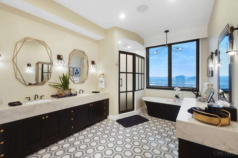 Stunning Mt. Adams home - no HOA - no common walls, custom built in 2019 - unmatched city and river views! Top-of-the-line finishes thruout, convenience of being minutes from downtown attractions, the Greater Cincinnati airport, and all the walkable charm Mt. Adams has to offer. Enjoy elevator access to every floor, a spacious rooftop deck perfect for entertaining. Certified LEED Platinum 100% abatement on improved value thru 2034 payable in tax year 2035. Relax across four decks, unwind in the hot tub, or step down to a covered artificial turf area designed for pets! Luxury, location and lifestyle!