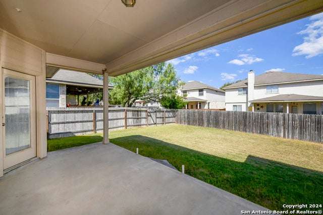 This is a beautiful and spacious single-story home in an extremely convenient location near Potranco Road and 1604. This location provides you with an easy ride to retail centers, restaurants and entertainment. Three bedrooms and two full bathrooms provide ample space for you and your guests to relax and enjoy. The two car garage provides storage opportunities as well as protection for your vehicles for the San Antonio weather. The property has a covered rear patio for outdoor enjoyment during the cool Texas evenings. See it; LOVE it; Live it!