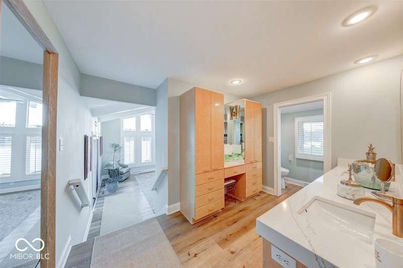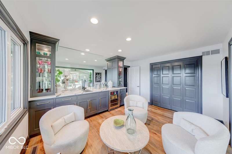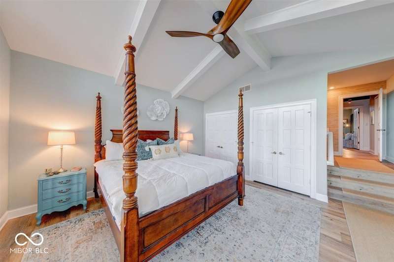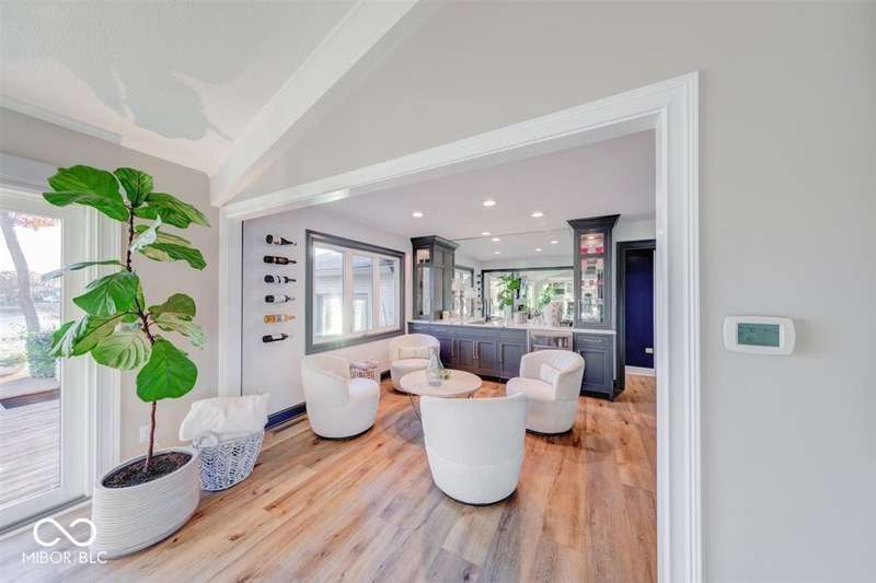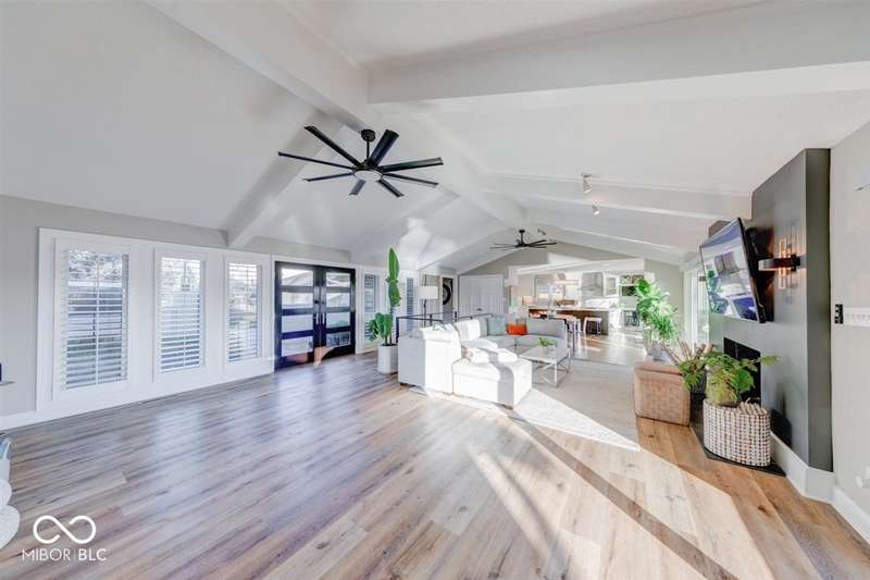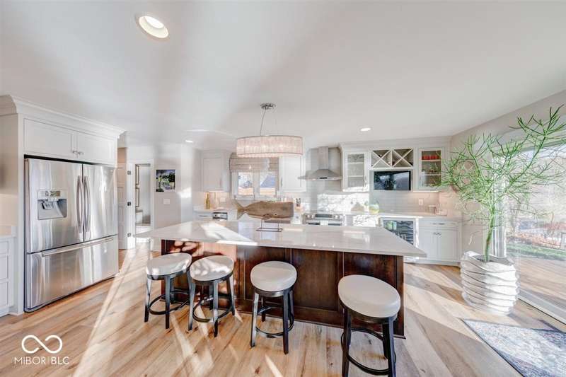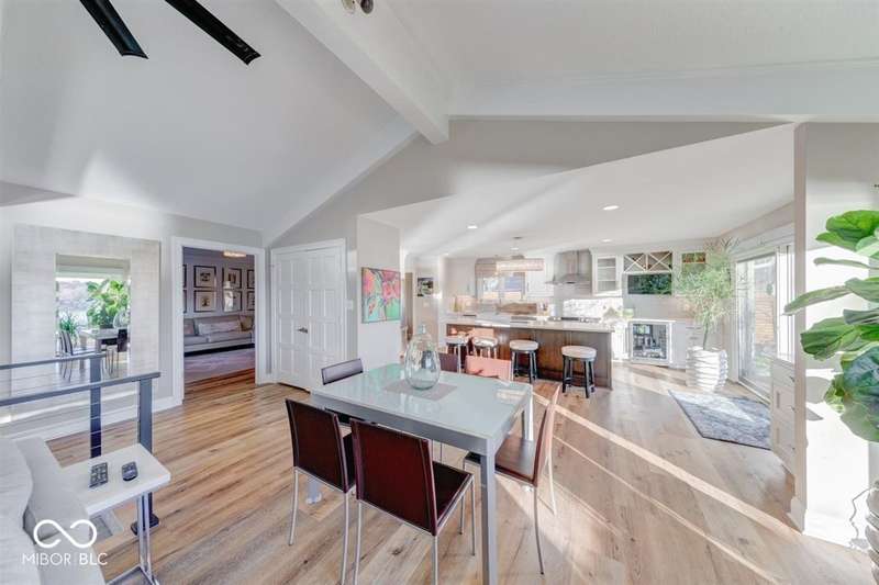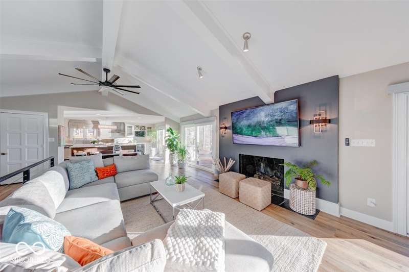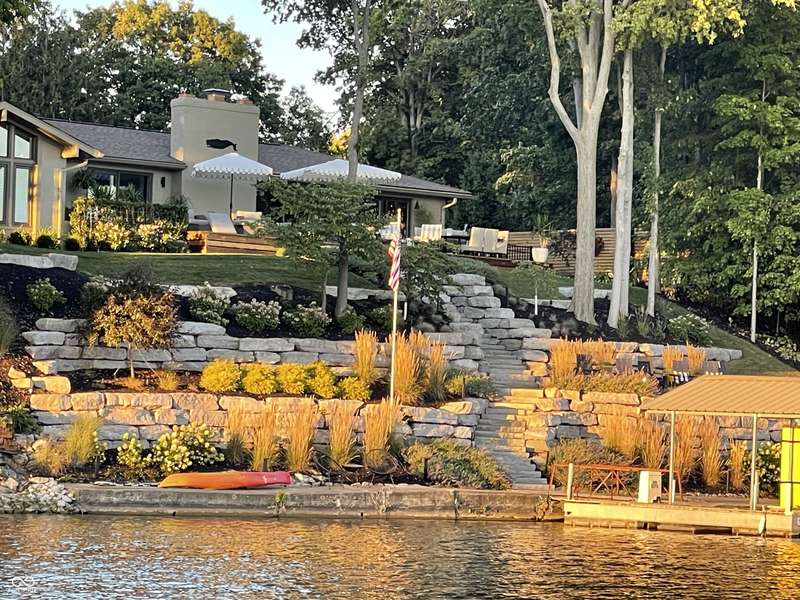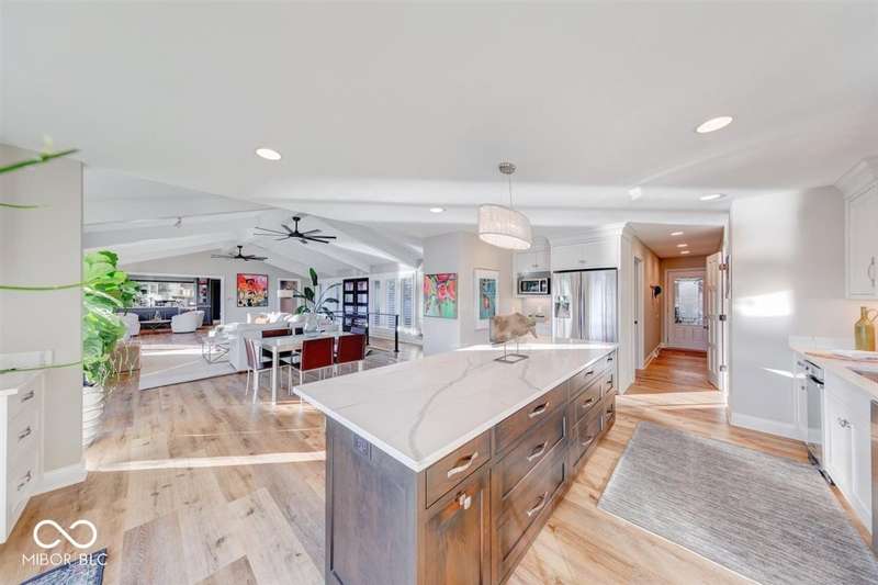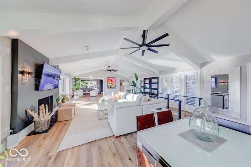 Experience the best of lakefront living in Noblesville, Indiana with this stunning $1.4M California-modern ranch home on Morse Reservoir. Perched atop the coveted North Harbour shoreline, the home commands panoramic sunset views over the quiet waters of Morse Reservoir's sailing basin. Enjoy the peace of living in the no-wake zone with quick access to fast water from your 115-frontage foot shoreline, restored metal-roof boat dock and a newly-placed steel pile shore wall for carefree, scenic enjoyment. Beautifully remodeled inside and out, this 3-4 bedroom, 2.5 bath residence celebrates its unique 1970 California ranch character while incorporating high-end updates. Standout features include: Expansive 1,000 sq ft cedar deck for spectacular entertaining and relaxation, Outdoor shower and Jacuzzi spa just off the primary bedroom suite, Fully reimagined kitchen with custom Amish cabinetry (2017), and luxury vinyl plank flooring throughout (2022), Generous concrete driveway, fenced dog run, upscaled landscape lighting, and refreshed windows and doors for comfort and curb appeal. Enter through a welcoming courtyard with gates and enjoy seamless indoor-outdoor living for gatherings or quiet nights overlooking the water. The 2021 landscape transformation designed by Vive Landscapes and constructed by RK Excavation adds the finishing touch, complemented by a large deck for soaking in the serene setting. This meticulously maintained home is perfect for those seeking peaceful full-time residency or a luxurious weekend retreat in Hamilton County's premier lake community. See supplemental information for even more upgrades and features. Don't miss out on the BEST property on Morse Reservoir!