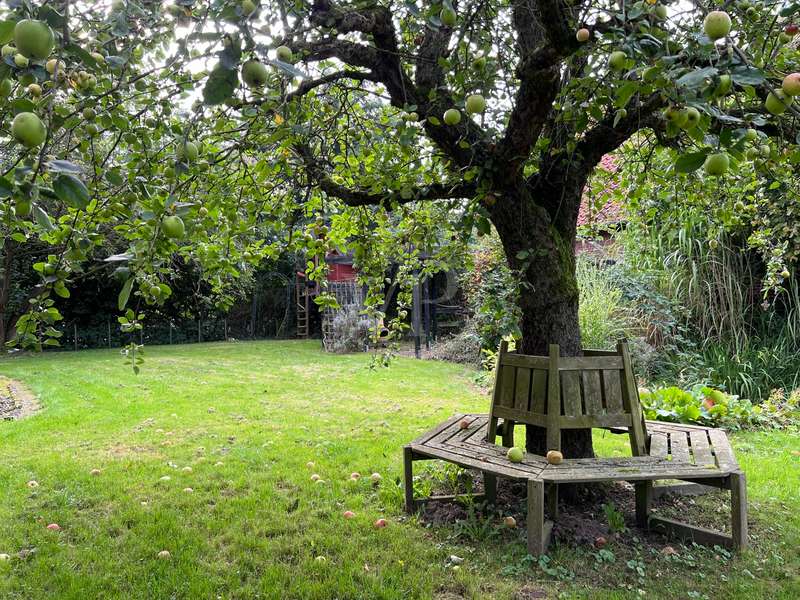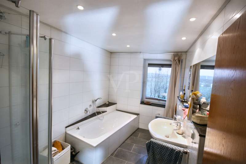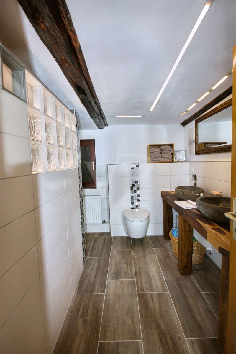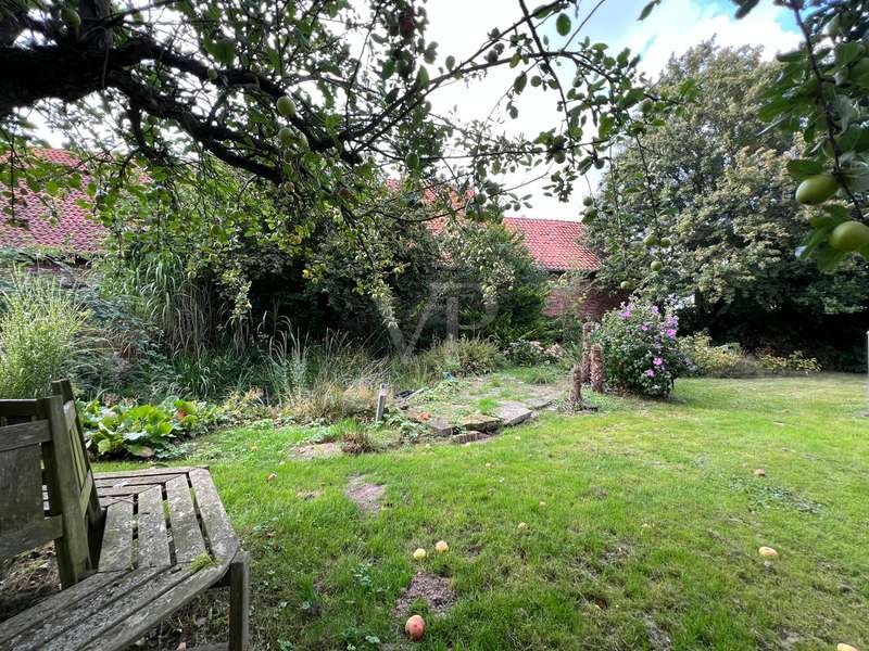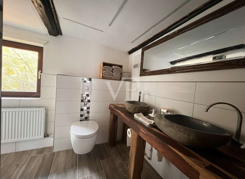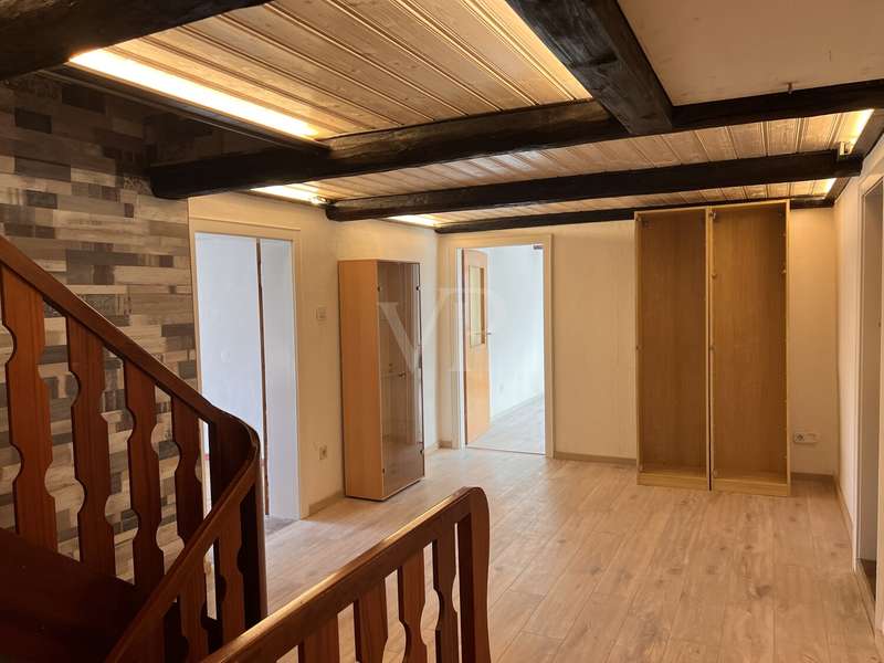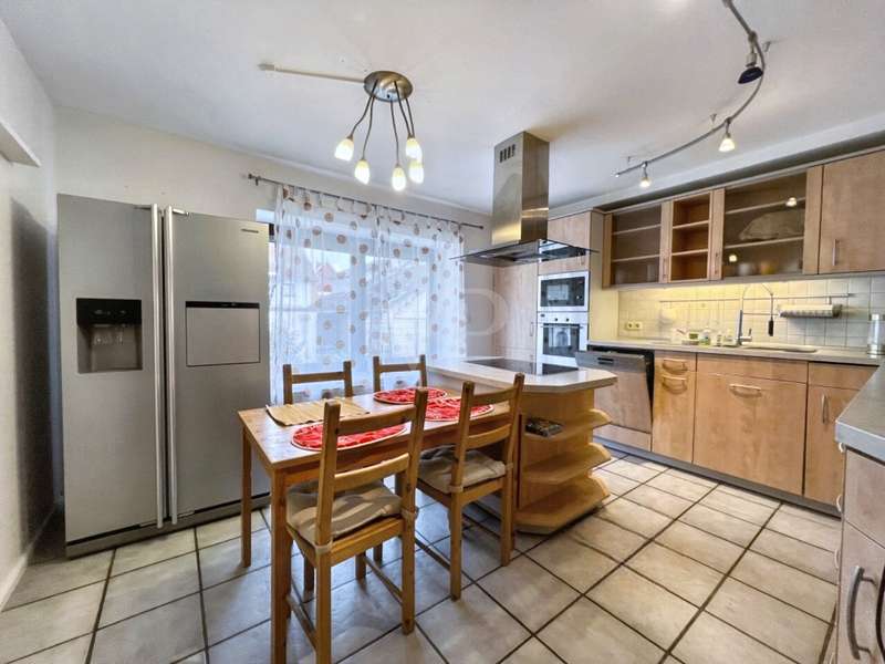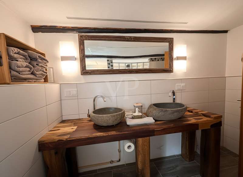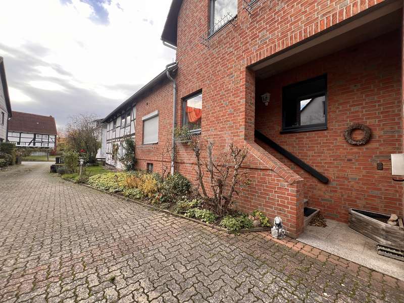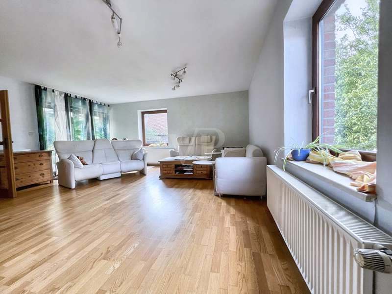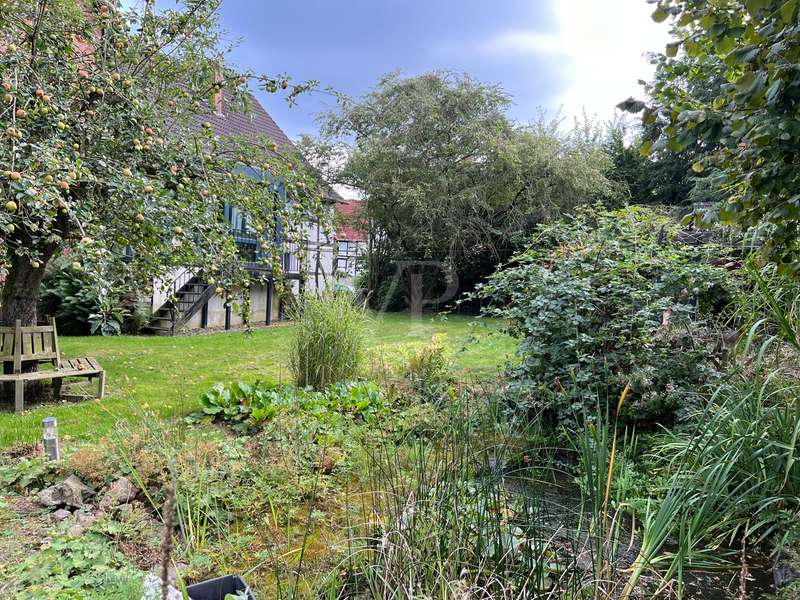 Welcome to an exceptional opportunity to acquire a modernized property in an attractive location on the edge of a field. This special house harmoniously combines two parts of the building and offers an exceptional living space of approx. 389 m² on a generous plot of approx. 1,976 m². Ideal for anyone who values a variety of spaces, individuality and tranquillity. Ideal for a multi-generational home or a large family with plenty of space. The property consists of a half-timbered house with approx. 176 m² of living space and an adjoining, brick-built solid house from 1986 with approx. 213 m². Both parts of the building have been continuously maintained over the years and extensively modernized in 2021, so that today you can expect contemporary furnishings and a spacious ambience. With a total of 11 well-designed rooms, including 5 spacious bedrooms, the house offers numerous design options for families, multi-generational living, the combination of living and working or the realization of individual life plans. Three modernized bathrooms ensure comfort and flexibility, especially in everyday family life. The heart of the house is the spacious, open-plan living area, which invites you to linger and offers a view of the large garden thanks to the large windows. There is a spacious hobby room in the rear garden area, which was designed as a garden shed and can be used in a variety of ways - for example as a studio, workshop or retreat for hobbies. The furnishings of the house correspond to classic living quality. The bathrooms were brought up to a contemporary standard in the course of modernization, and central heating and a stove provide cosy warmth on cooler days. This is complemented by a solar thermal system for environmentally friendly water heating and an efficient oil-fired central heating system. The typical pitched roof underlines the traditional character of the building. The property includes a double garage, which offers space for two vehicles as well as additional storage space. Outside, the property has its own garden irrigation well, which makes it easy to maintain the spacious garden. Among other things, the garden has a garden pond - a highlight for nature lovers. The location on the quiet edge of the field guarantees you relaxation and privacy without having to forego the convenience of good infrastructural connections. Shopping facilities, schools and public transport are all within easy reach. We expressly point out that the owner does not want any personal inquiries and therefore we ask you to accept the privacy. Please also understand that we would like to receive the property-related financing confirmation from your bank before a possible viewing.