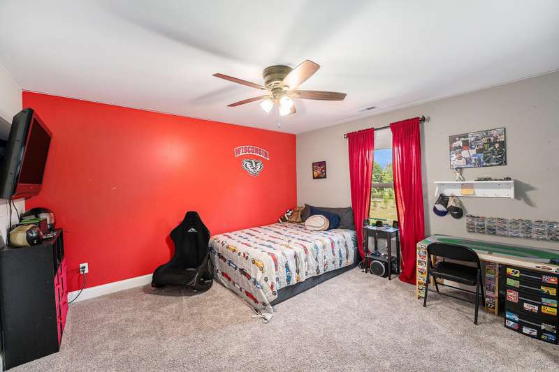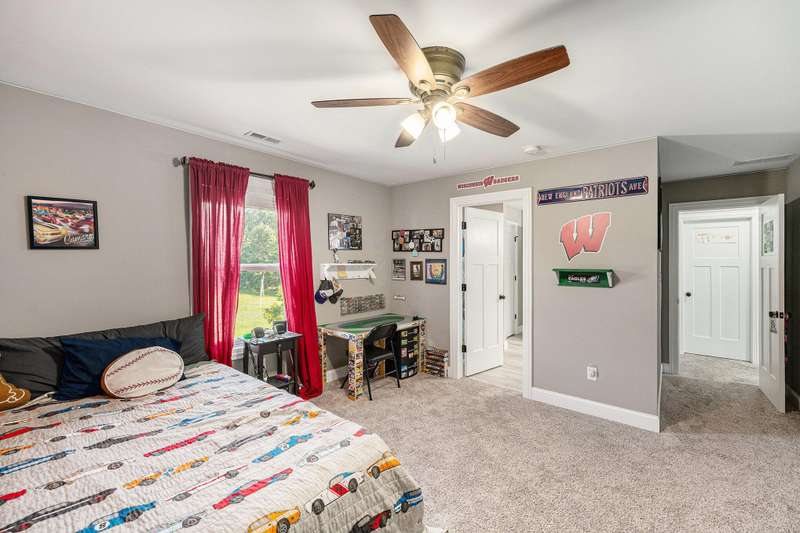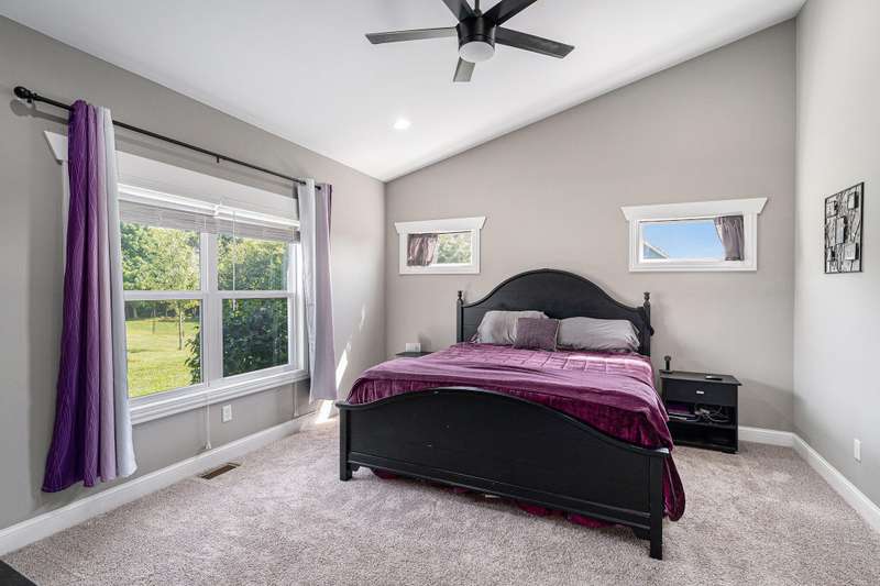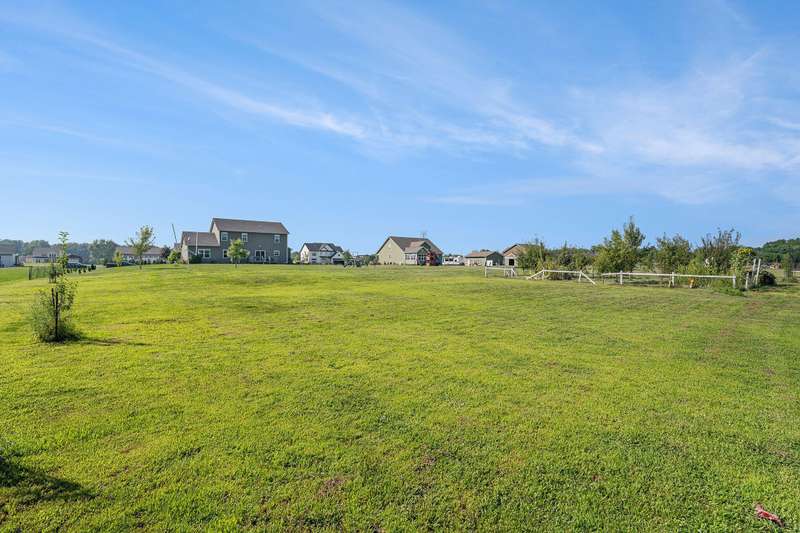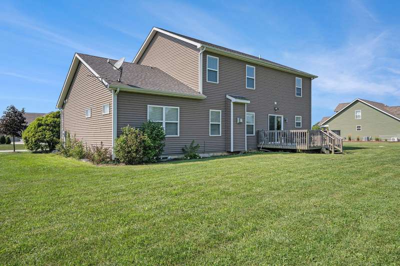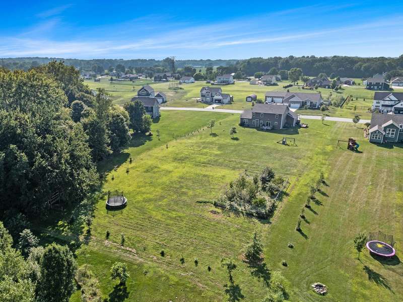 Welcome to Your Country Sanctuary!!! Built in 2017, this impressive two-story residence is located in the highly desirable High Meadows West neighborhood, within the Duneland School District. Sitting on a spacious 1.4-ACRE lot with mature trees, this home is a perfect blend of modern living and peaceful country charm. With so many highlights, this is a home you must see to appreciate and is not only visually stunning, it was constructed with quality materials, emphasizing the importance of a solid build. Plus, the layout is EXCEPTIONAL. Highlights on main include: 9' Ceilings Hardwood Floors Main Floor Ensuite Flex Room ideal for home office, playroom or study Great Room with Fireplace Incredible Kitchen with all the Bells and Whistles Laundry Room with Built in Lockers Half Bath Decorative Headers over Doors and Windows. UPSTAIRS, the Bedrooms are SPACIOUS and ALL have WALK-IN CLOSETS Two FULL Baths. THE DAYLIGHT BASEMENT offers a Versatile Workout Space Bedroom Bright Rec Room with Laminate Flooring Also, plumbed for an additional bath Loads of Storage. ADDITIONAL DETAILS: The primary suite on main, boasts vaulted ceilings, two walk-in closets, and a spa-like bathroom with a soaking tub, ceramic shower, dual sinks, and a private water closet. Adjacent to the primary suite, the heart of the home includes an open kitchen with soft-close cabinets, a center island with granite countertops, pantry and all appliances included. Sliding doors lead to the deck, overlooking a stunning backyard with an orchard of apple, peach, pear, plum, and cherry trees perfect for outdoor gatherings. The upstairs baths each have double sinks and granite countertops, including a convenient Jack and Jill setup! Additionally, Bedroom #5 includes a cozy reading loft, perfect for some quiet time away from the hustle and bustle. A three car garage completes this remarkable property, all situated on a serene street in Jackson Township. This home truly has it all!