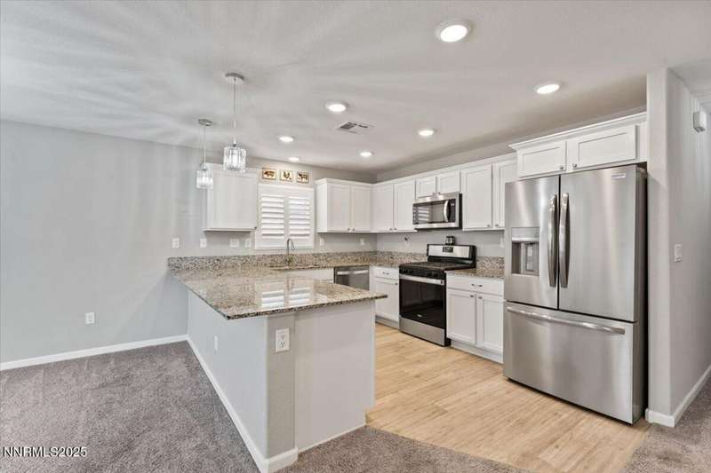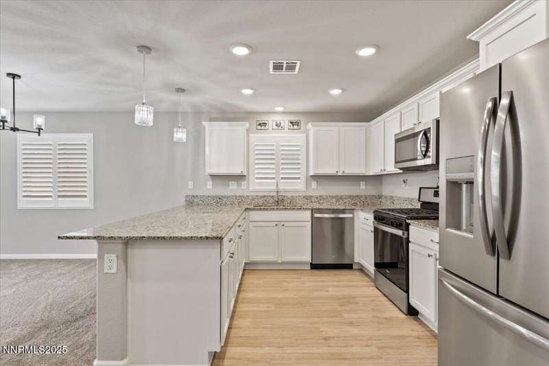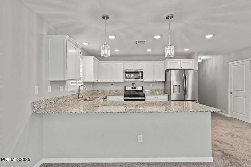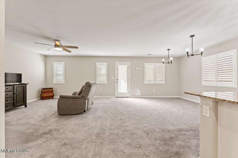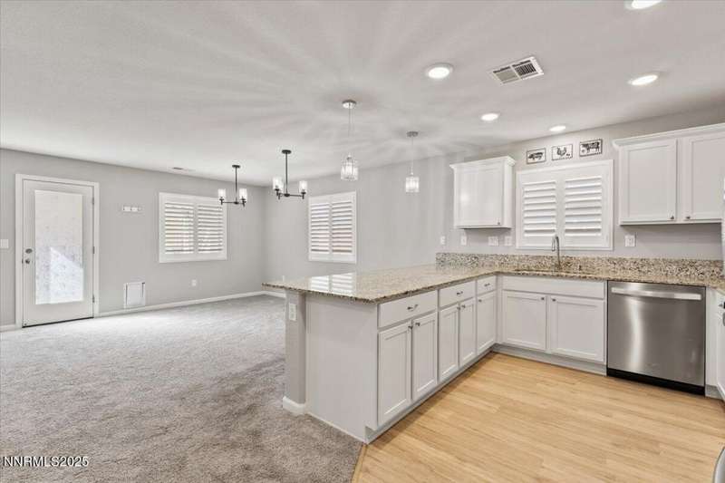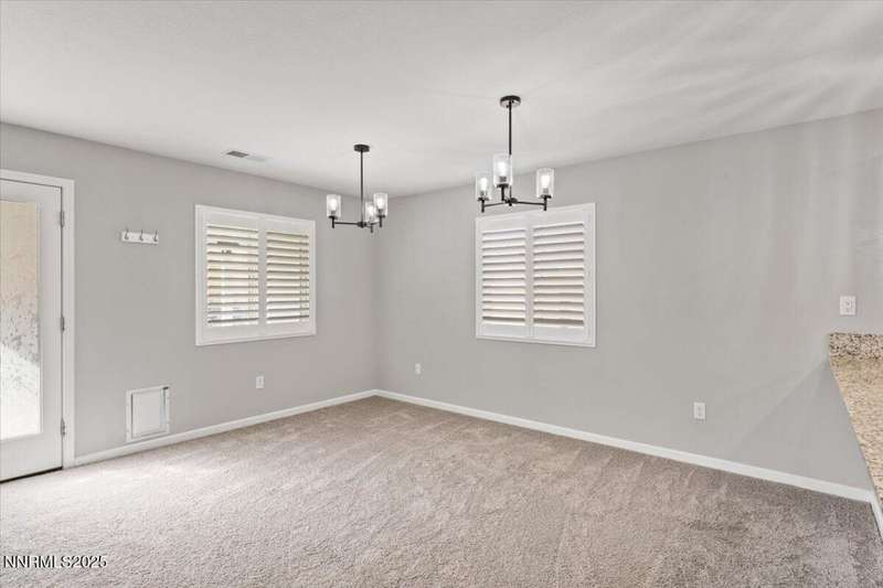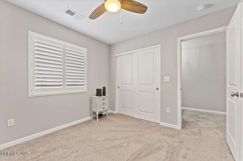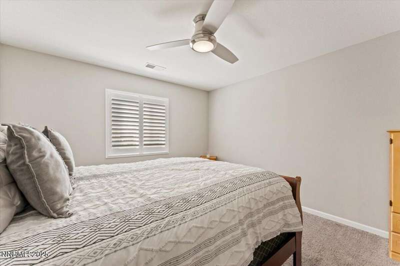 Tucked along a peaceful road near Swan Lake, this lovable Lemmon Valley home is ready to welcome you! Built in 2022, the open-concept floor plan boasts plush carpet and neutral finishes throughout, offering an atmosphere of simple modernity. A sensibly designed kitchen features stainless steel appliances, sleek white cabinetry, vinyl plank flooring, a breakfast bar, and plenty of countertop space. In the primary suite, you'll enjoy a peaceful retreat that includes a walk-in closet and private bathroom with dual sinks and a sliding glass shower. Two additional bedrooms provide ideal space for any lifestyle or purpose. Both the fully-fenced backyard and inviting front yard showcase thoughtful rock landscaping, so enjoy never mowing again. Other noteworthy highlights include a designated laundry room with cabinetry, plantation shutters and ceiling fans throughout the home, a two-car garage, and more. If you're looking for contemporary comfort in a convenient location, look no further! Assumable VA loan!!!