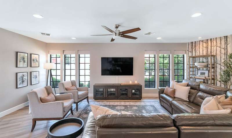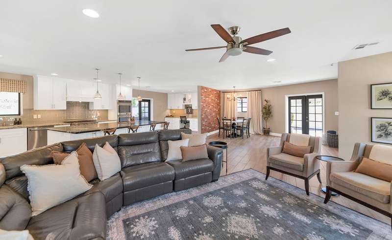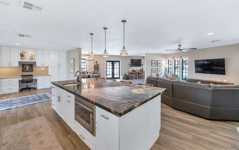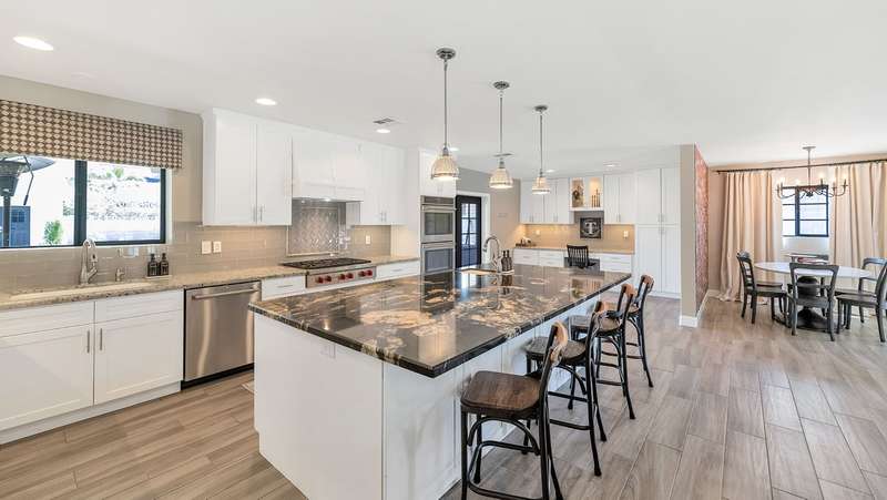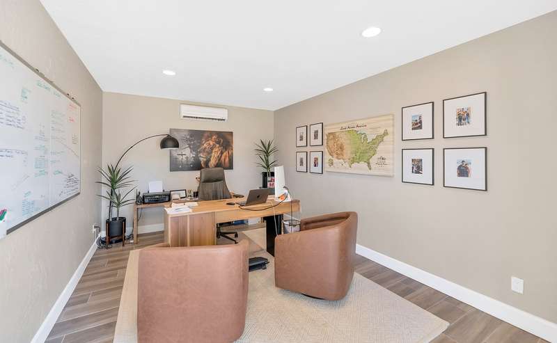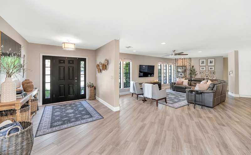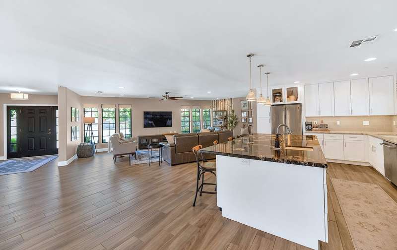 Charming family home just across from the Arizona Country Club located on Orange Blossom Lane. This home has an open floor plan and features 3 bedrooms, 2 bathrooms, built-in shelves with desk and 2 separate offices. Tile hardwood flooring and large windows in the great room allow lots of natural lighting throughout. The gorgeous gourmet kitchen with large island and granite countertops is equipped with stainless steel appliances, including a Wolf gas cooktop. The spacious primary bedroom has a great walk-in closet and a nice bathroom with a large shower. There are also two large bedrooms that share the second bathroom. Adding to its appeal are two additional rooms that currently serve as separate his and hers office spaces.