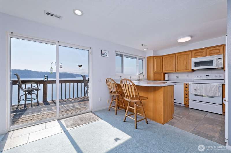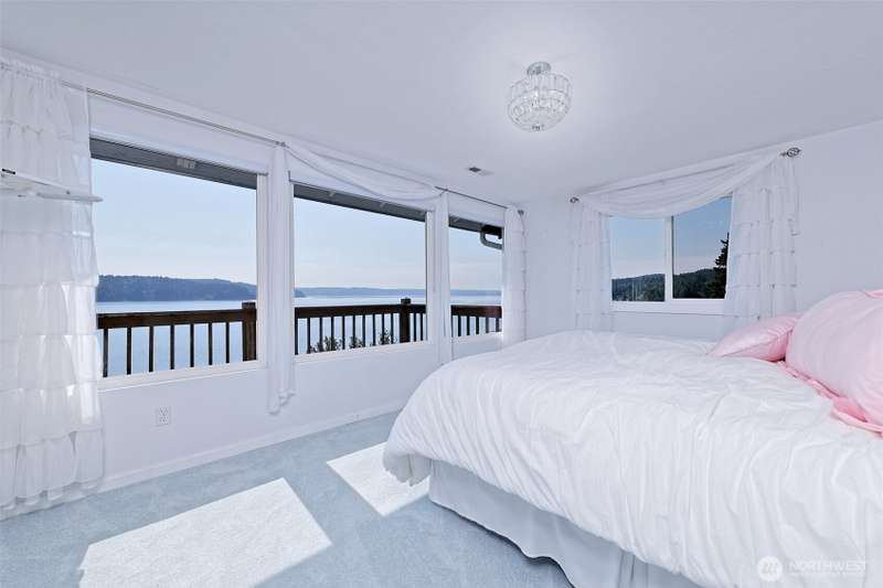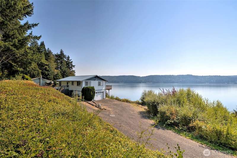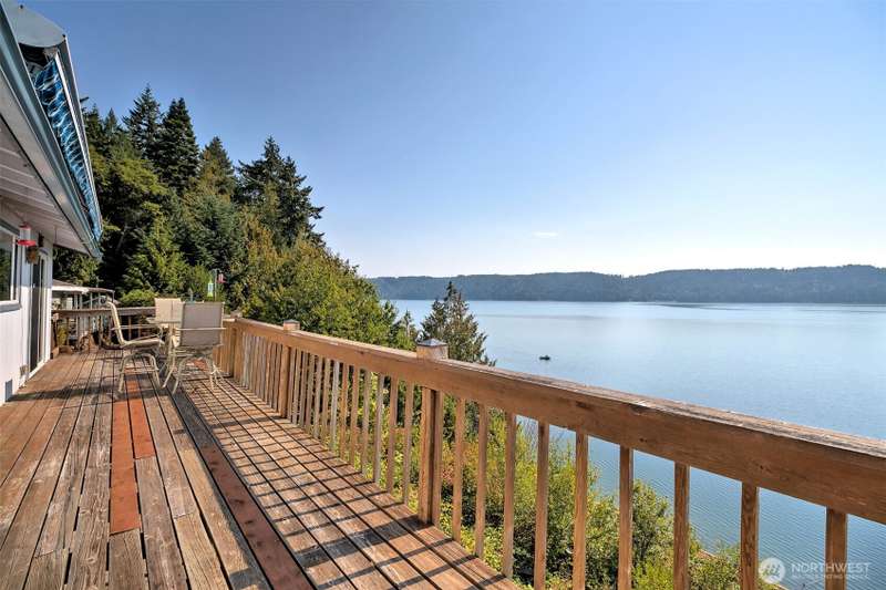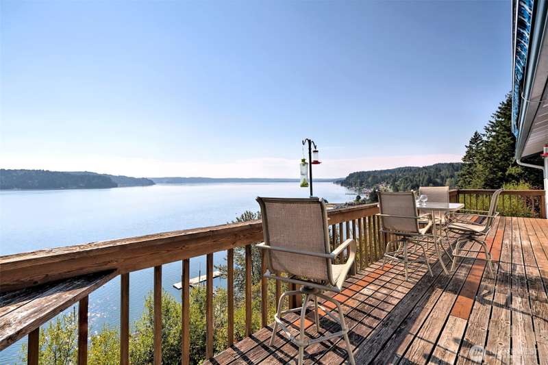 This view is really something! From inside the house it feels like you are hanging over beautiful Hood Canal. Bright and sunny, this home will delight you in so many ways. Lots of upgrades have been done - Corian counters in the kitchen and bathroom, new carpets, tile, paint, newer appliances, beautiful step-in shower, the list goes on and on. The primary bedroom has nice closet organizers, and a fantastic view, too. You can easily imagine yourself relaxing on the big deck enjoying the wildlife and scenes from this world-renown fjord! Located truly at the foot of the Olympic Mountains, every sort of recreational opportunities abound here-hiking, biking, fishing, camping, golf, swimming, kayaking, scuba diving, etc. Come see!