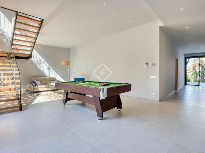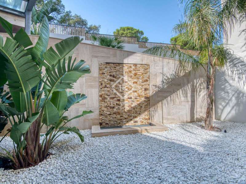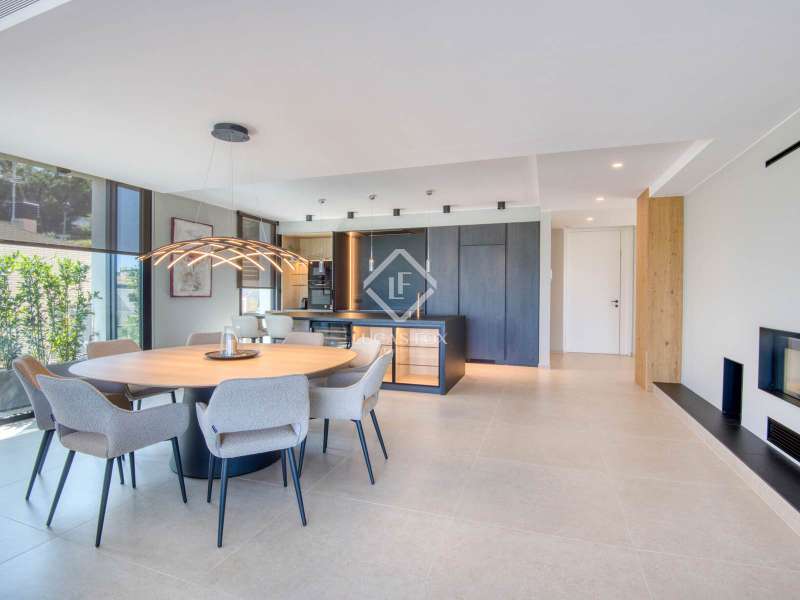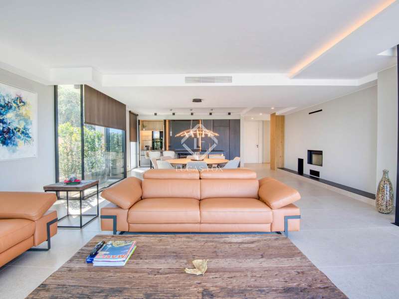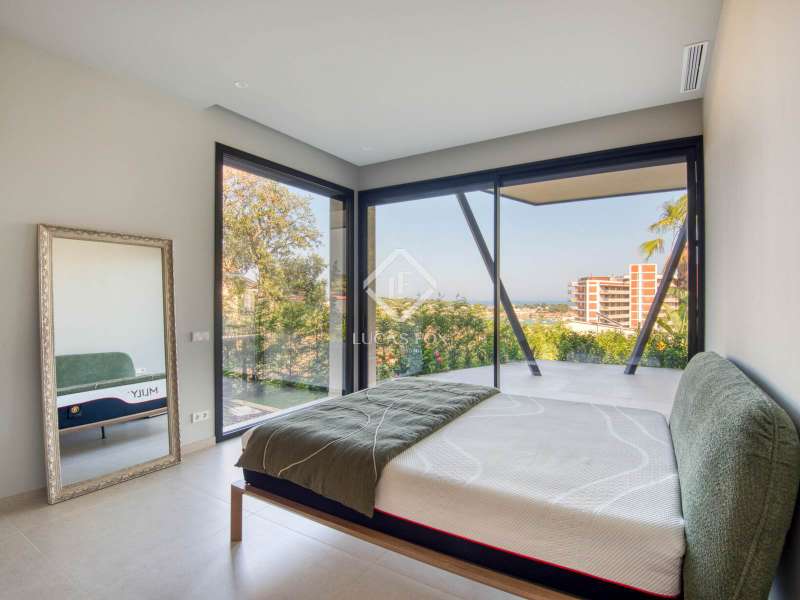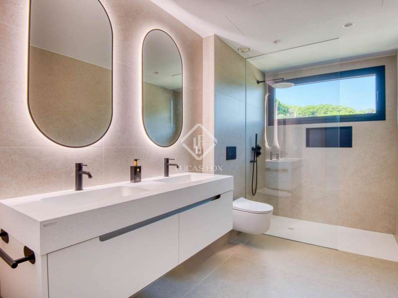 Villa Emma is a new build house with a modern style in the middle of the construction phase in S'Agaró. The property has an area of 500 m² built on a 690 m² plot . The property has high ceilings and is distributed over two floors. We enter through the main entrance, next to a large garage for two cars. On this floor we find the day area with a entrance hall and a guest toilet, followed by a spacious living-dining room with fireplace and a fully equipped open-plan kitchen. The kitchen has a central island and leads to the 80 m² living-dining room with large windows that access to the pool and terrace. The floor is completed with a double bedroom with its private bathroom bathroom with Italian shower of about 32 m². We go down the stairs to the ground floor to access the night area where we find a 39 m² multipurpose room that could be used as an additional living room . Next, there is a first double bedroom of about 28 m² with its private bathroom with bathtub and a second double bedroom of about 20 m² with its private bathroom with Italian shower. This floor also has two double bedrooms of 15 m² that share a double bathroom with a shower. Finally, there is a laundry room room of about 13 m² and a gym room of about 16 m² that leads to the terrace and the garden. Exterior, there is a salt chlorination pool with an area of about 26 m², as well as an exterior terrace with its summer kitchen, perfect for barbecues with sea views. The entire house has underfloor heating and a reversible duct air conditioning system. There is the possibility of installing a lift. The house will be equipped with solar panels, porcelain interior floors and teak wood terrace floors. The villa has a modern cream-white style with some parts clad in heat-treated wooden slats such as the main entrance and the garage. The completion of the work is scheduled for summer 2025. Do not hesitate to contact us to arrange a visit or request more information.